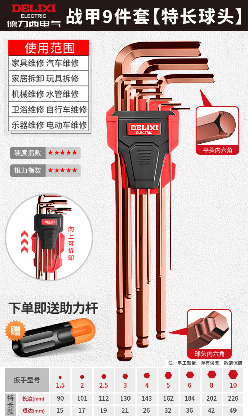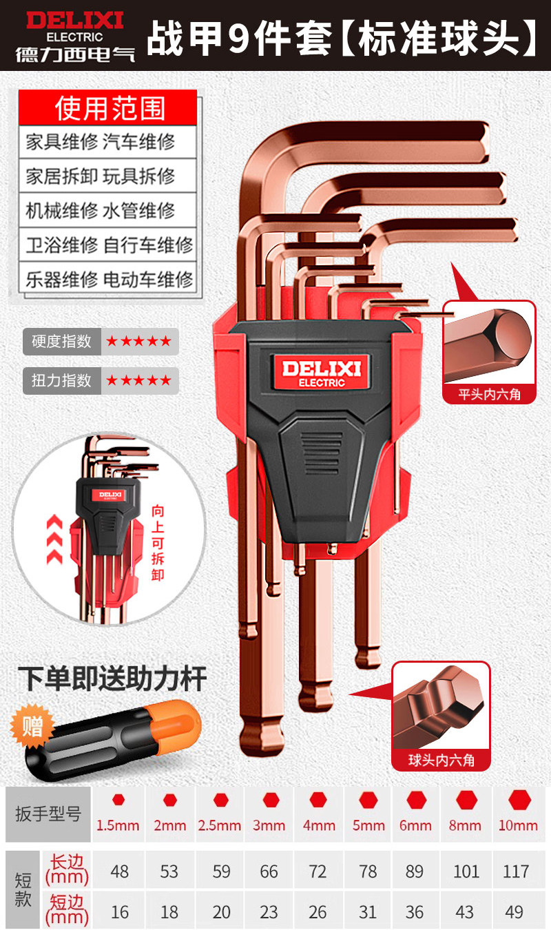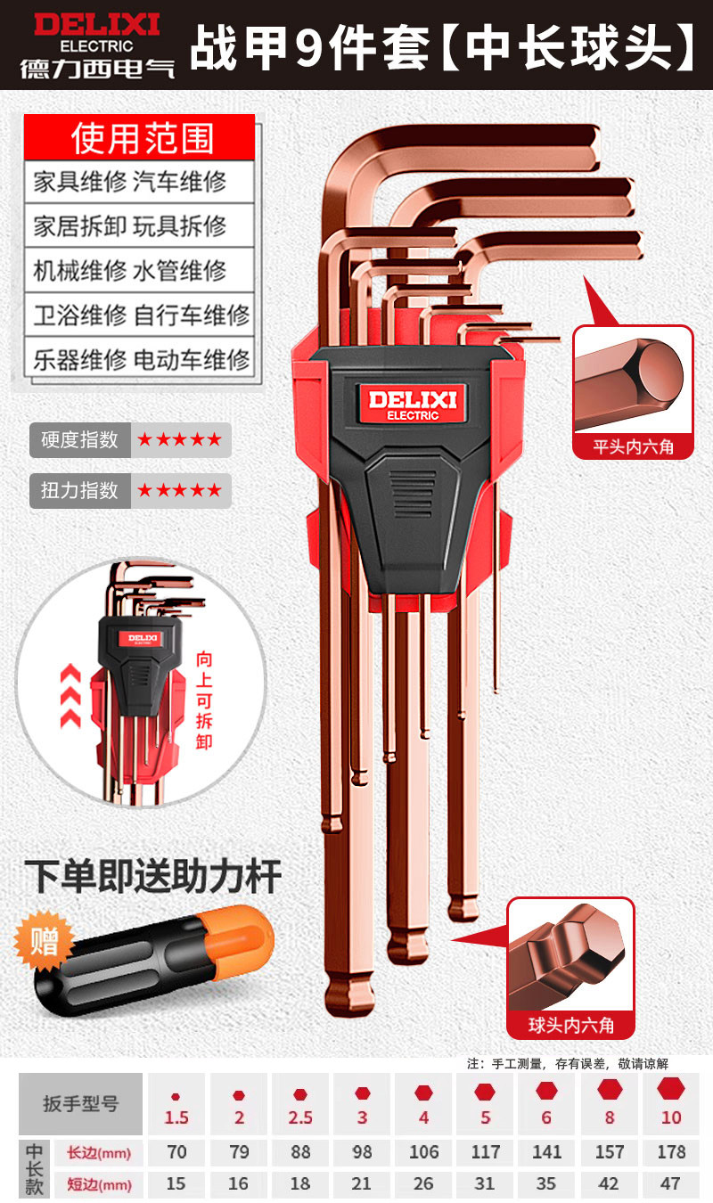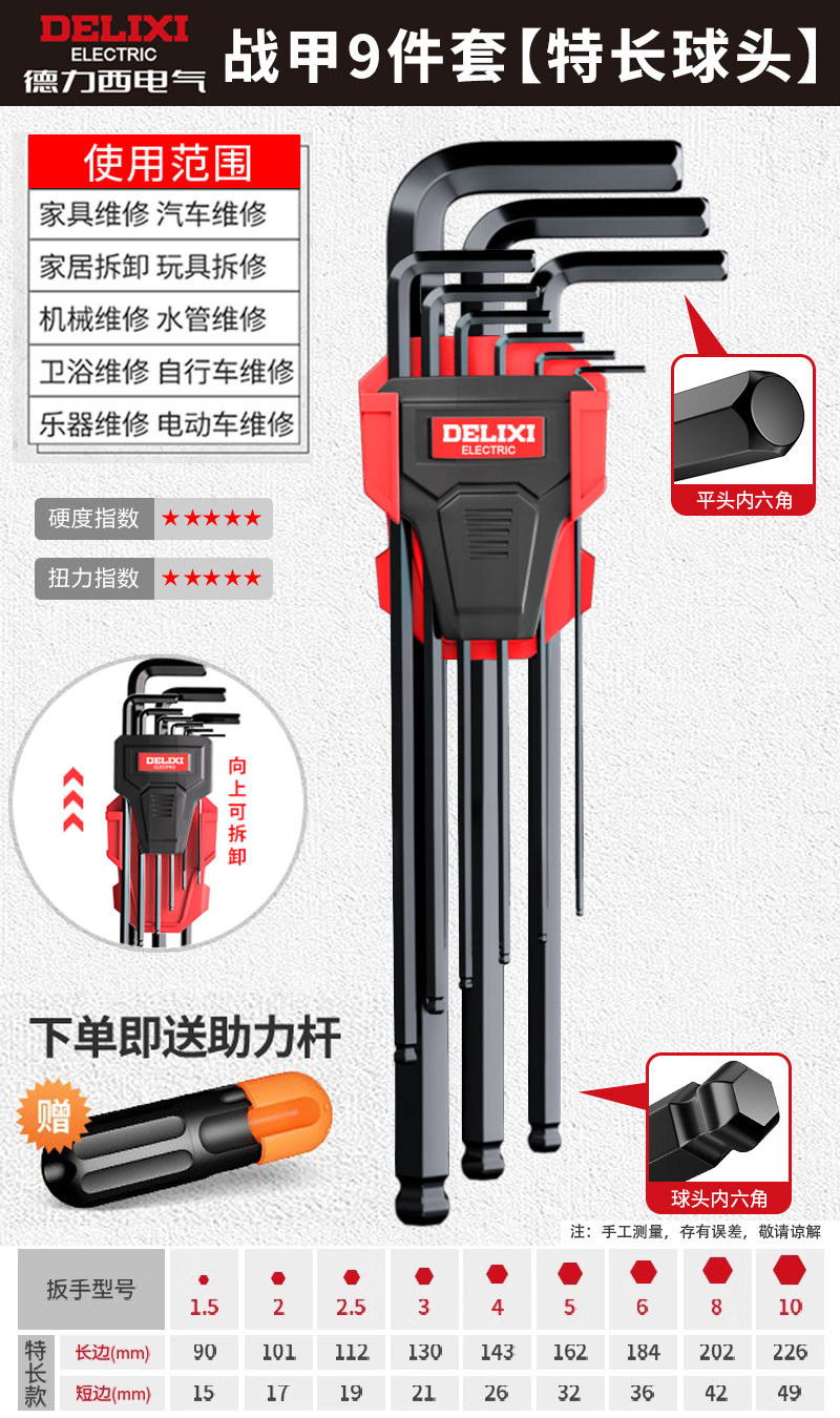 HomeProducts德力西电气内六角扳手套装自动组合单个六角匙内六方棱螺丝刀工具