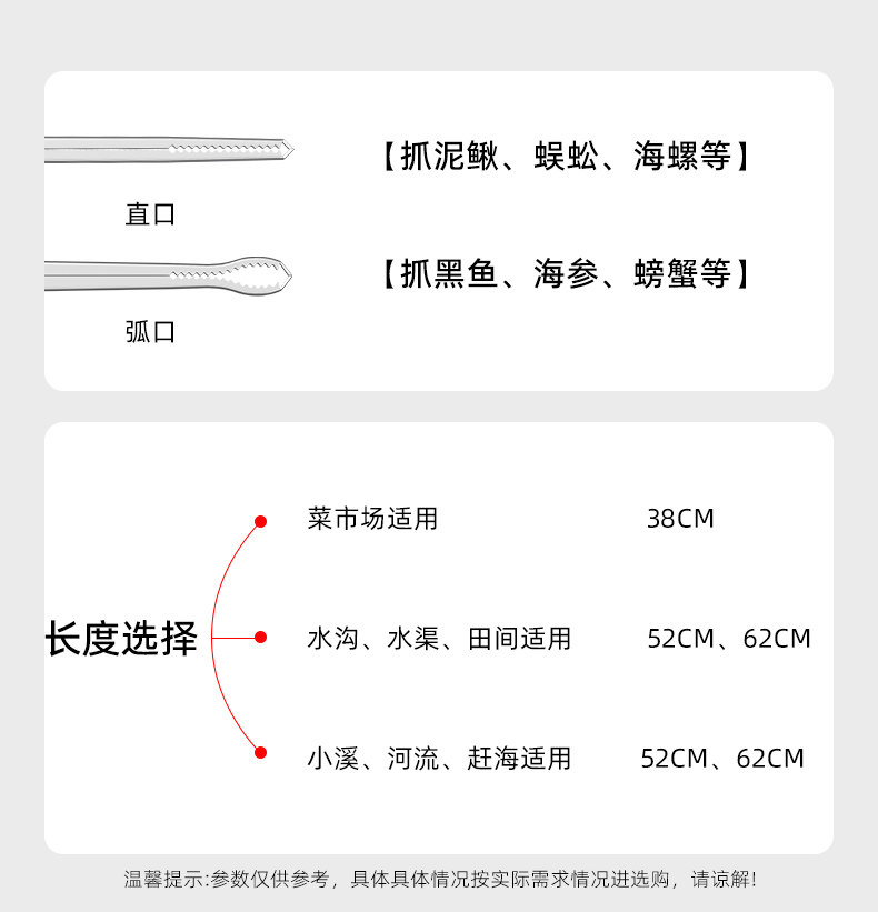 不锈钢赶海夹子专业黄鳝夹龙虾螃蟹夹防滑泥鳅夹加长火钳捡垃圾夹