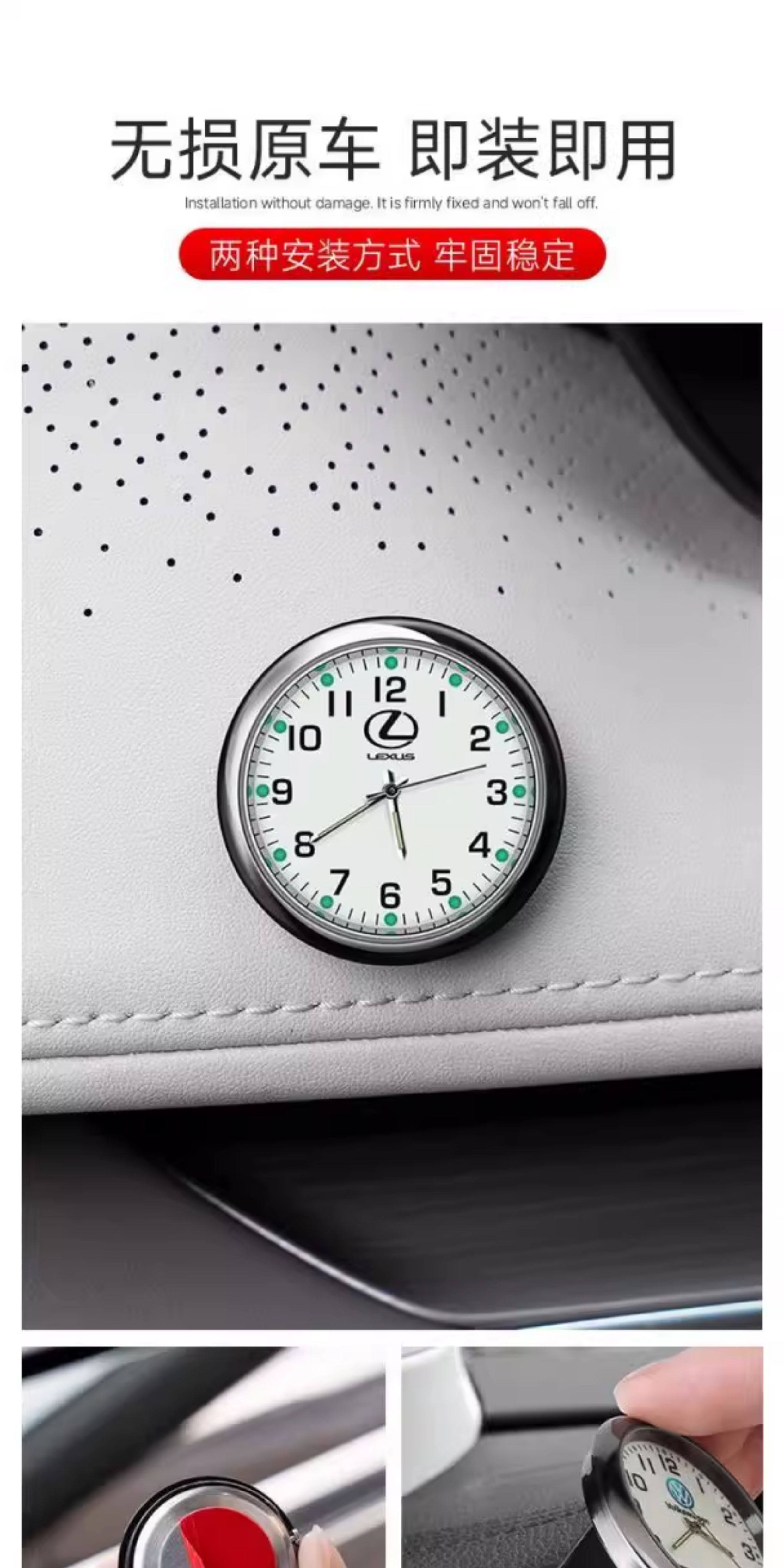 车载钟表夜光汽车石英表摆件时钟车用电子小钟表装饰车内时间显示