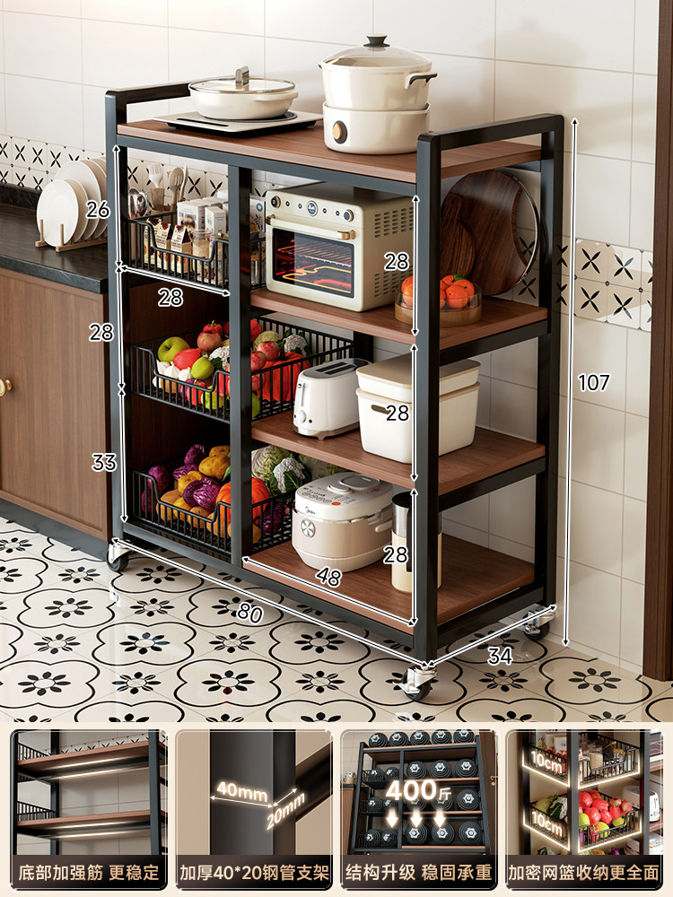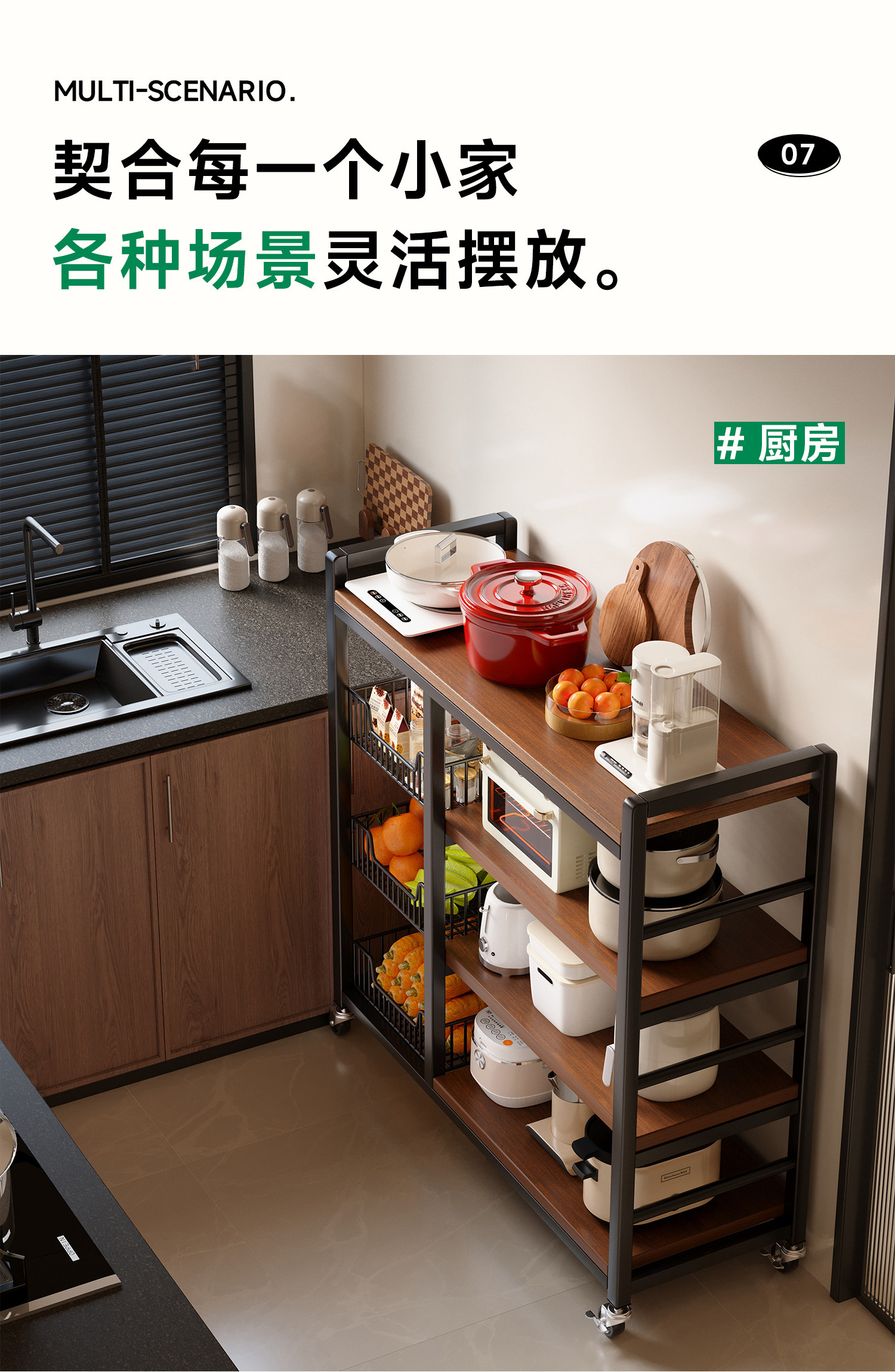 新款厨房多功能置物架落地多层果蔬菜架微波炉收纳架家用简易货架