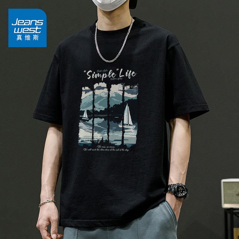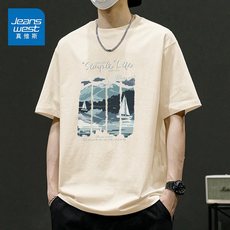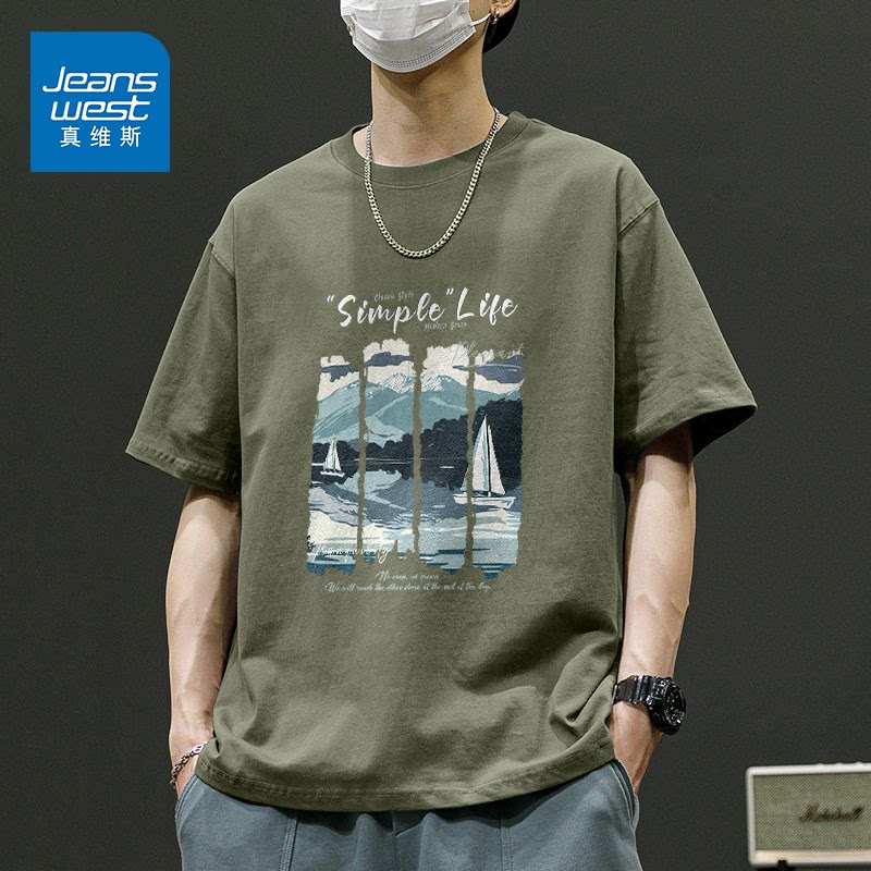 真维斯男士短袖t恤2026新款夏季纯棉半袖男上衣宽松透气潮牌体恤X