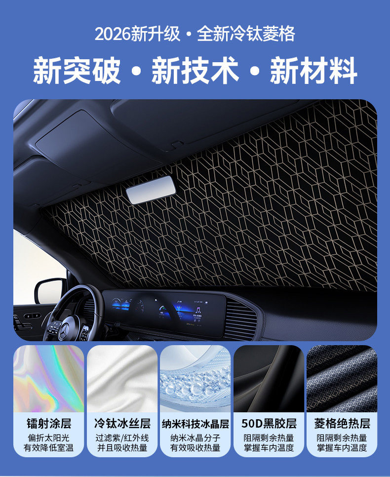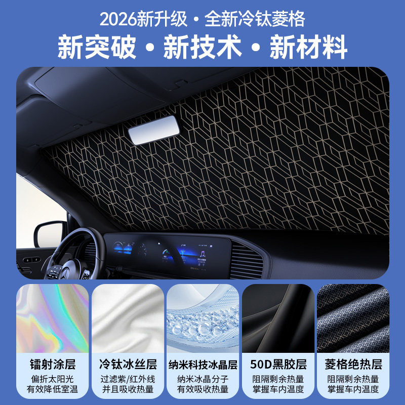 2026新款汽车遮阳前挡风玻璃板防晒隔热伞顶罩车窗内用遮光帘神器