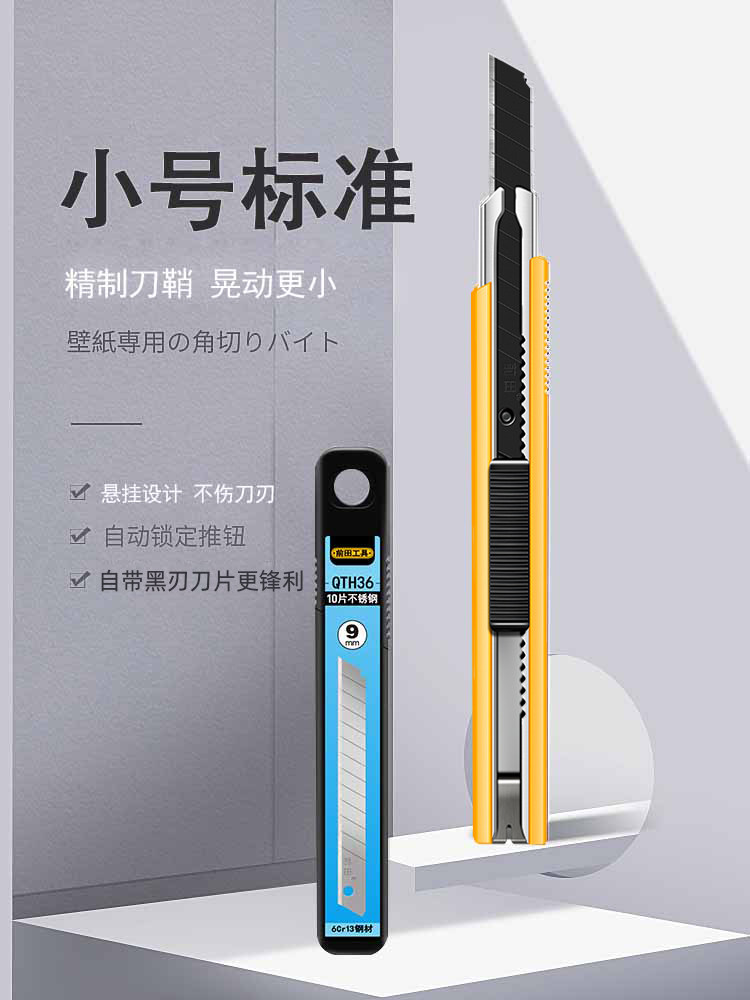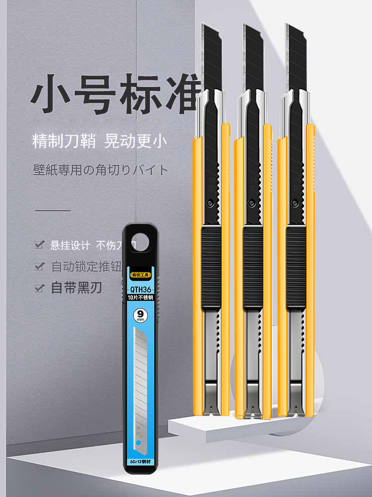 前田美工刀黑刃小号多功能壁纸墙纸专用工业级刀架不锈钢贴膜介刀