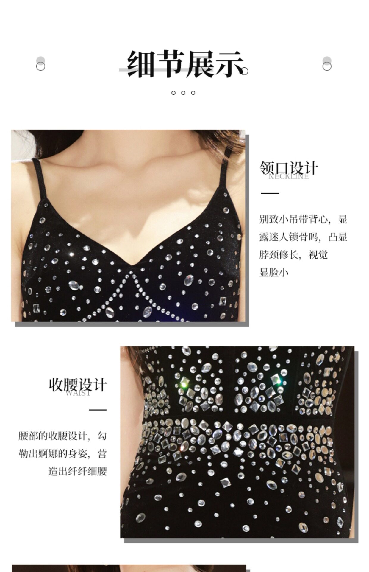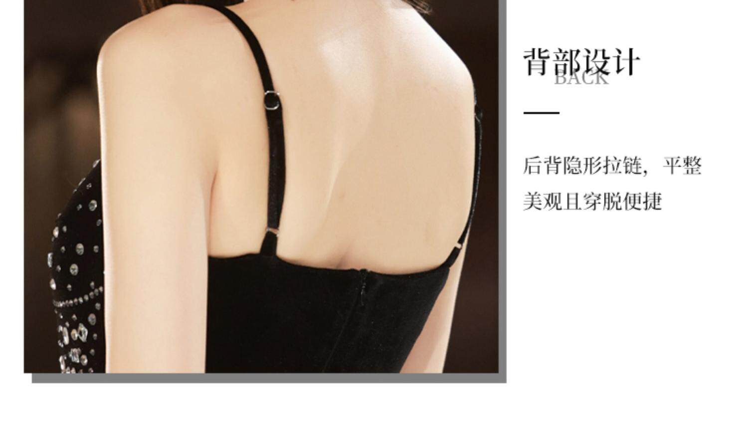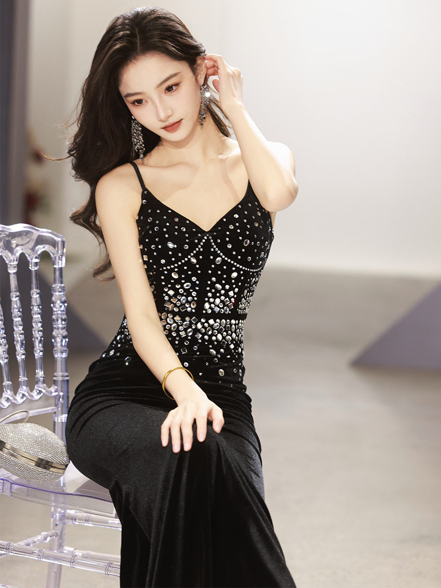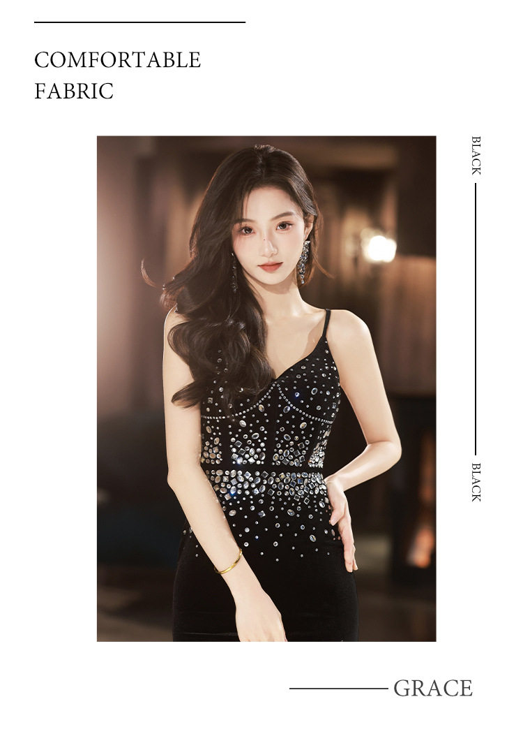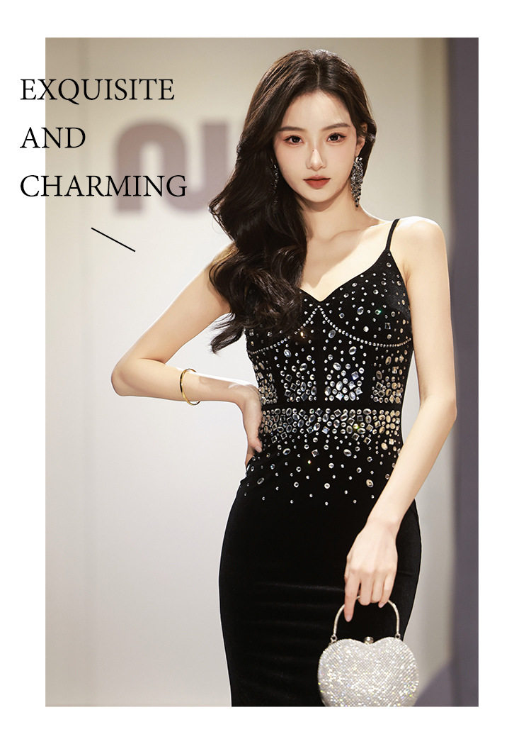 黑色丝绒生日晚礼服轻奢小众时尚 毕业宴会主持人遮肚鱼尾连衣裙