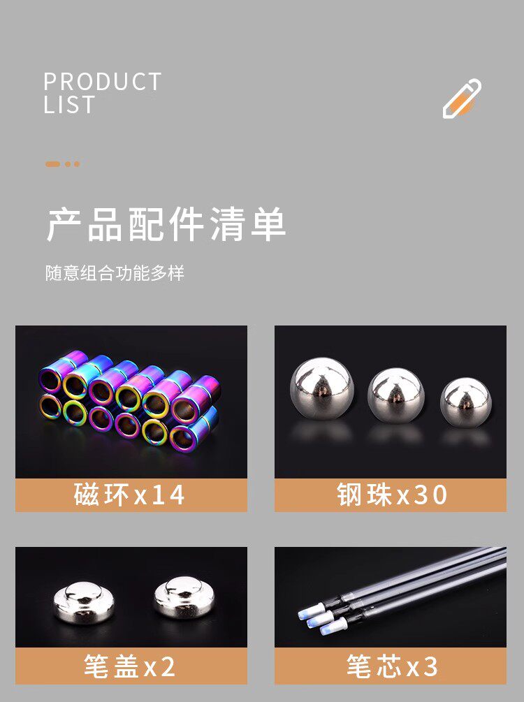 (礼盒装彩色笔)13磁环+12钢珠+3笔芯+2电容头