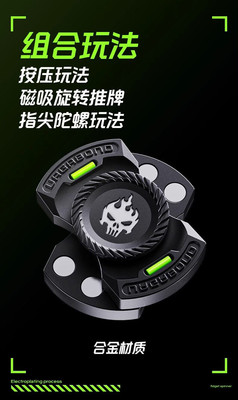 幽灵指尖陀螺三合一玩法磁力推牌edc啪啪币金属潮玩减压解压玩具