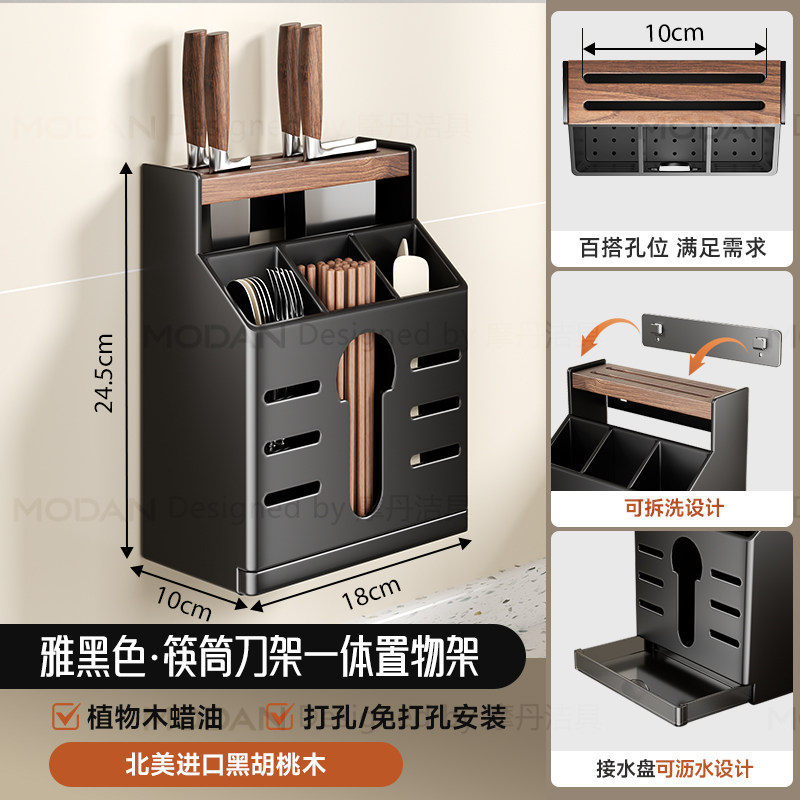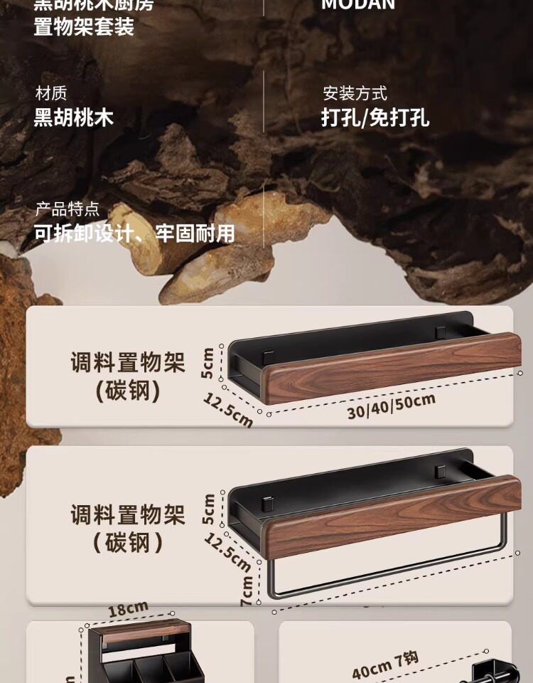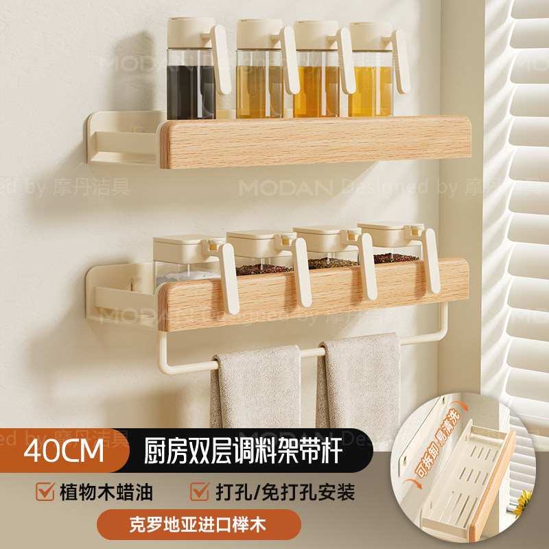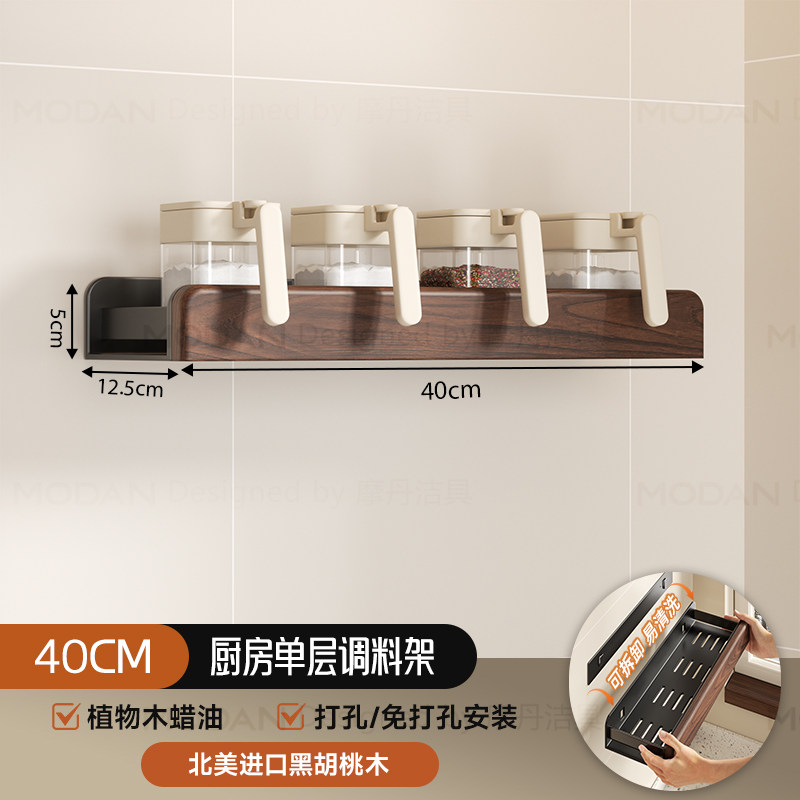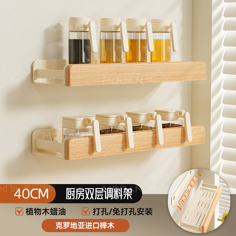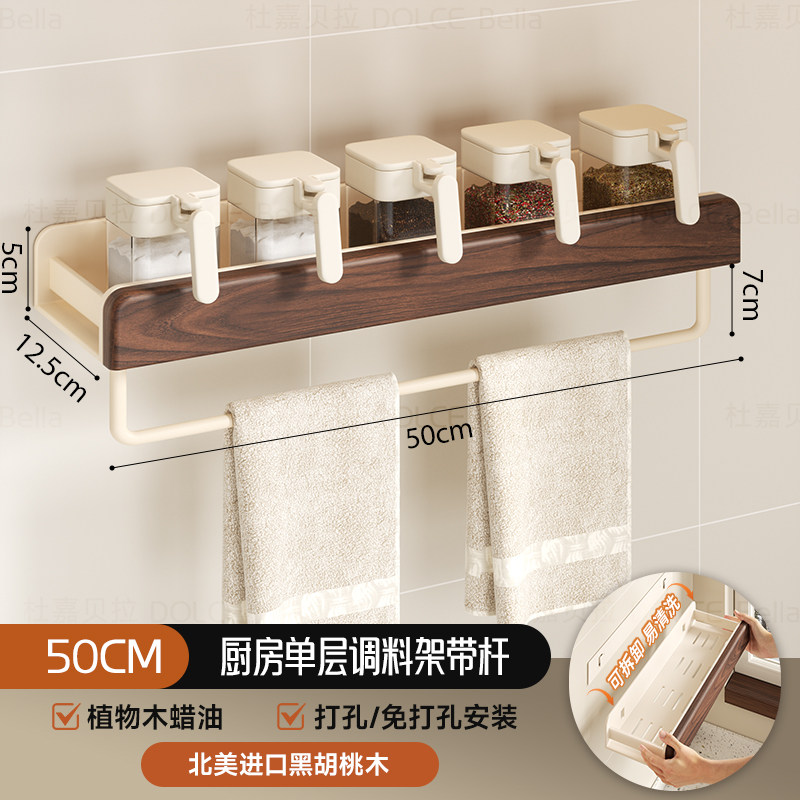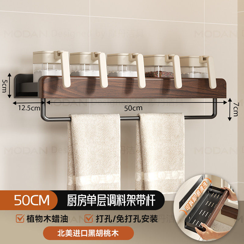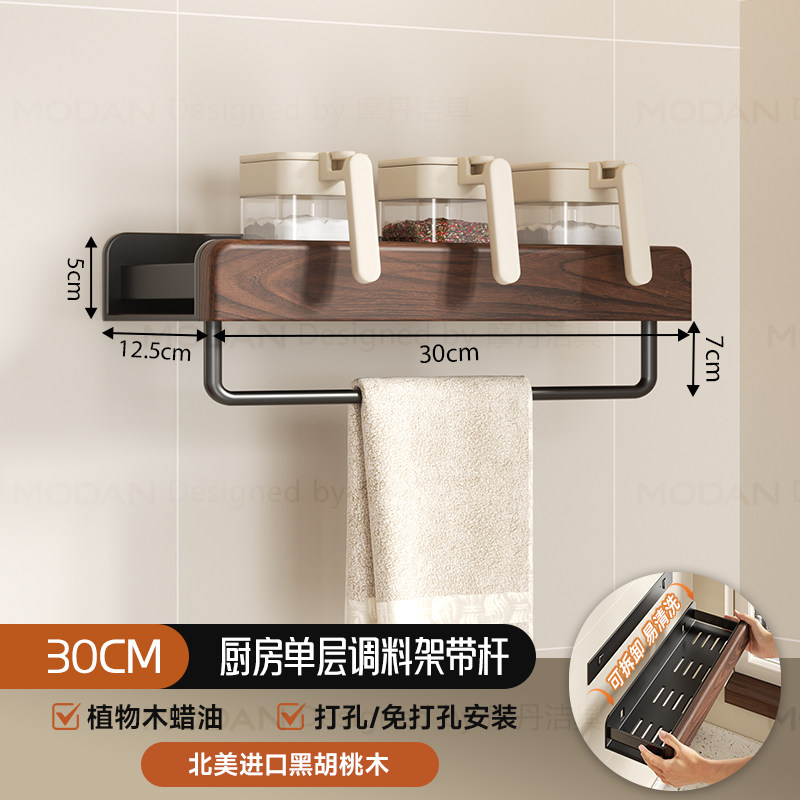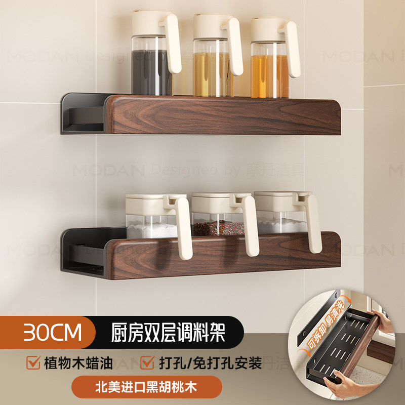 胡桃木厨房调料置物架中古风免打孔家用壁挂油盐酱醋瓶罐墙上收纳