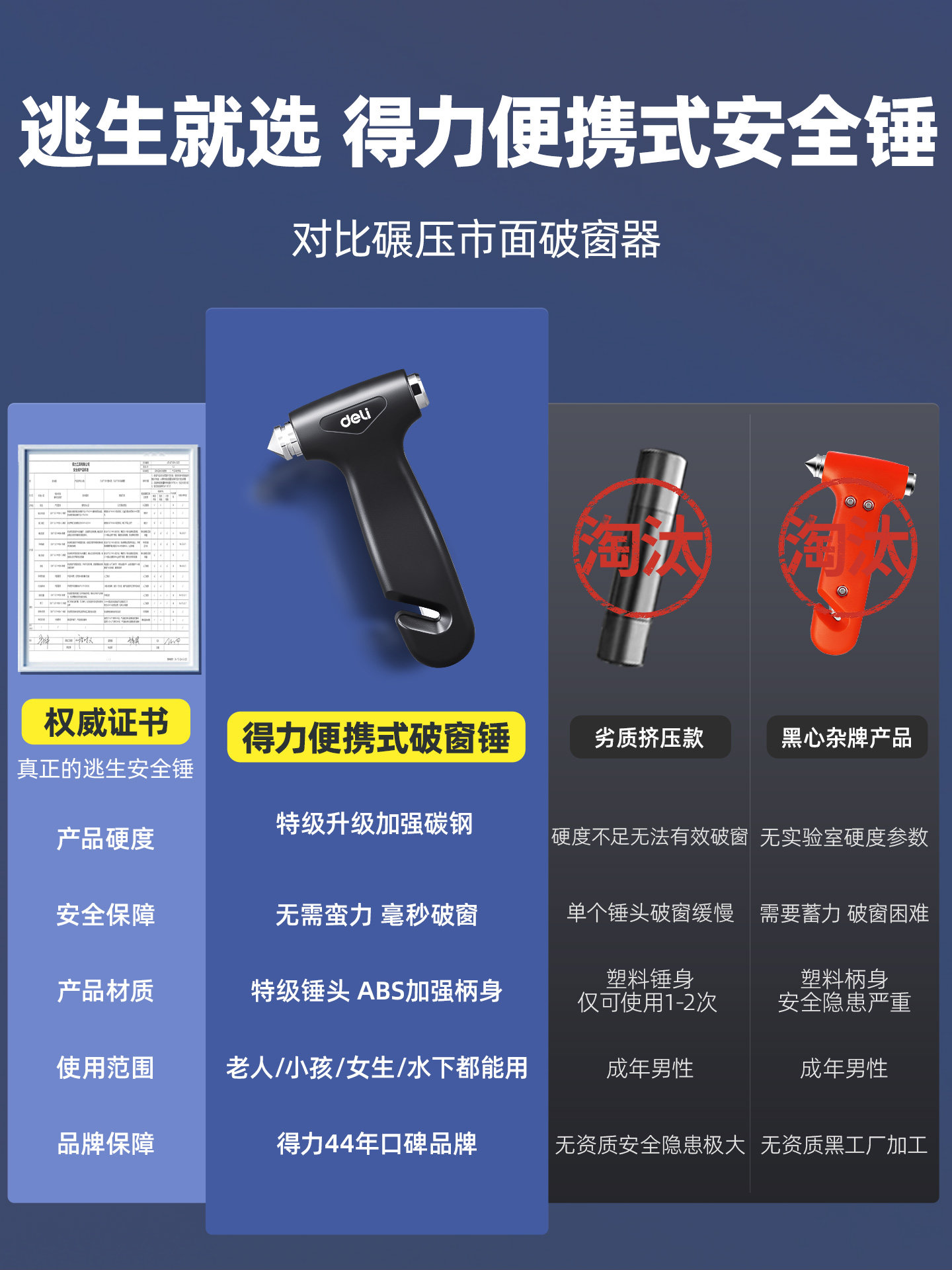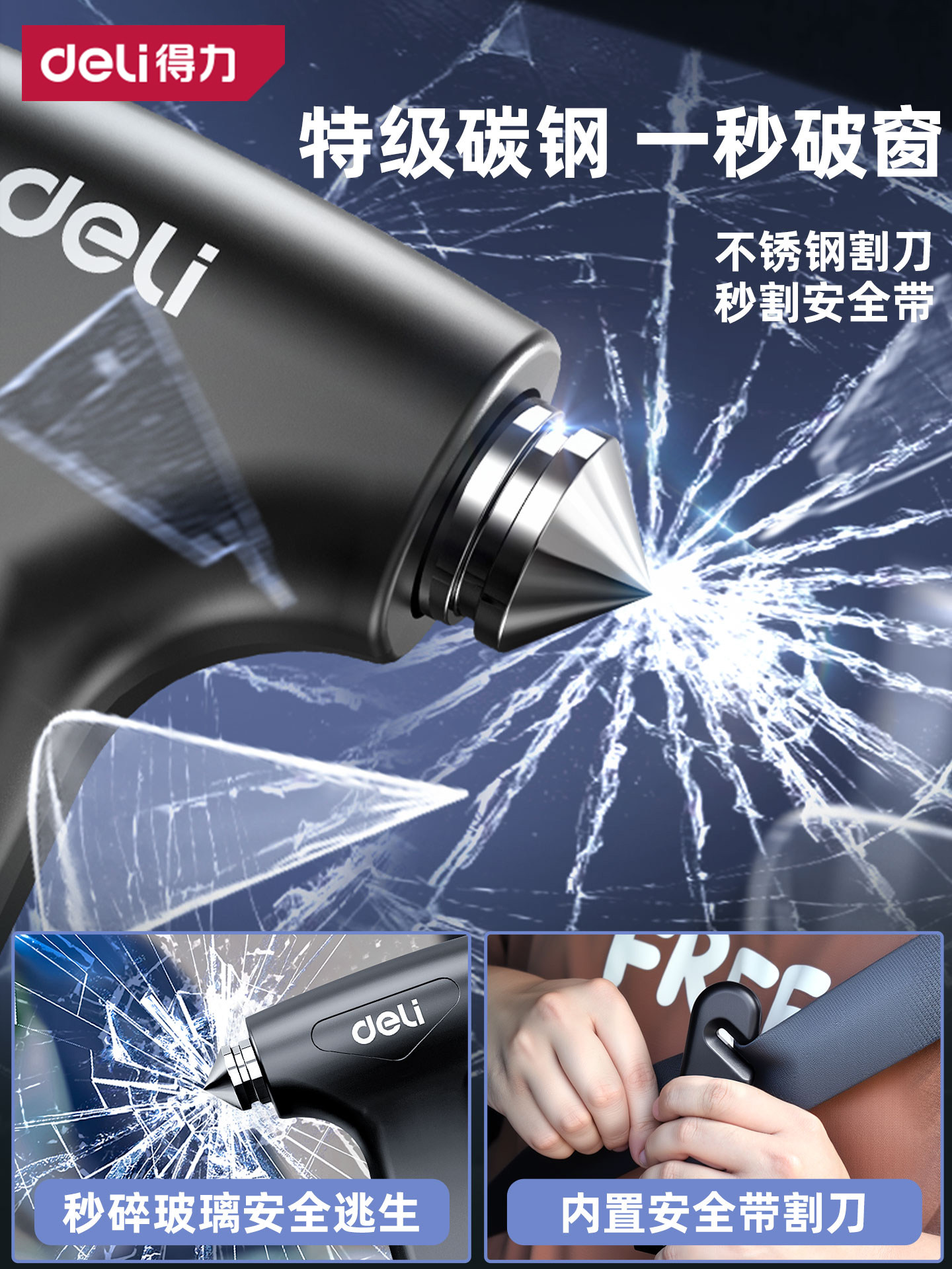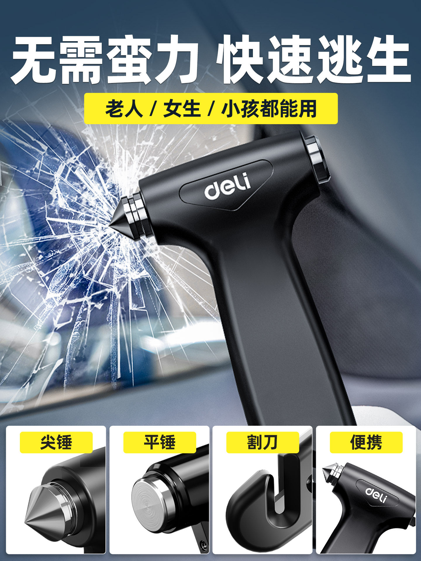 得力安全锤汽车破窗神器四合一带割刀车载用碎玻璃多功能逃生锤救