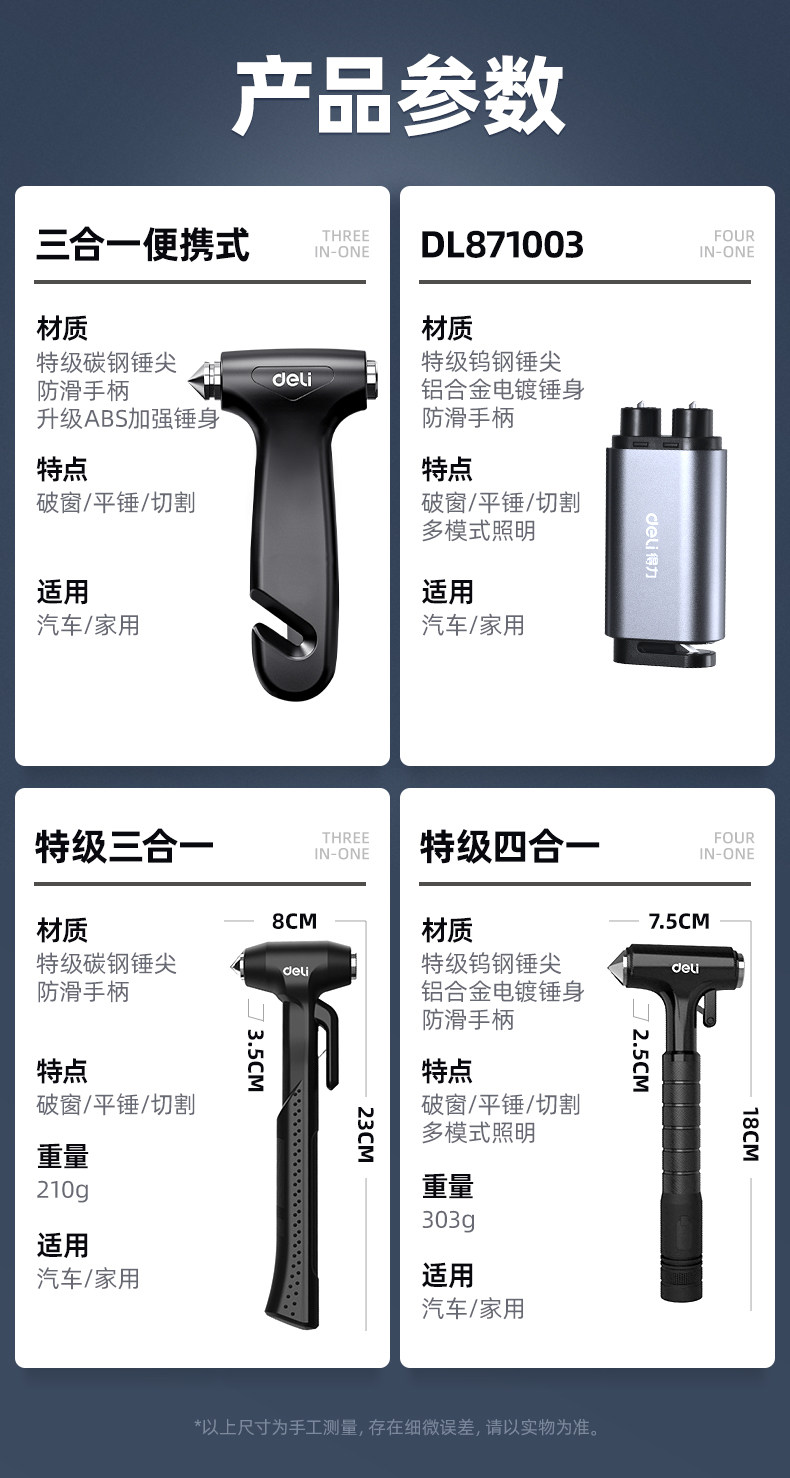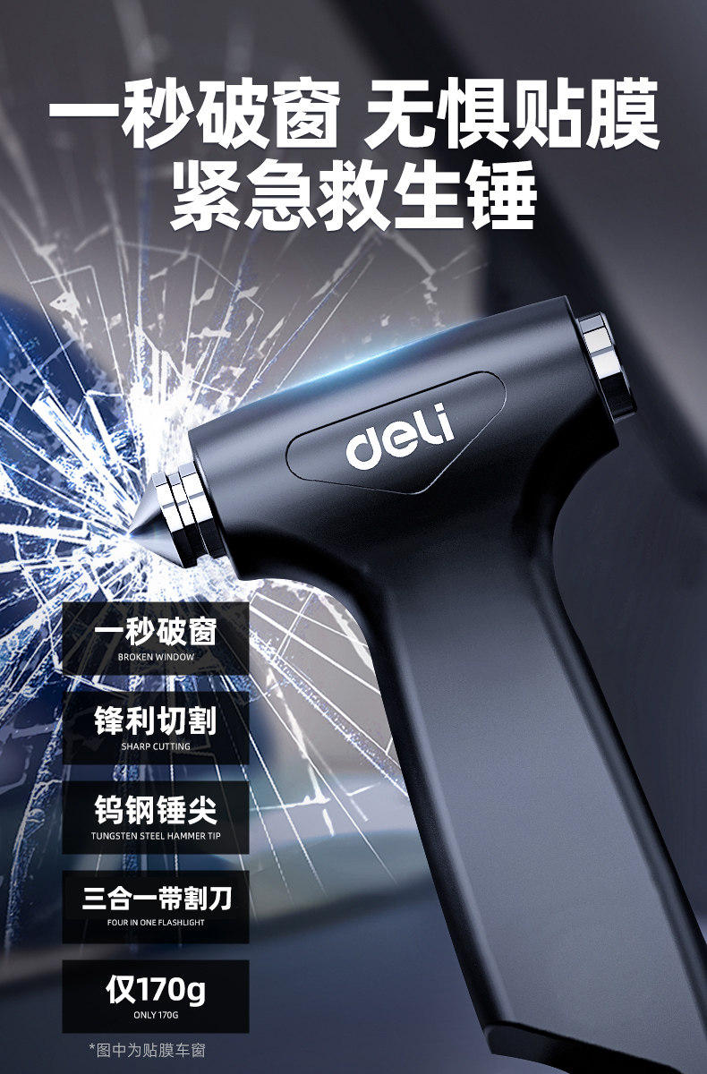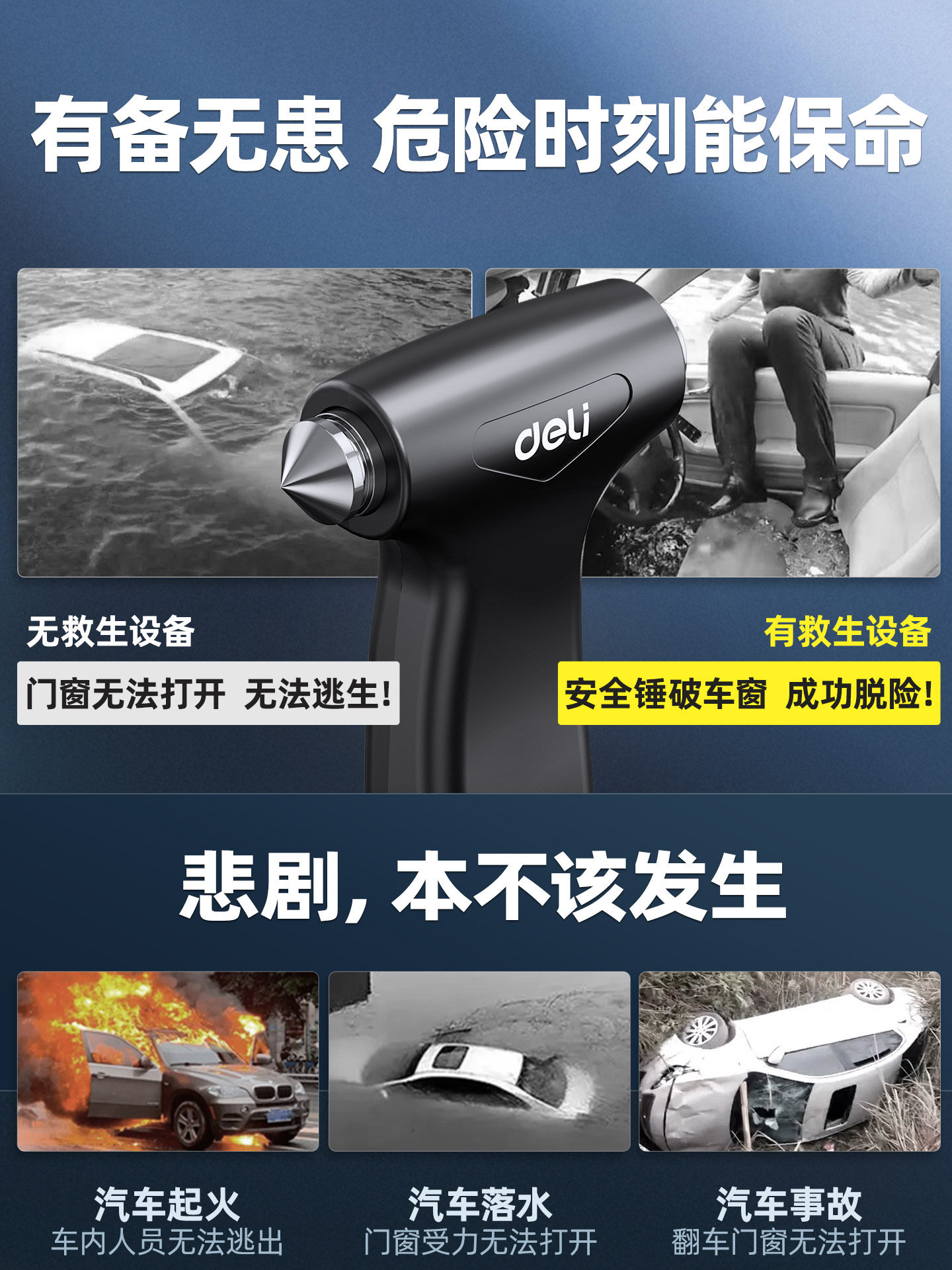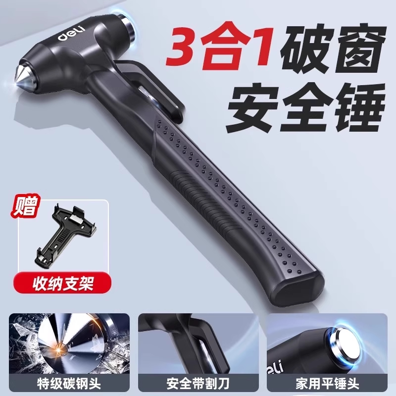 得力安全锤汽车破窗神器四合一带割刀车载用碎玻璃多功能逃生锤救