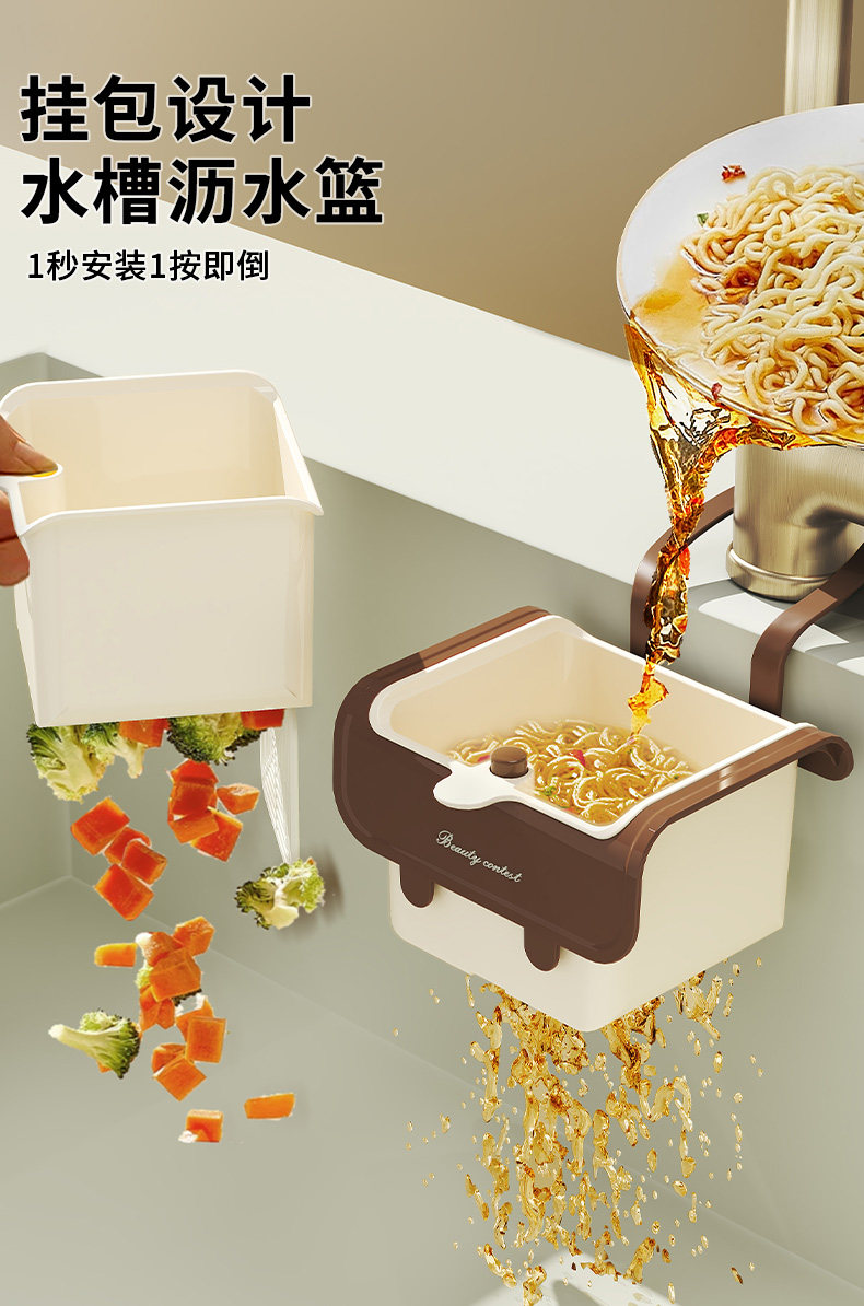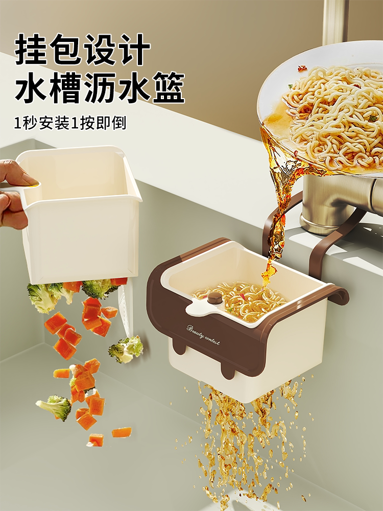 奶油可挂式水槽沥水篮家用厨房分离食物残渣过滤篮水果清洗滤水篮