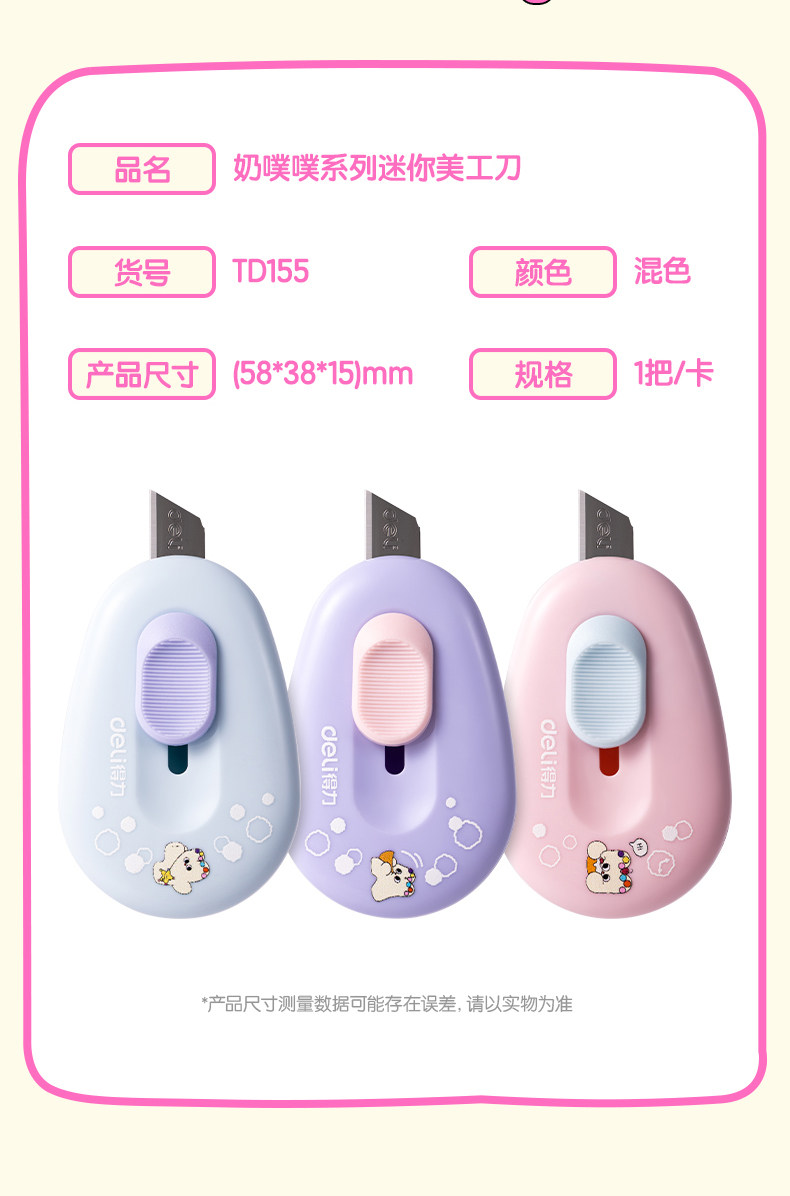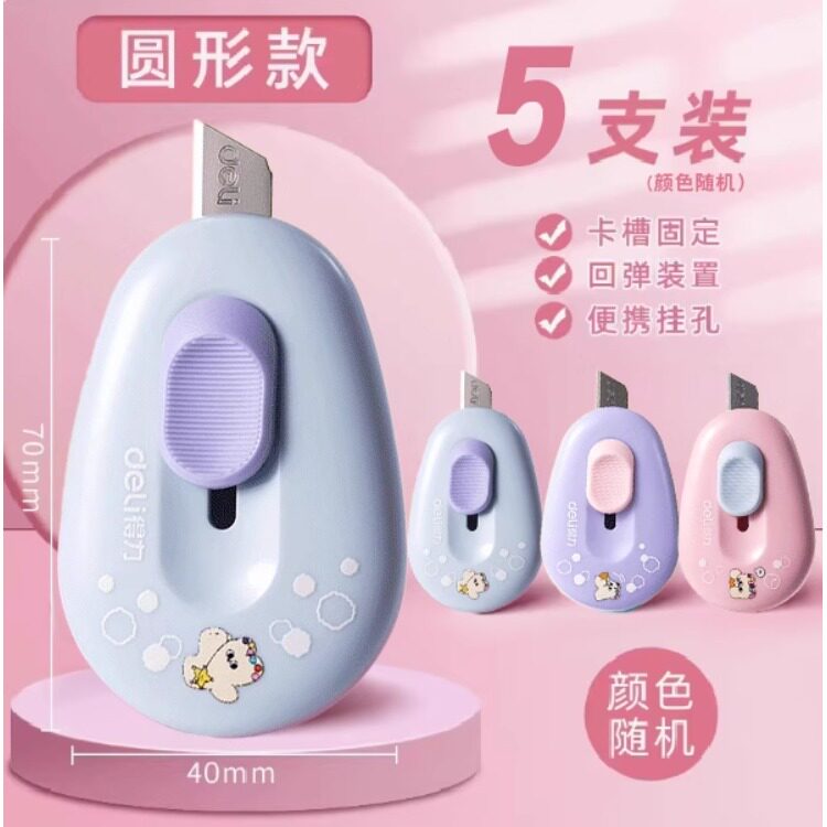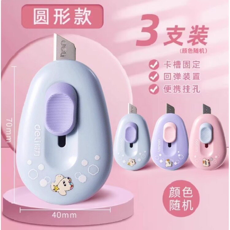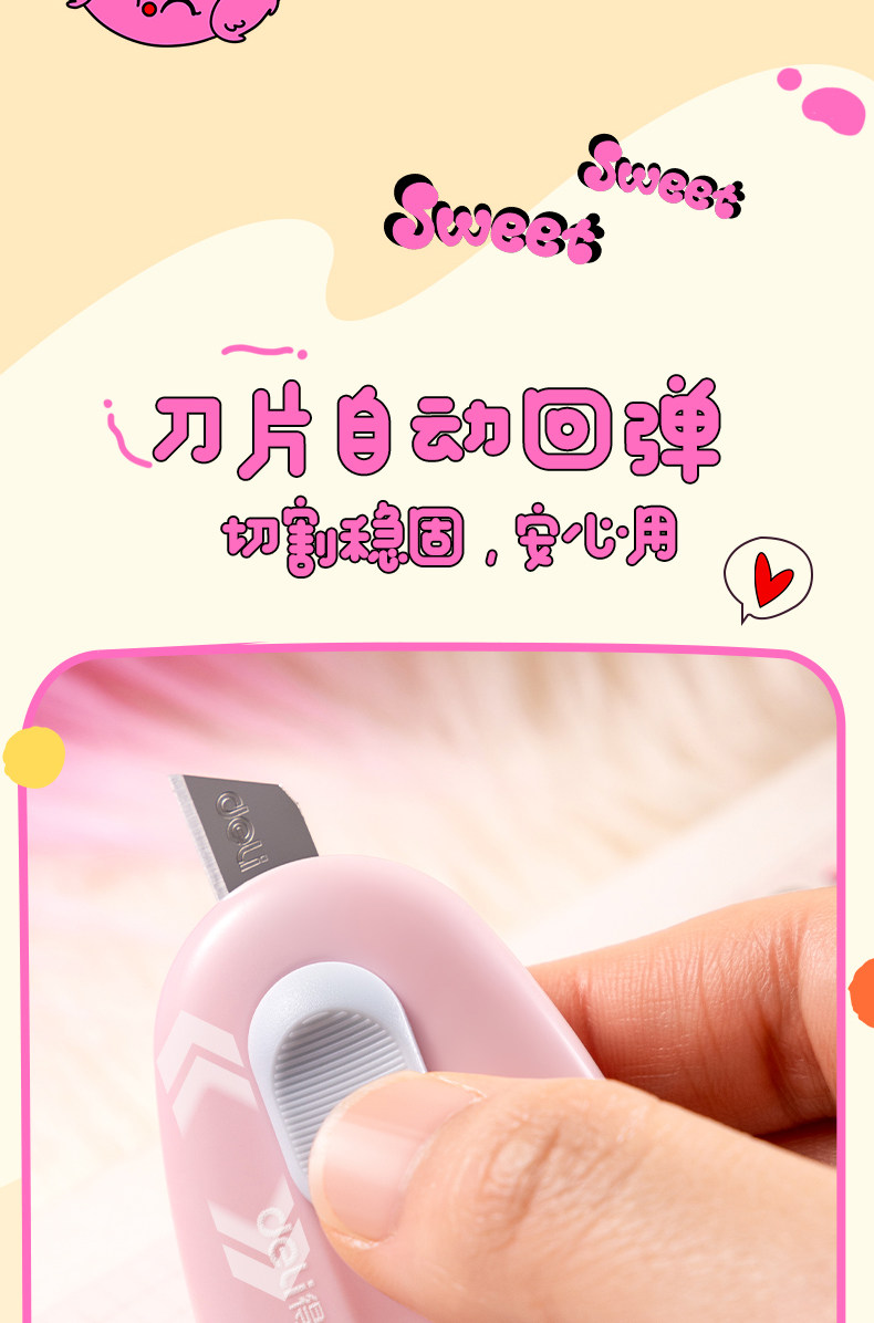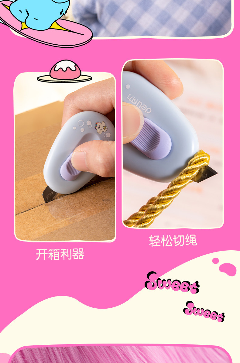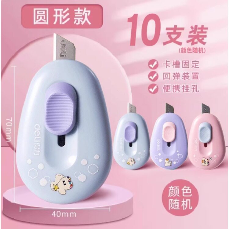 得力奶噗噗联名迷你美工刀小型拆快递小刀钥匙扣便携式多功能美工刀高颜值学生用裁纸刀小号开箱刀拆快递神器