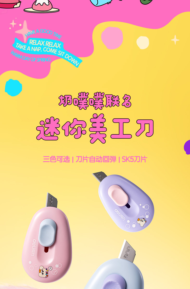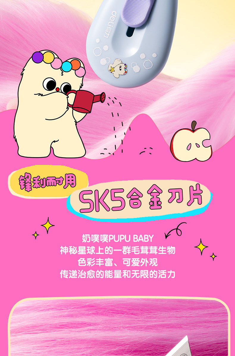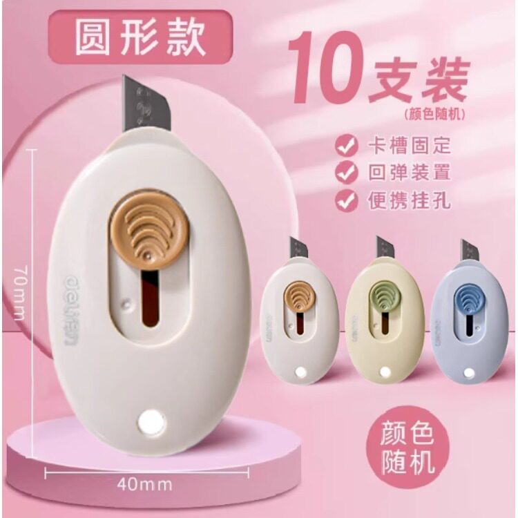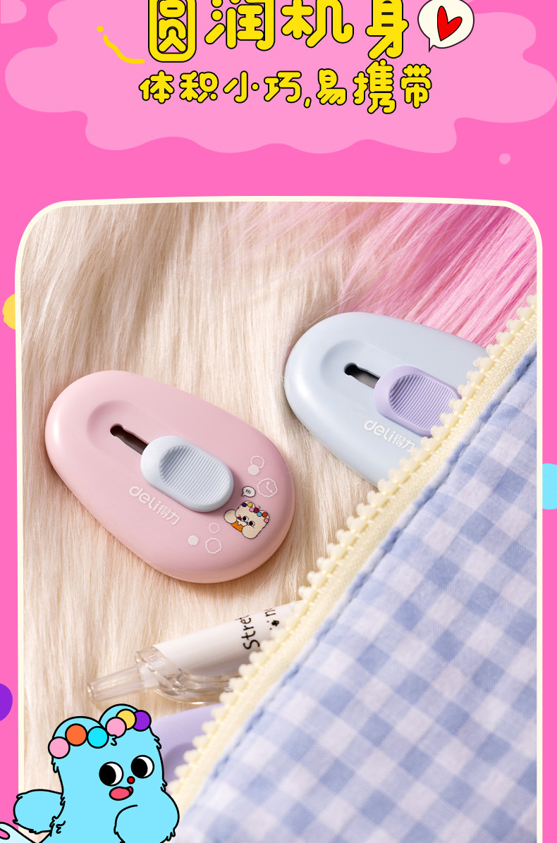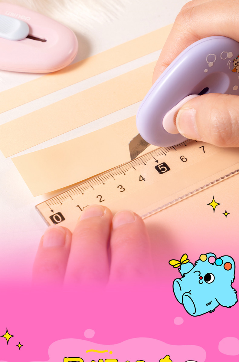 得力奶噗噗联名迷你美工刀小型拆快递小刀钥匙扣便携式多功能美工刀高颜值学生用裁纸刀小号开箱刀拆快递神器