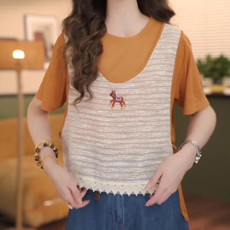 假两件上衣【慵懒风宽松短袖/独特漂亮减龄款上衣/今年流行的漂亮短袖】 / M(建议100斤以内)
