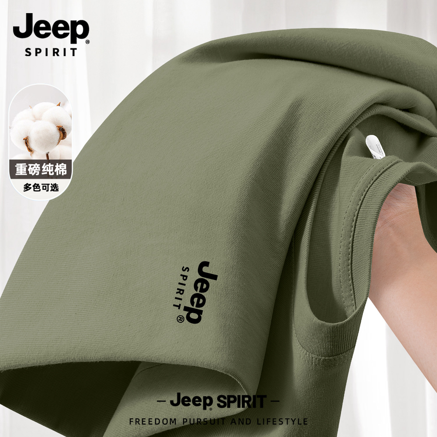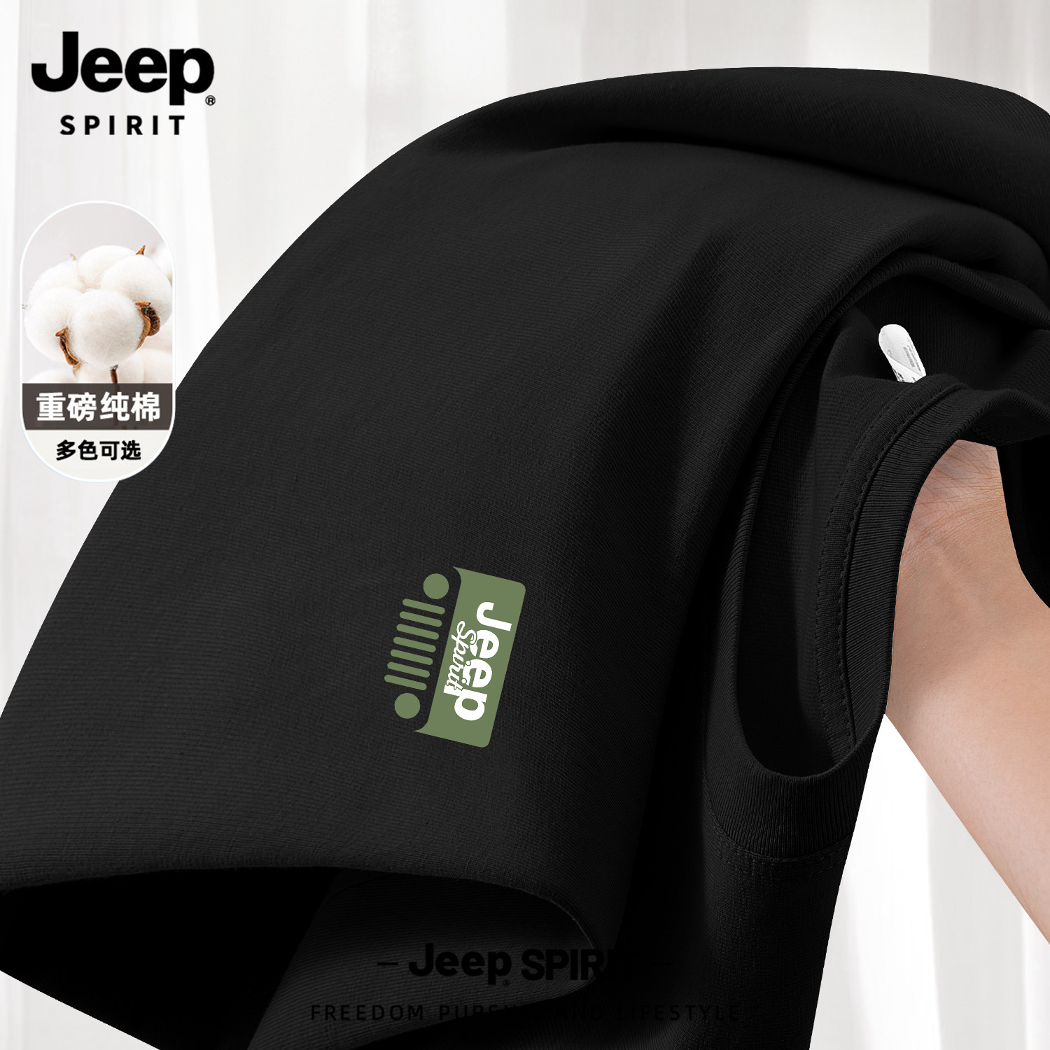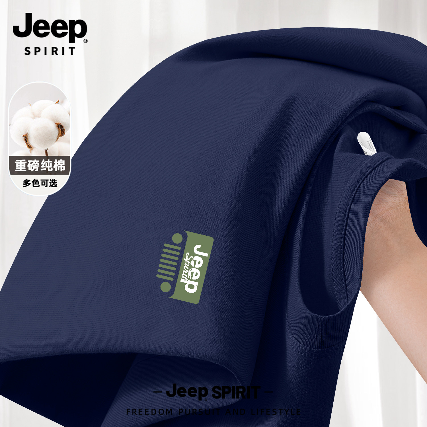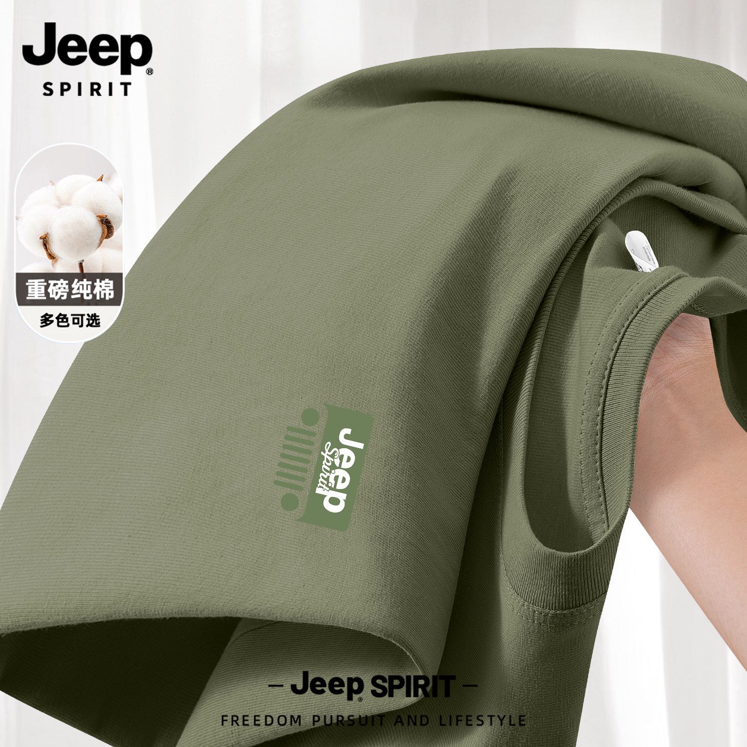 Jeep吉普山系纯棉短袖男款夏季男士2026新款父亲爸爸t恤大码男装