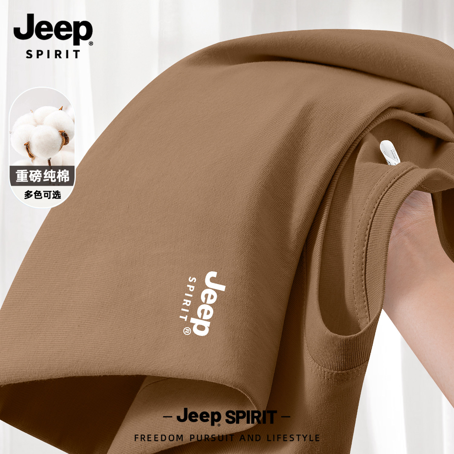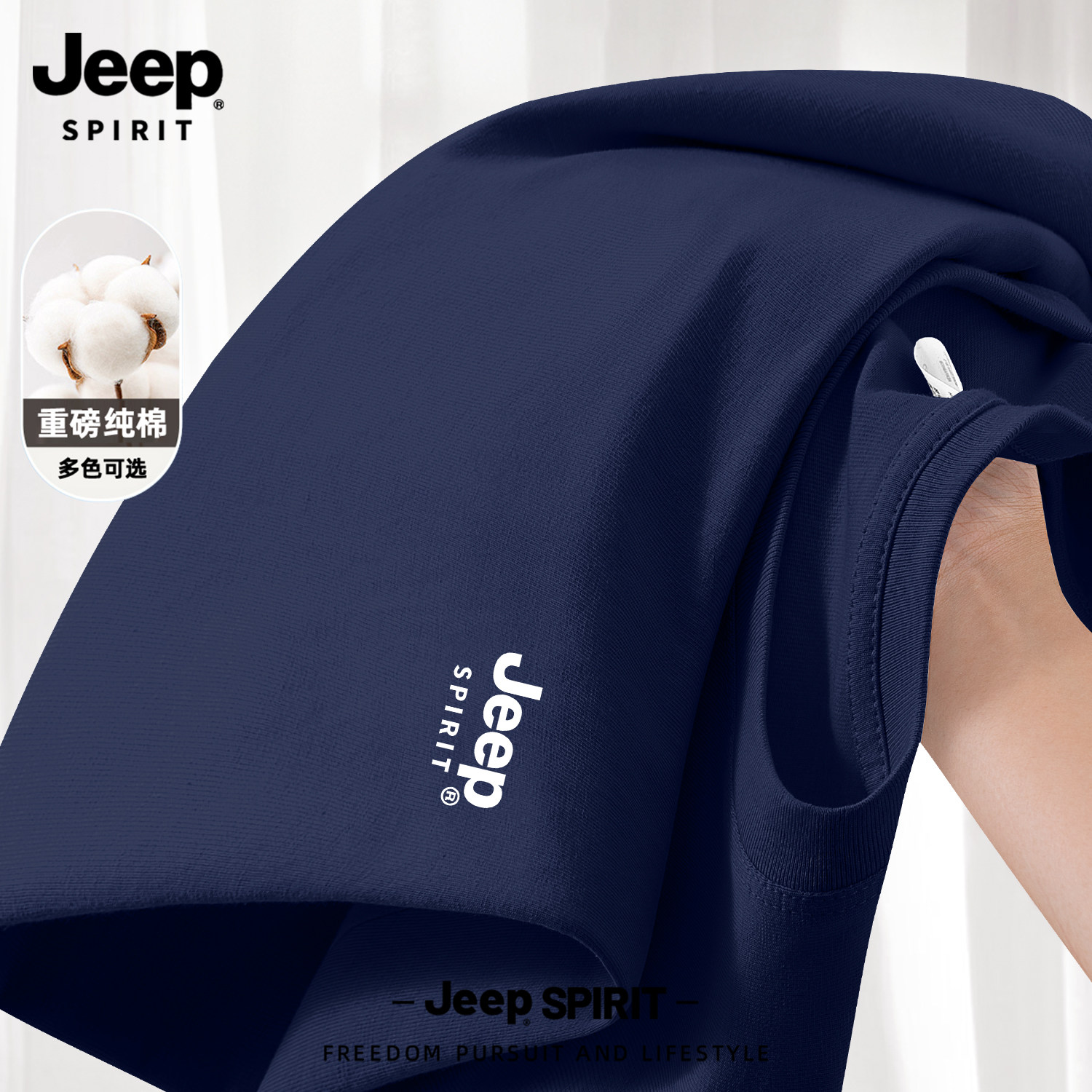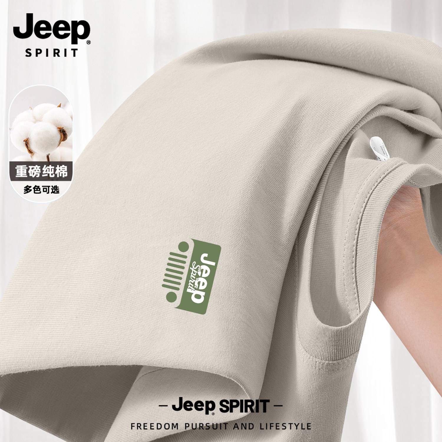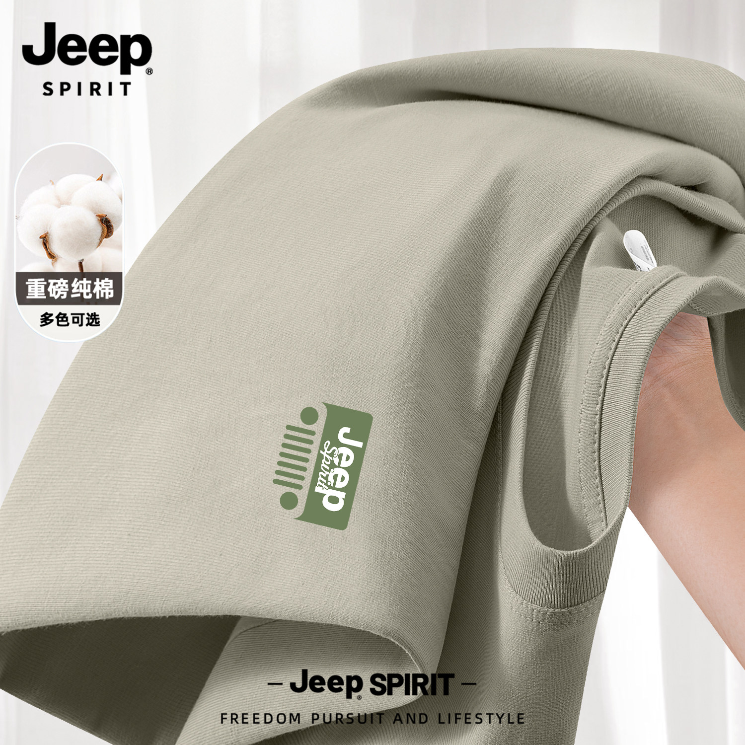 Jeep吉普山系纯棉短袖男款夏季男士2026新款父亲爸爸t恤大码男装