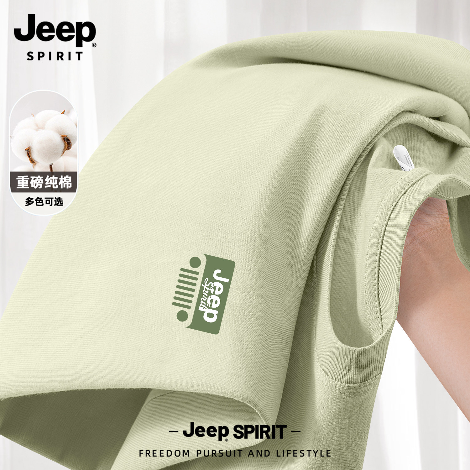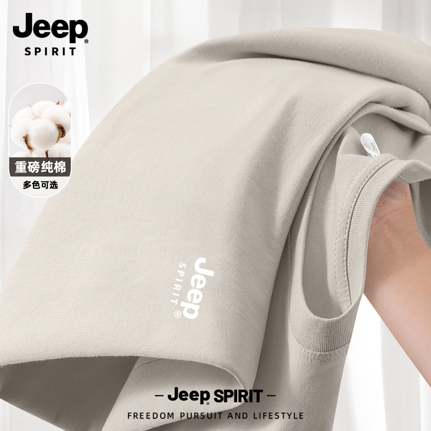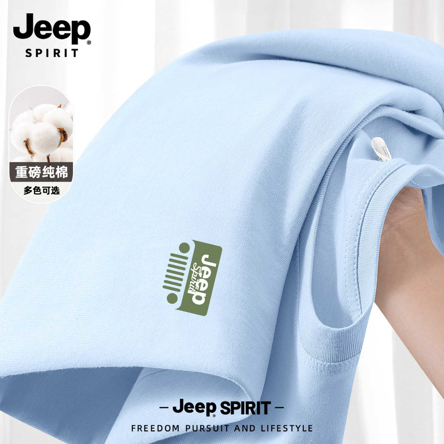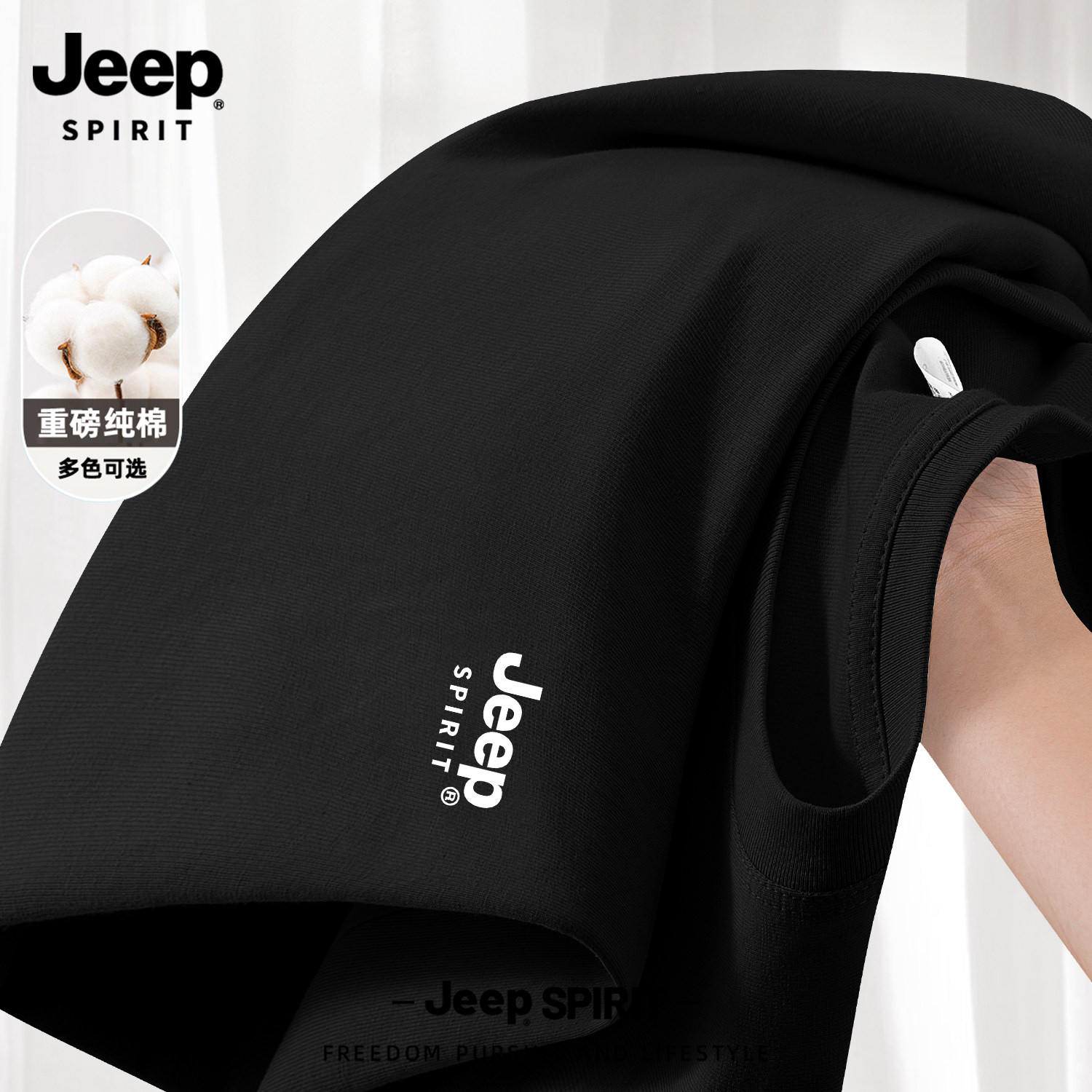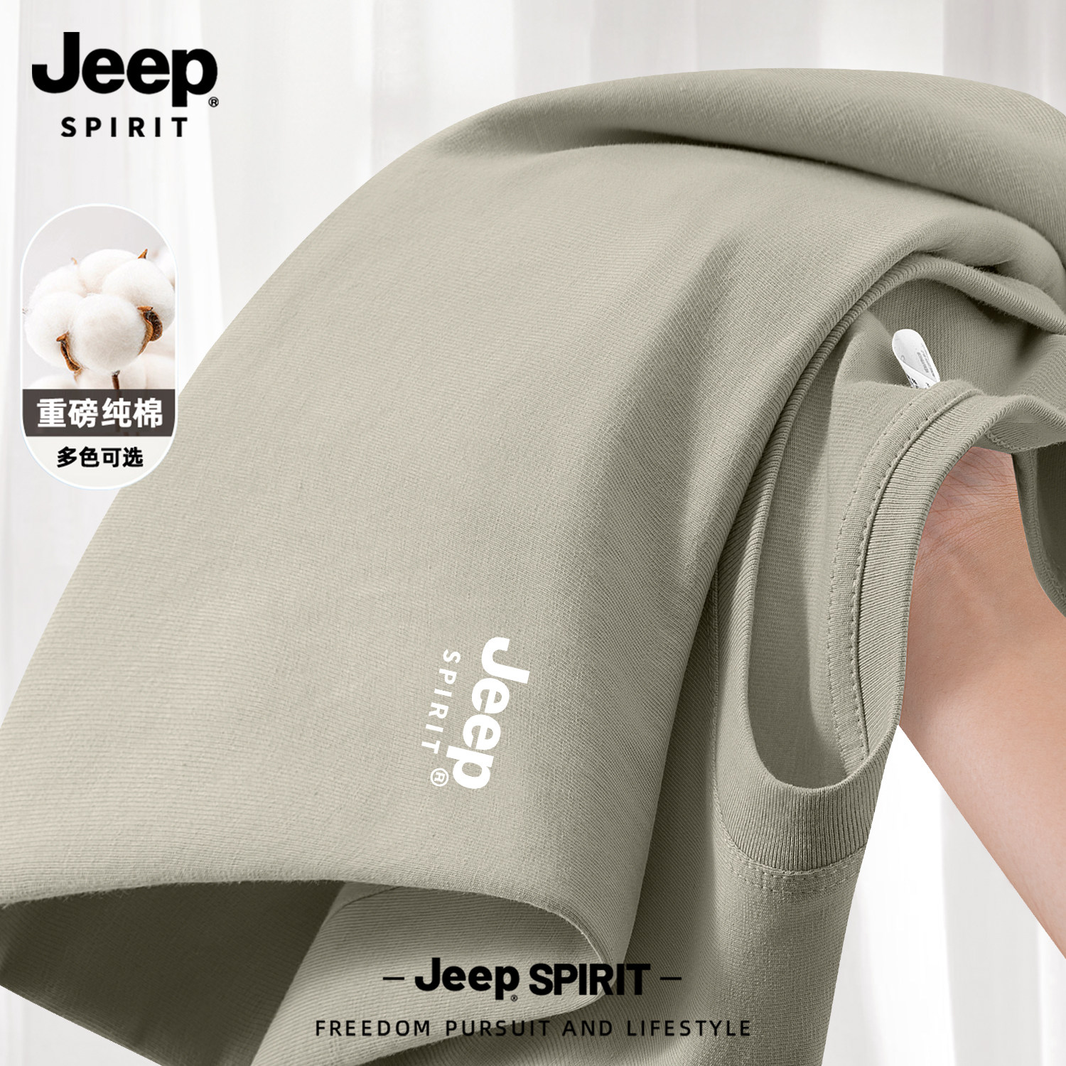 Jeep吉普山系纯棉短袖男款夏季男士2026新款父亲爸爸t恤大码男装
