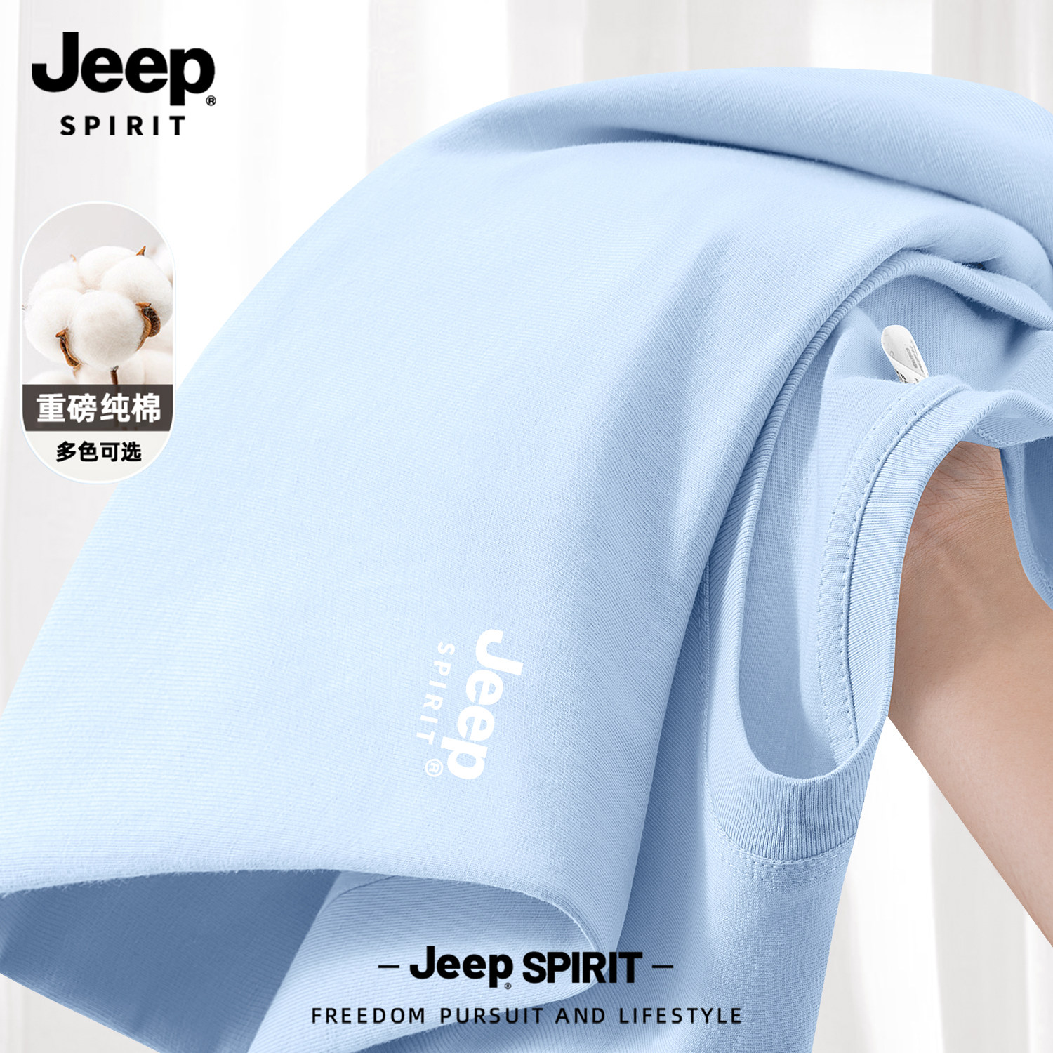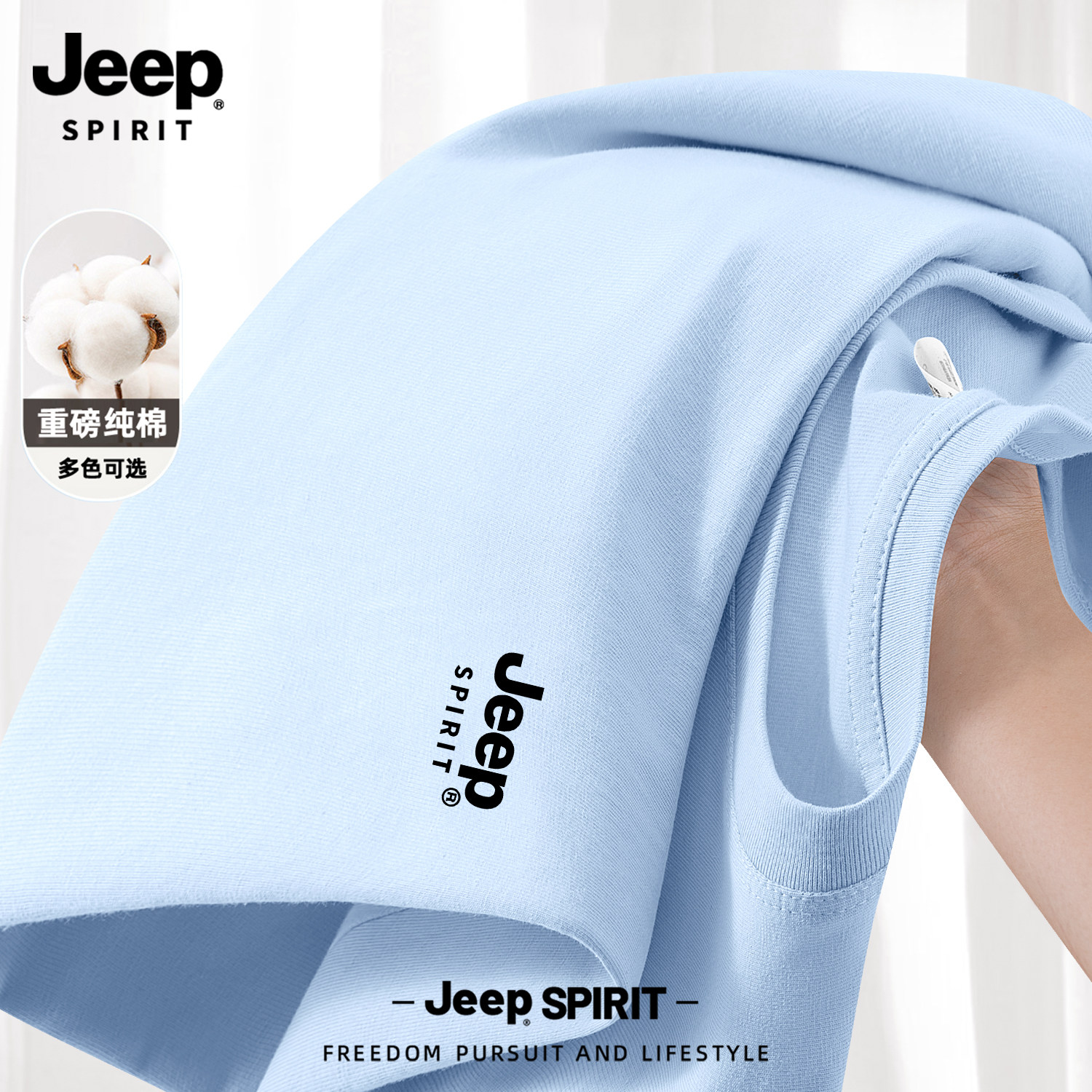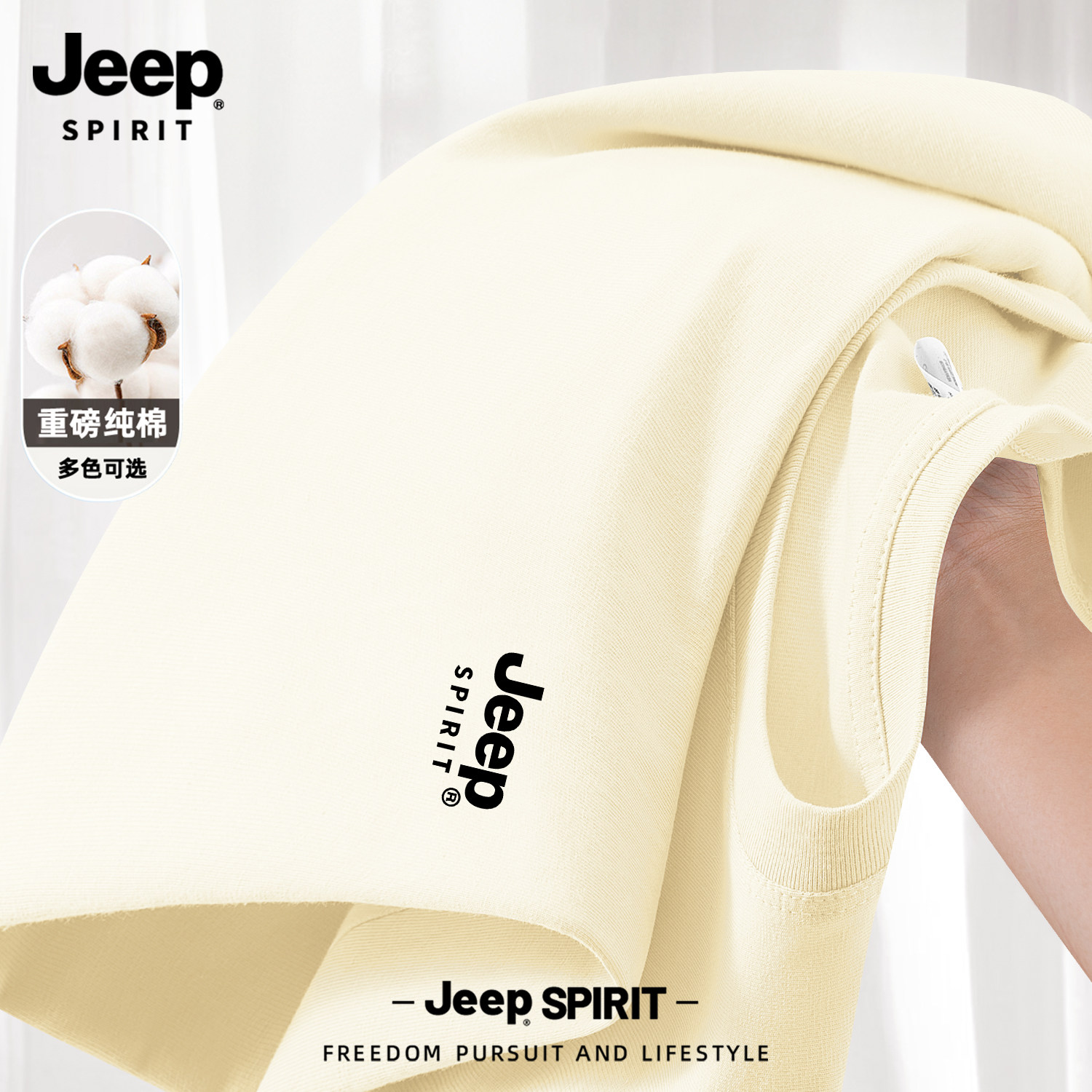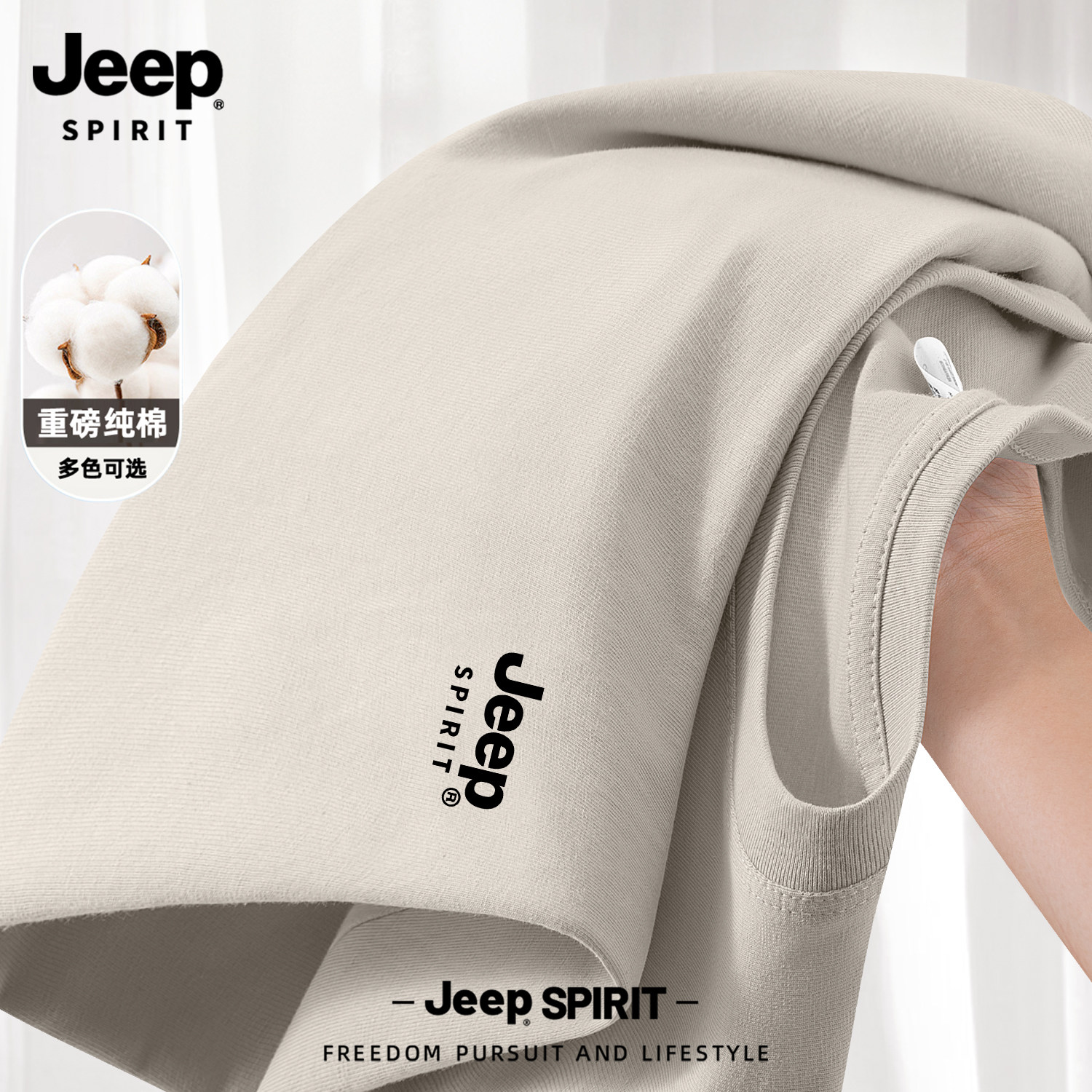 Jeep吉普山系纯棉短袖男款夏季男士2026新款父亲爸爸t恤大码男装