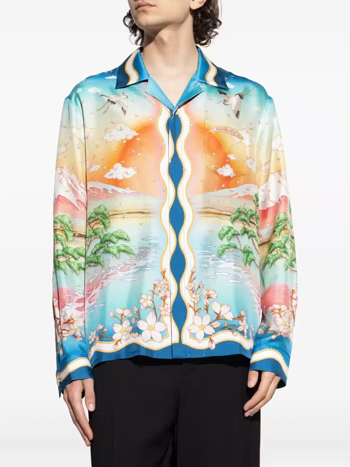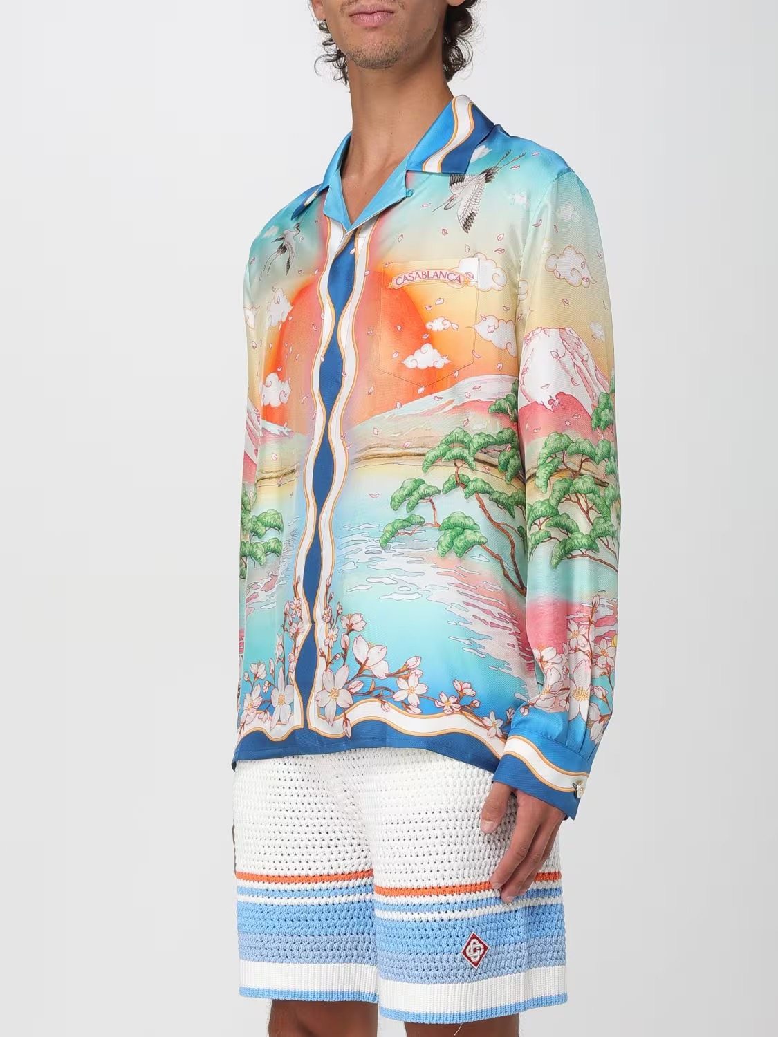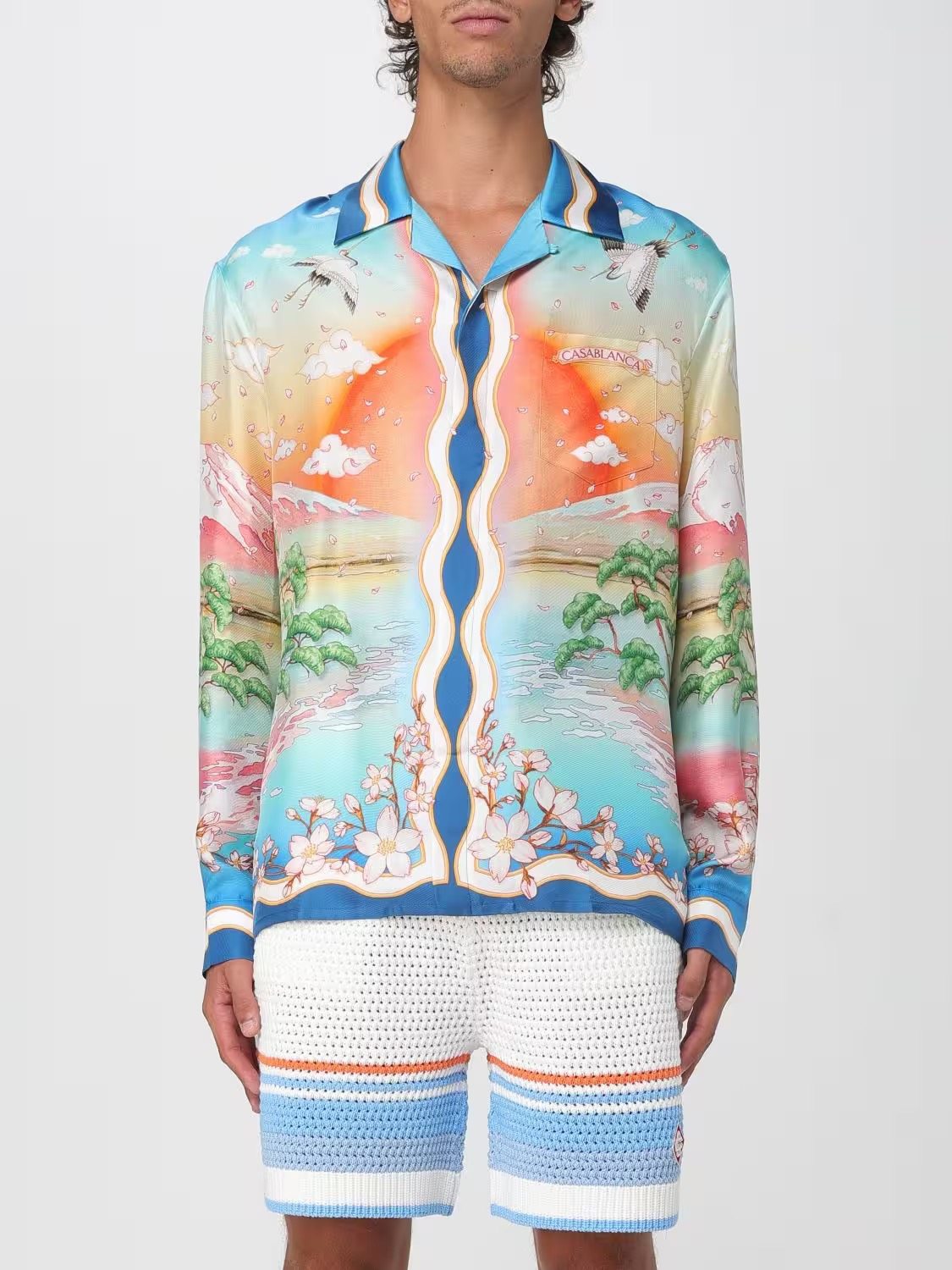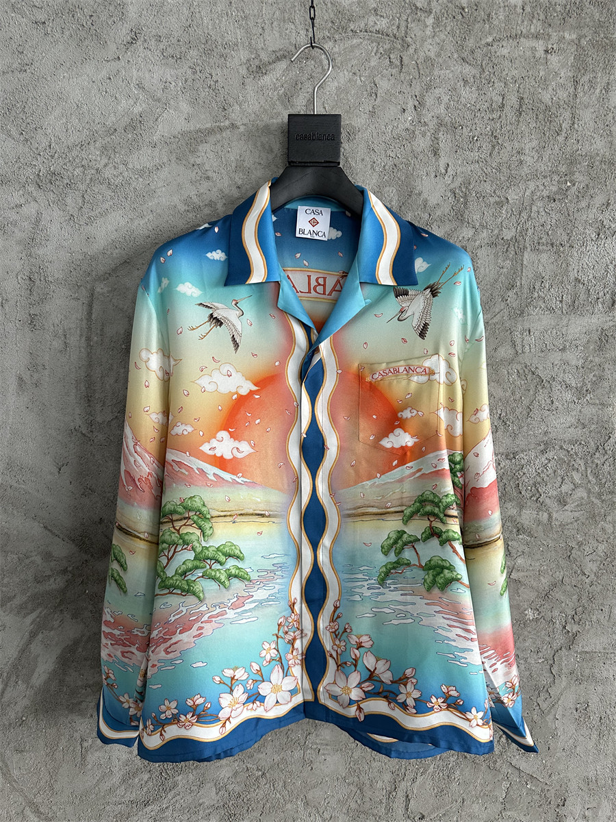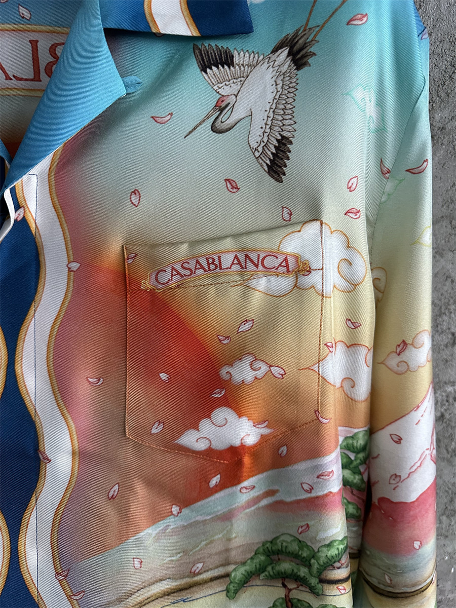 轩战CASABLANCA夏季长袖薄款衬衣外套休闲美式宽松衬衫长袖上衣