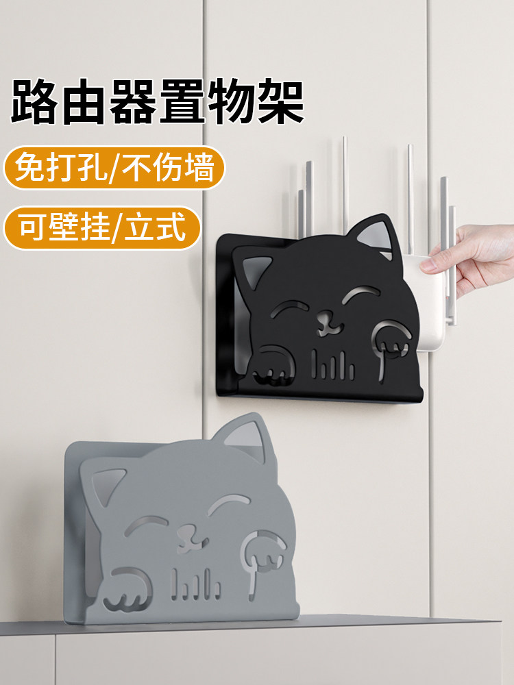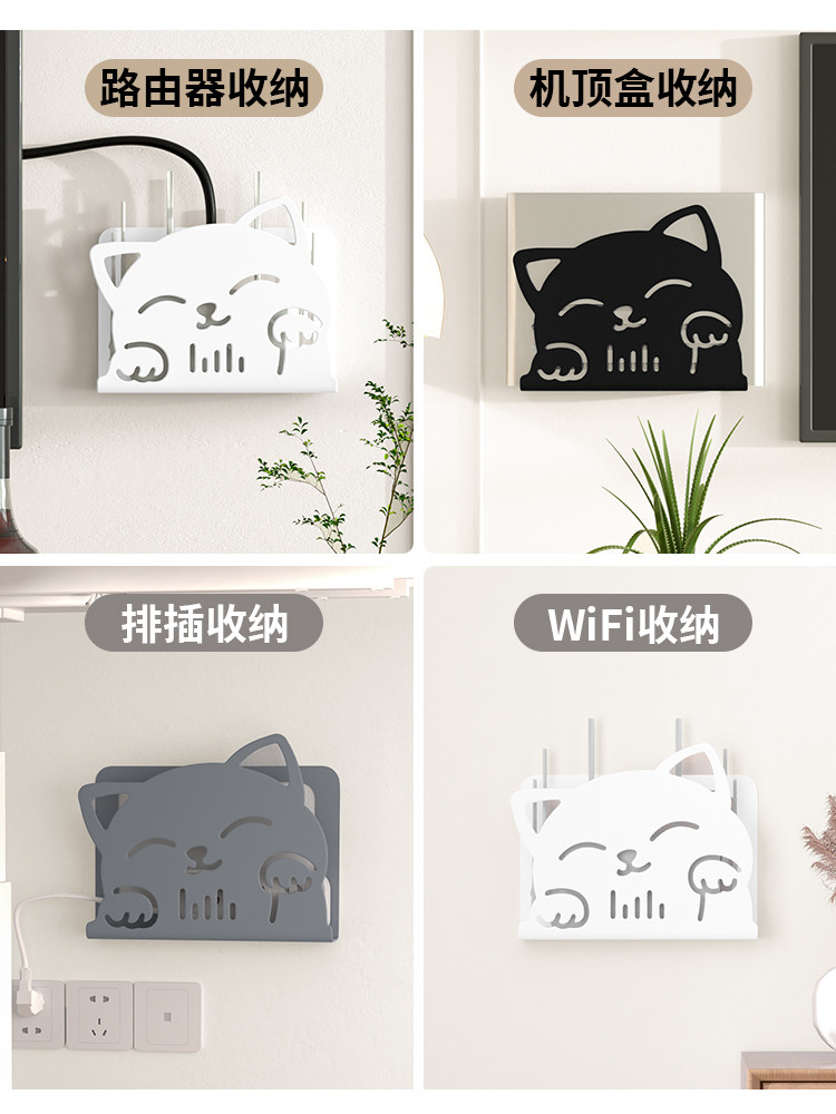 路由器墙壁挂盒免打孔电视机顶盒放置架无线网隐藏收纳wifi置物架