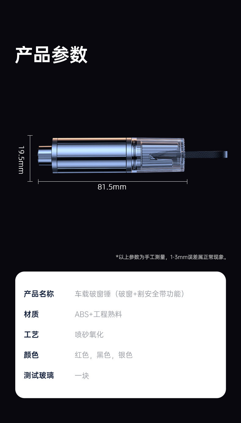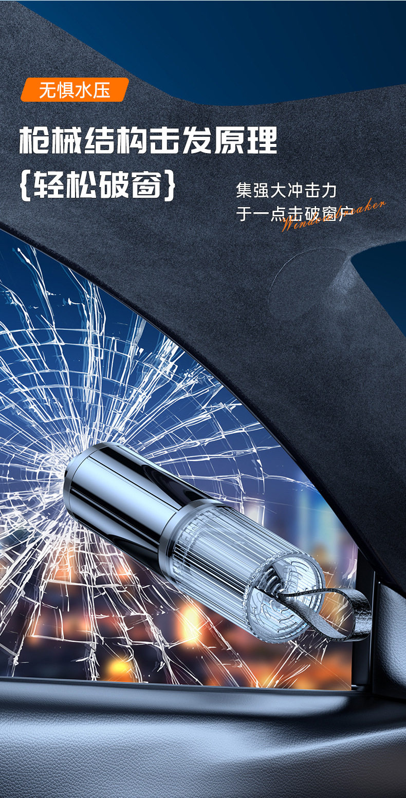 升级款~磨砂黑【中文小包装】无测试玻璃 一秒破窗 秒割安全带