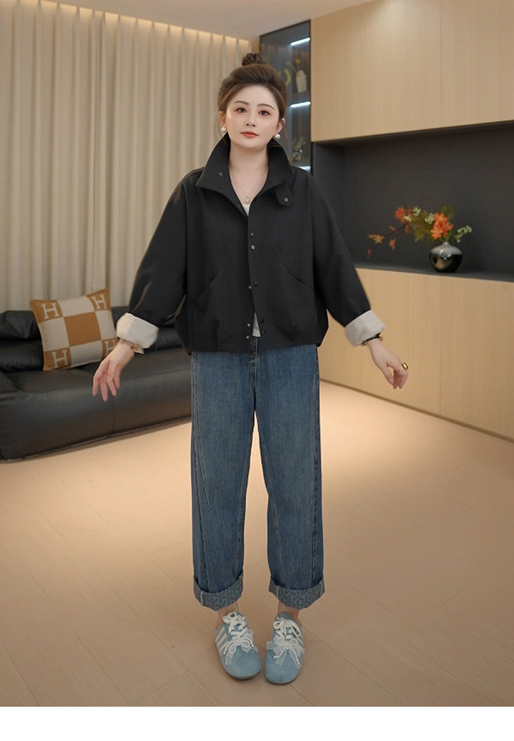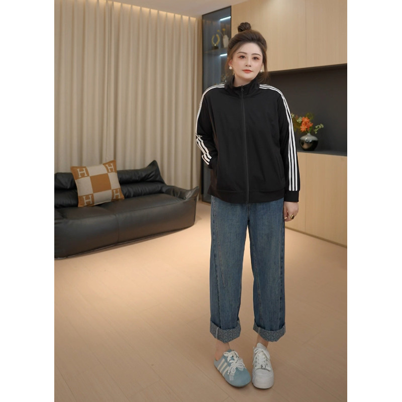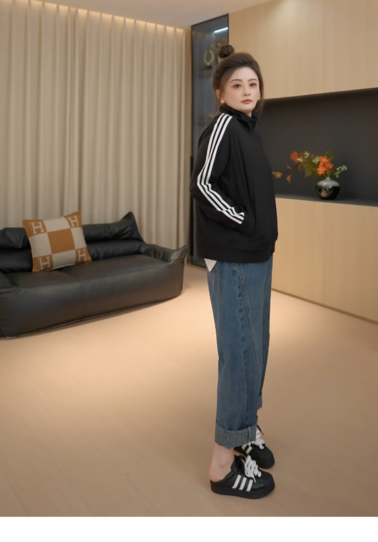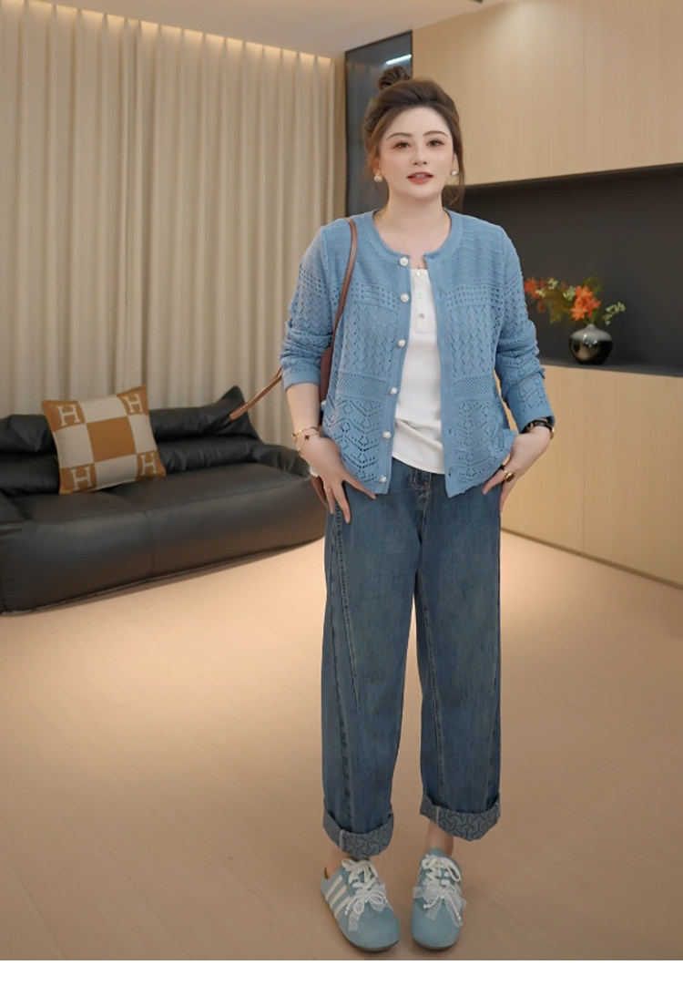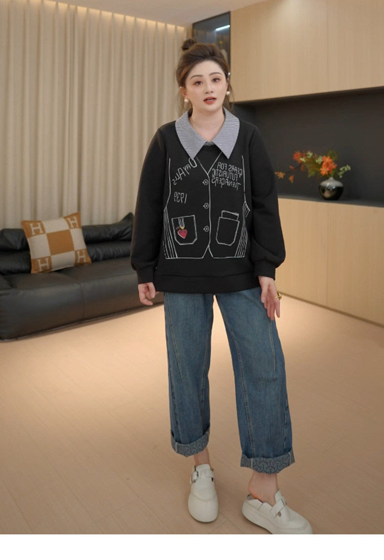 【胖佳佳】提花翻边牛仔裤 秋季高腰时尚宽松显瘦长裤H625Z13293