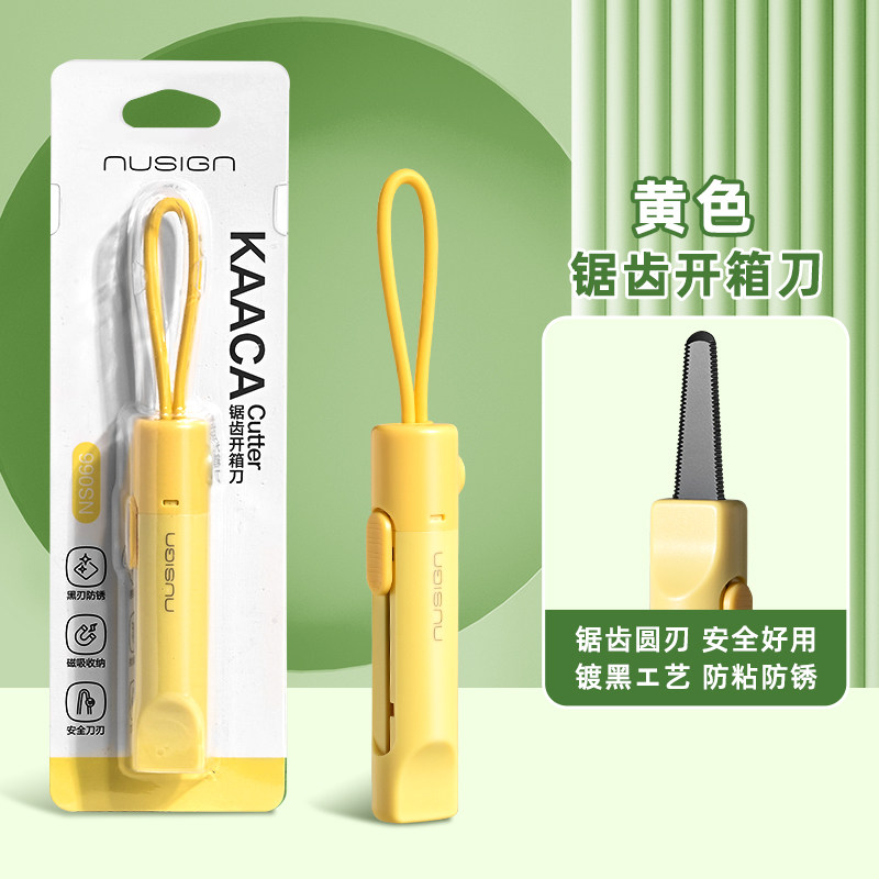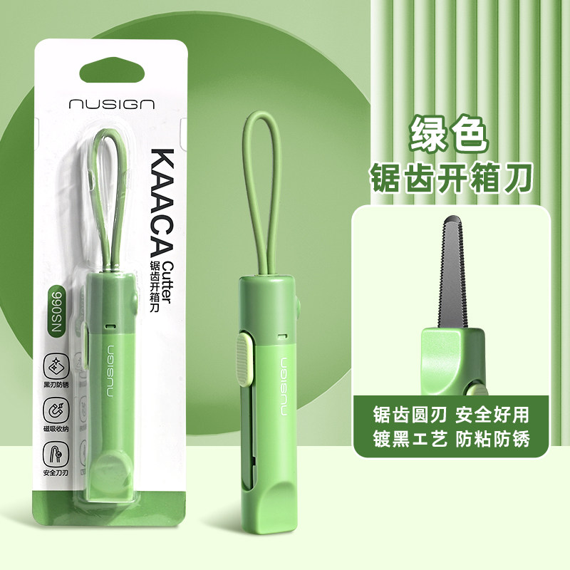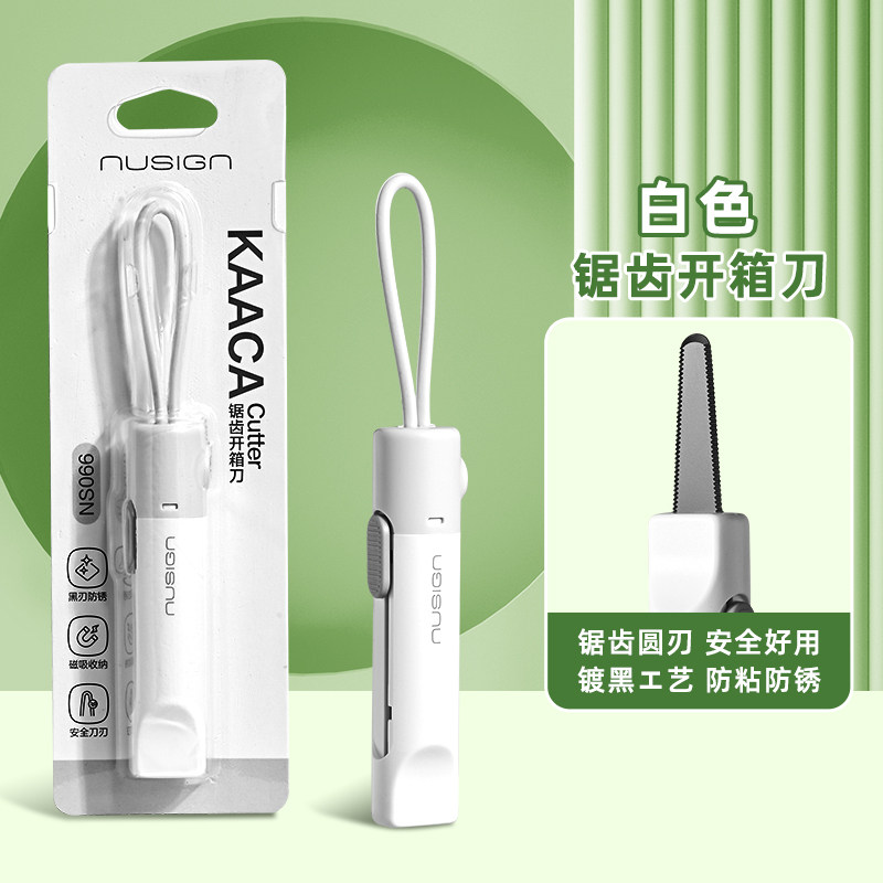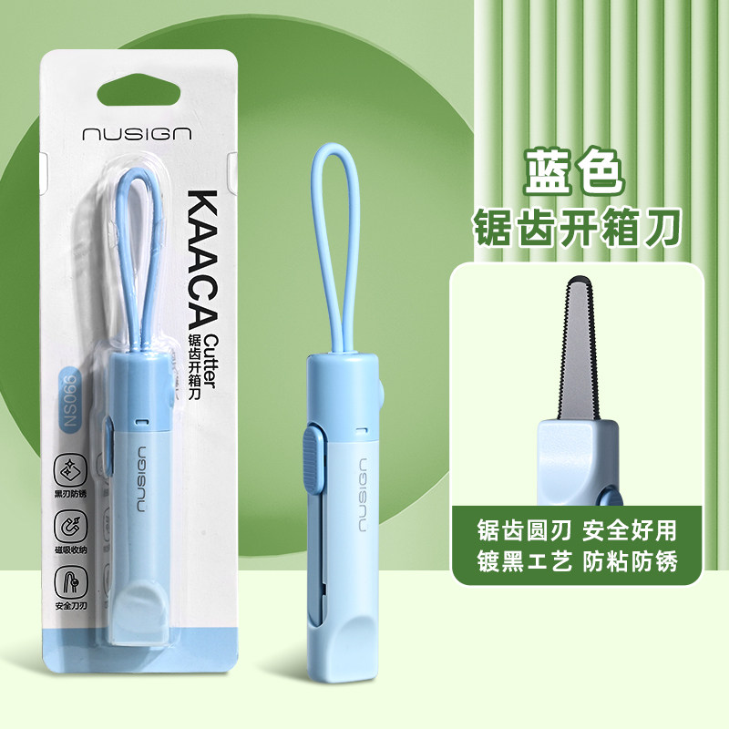 得力纽赛新品磁吸快递刀多功能美工刀迷你便携锯齿开箱刀高颜值学生拆快递刀挂绳钥匙扣神器安全防割手开箱器