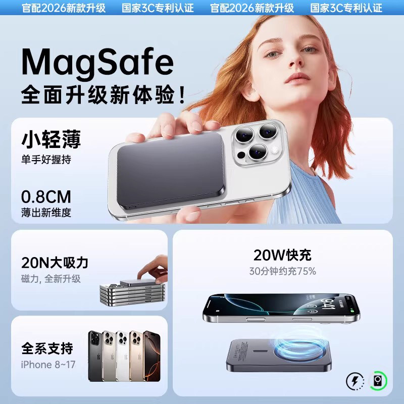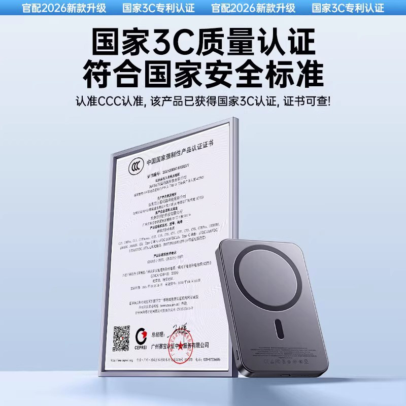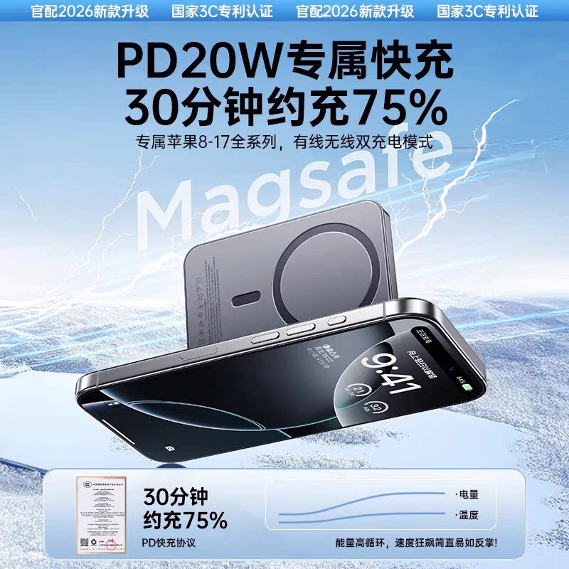 【新国标3C认证】2026新款磁吸充电宝适用苹果iPhone官方原装快充大容量无线MagSafe超薄小巧飞机可携带便携