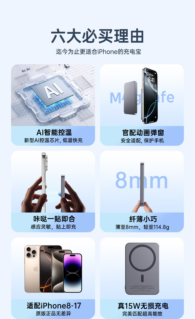 HomeProducts【新国标3C认证】2026新款磁吸充电宝适用苹果iPhone官方原装快充大容量无线MagSafe超薄小巧飞机可携带便携