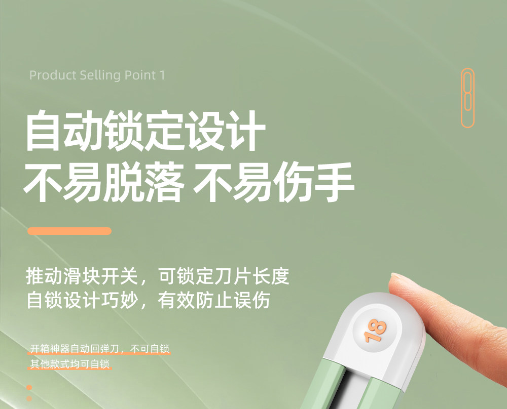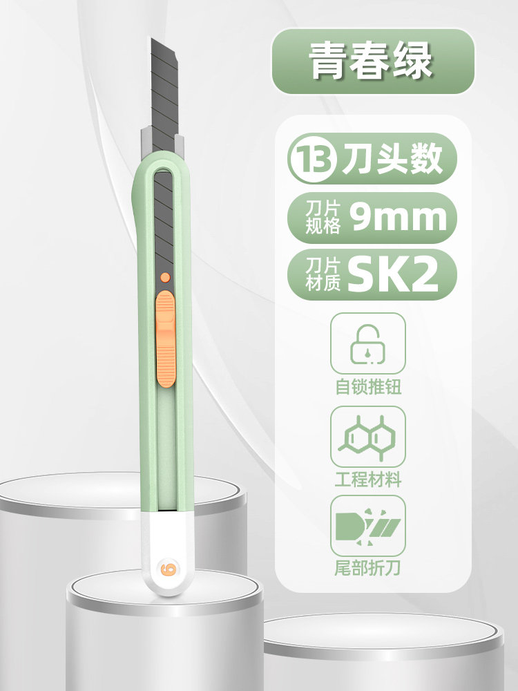 60°以下 / 145mm / 10cm / 【青春绿】9mm--自锁推钮+SK2黑刃刀片