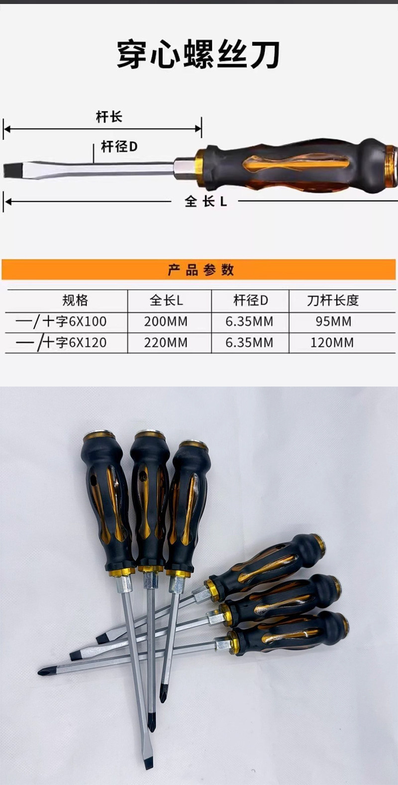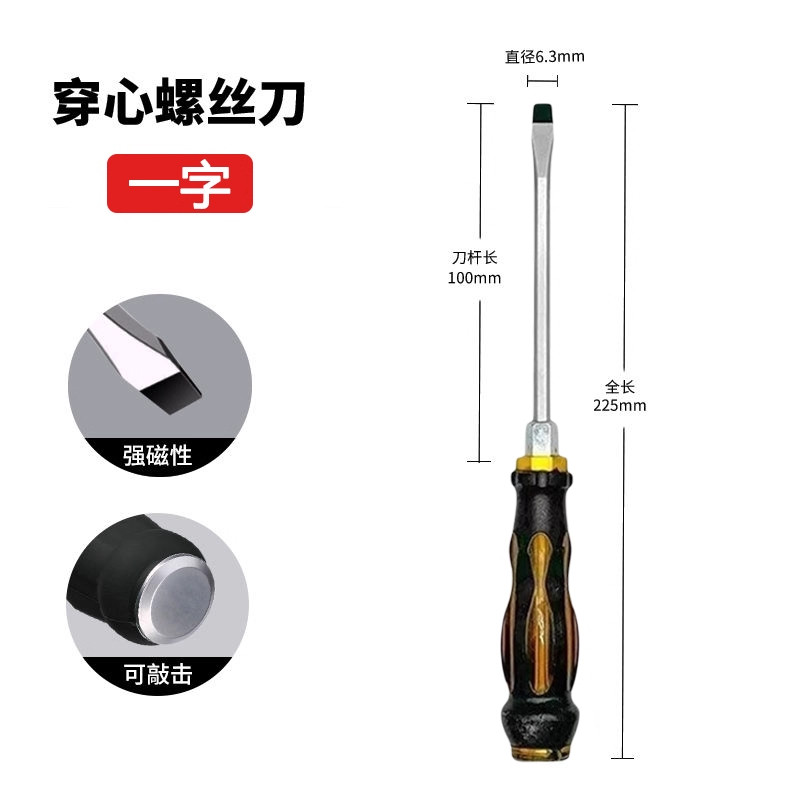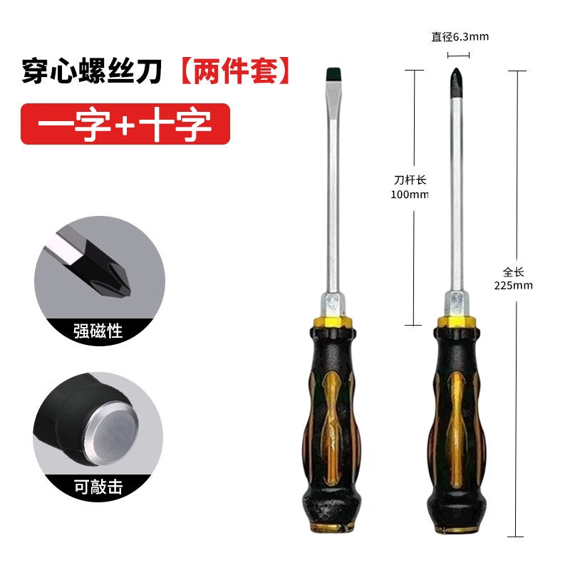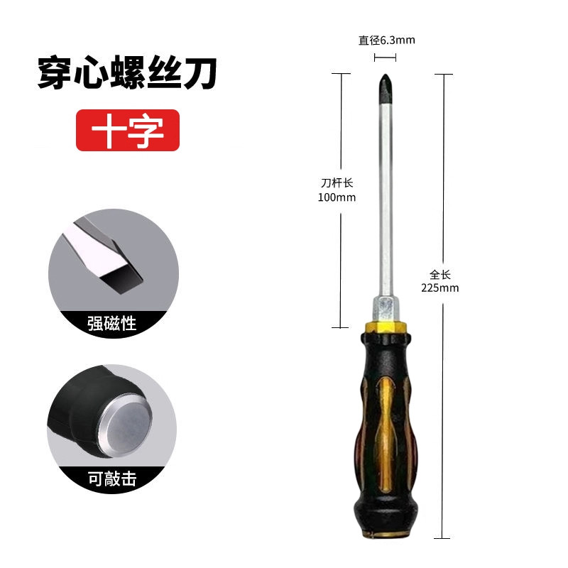 多功能穿心螺丝刀十字一字改锥工具可敲击螺丝批平口起子套装超硬