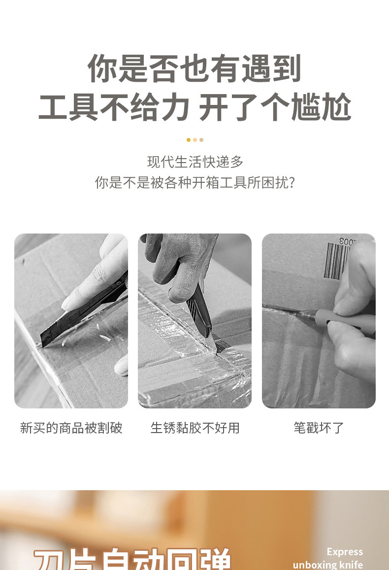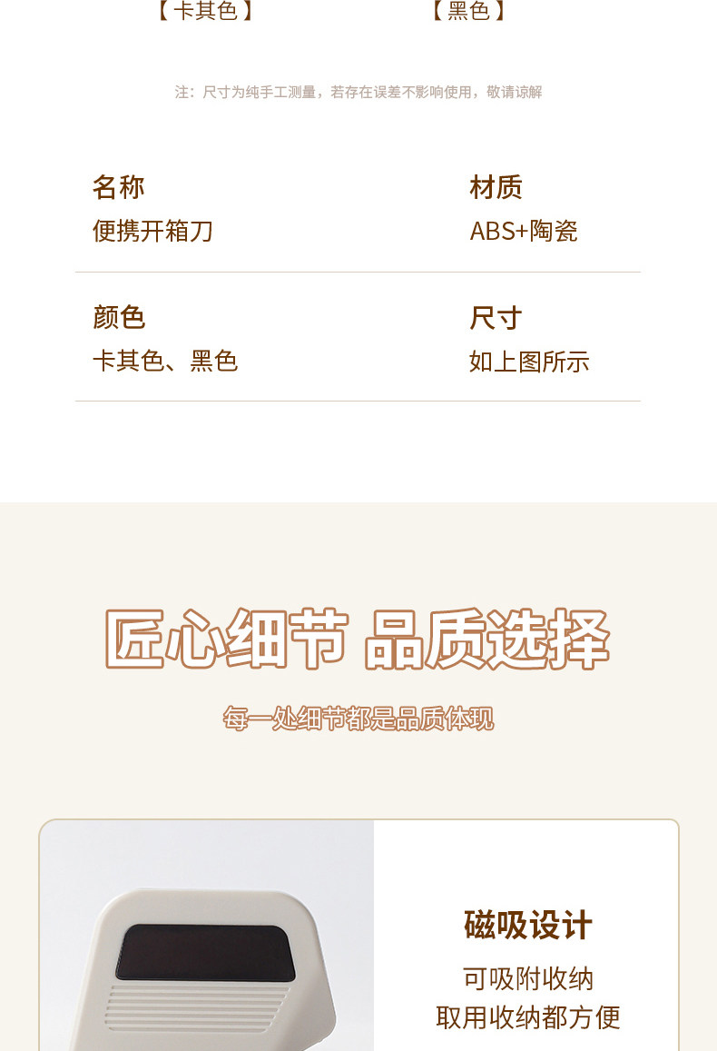 陶瓷拆箱刀创意安全自动回弹磁吸防粘开箱刀拆快递包裹专用开箱神器快递专用拆包裹直角凹槽纸箱包裹切割器刀