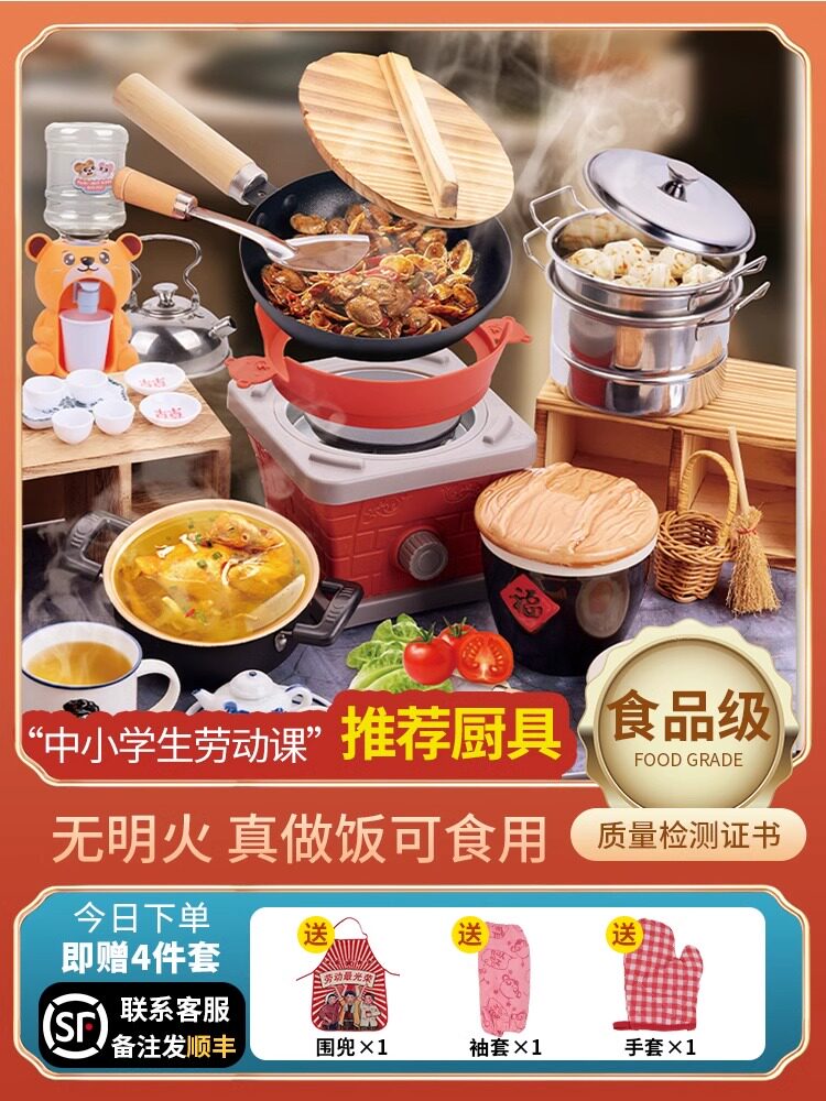 迷你小厨房真煮做饭厨具套装真实版女孩过家家玩具真实厨具真煮