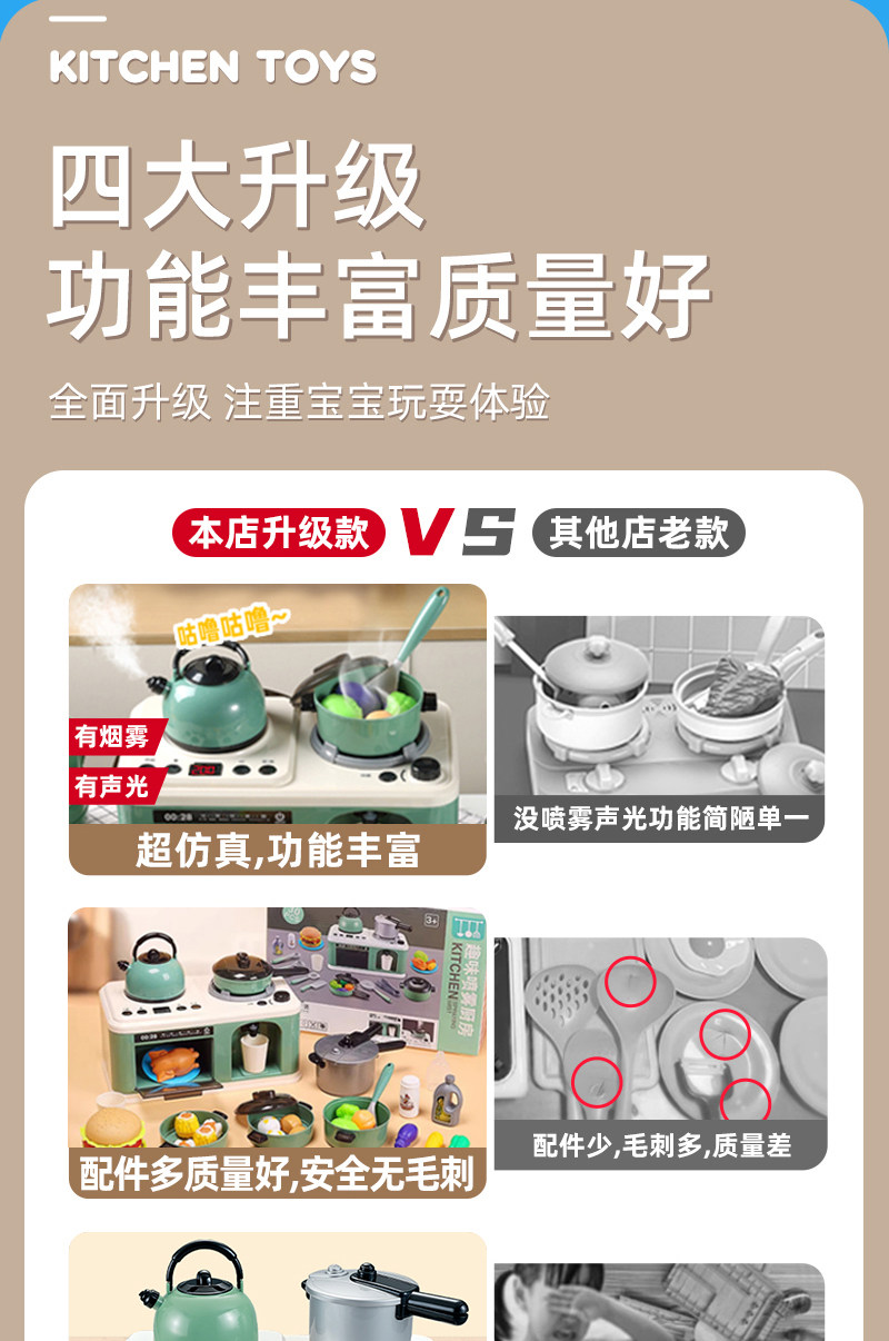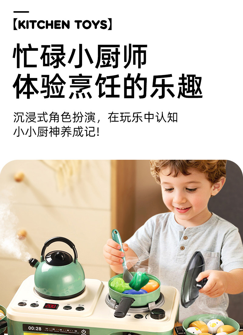 儿童厨房玩具男孩全套仿真做饭真煮饭过家家宝宝迷你炒菜厨具灶台