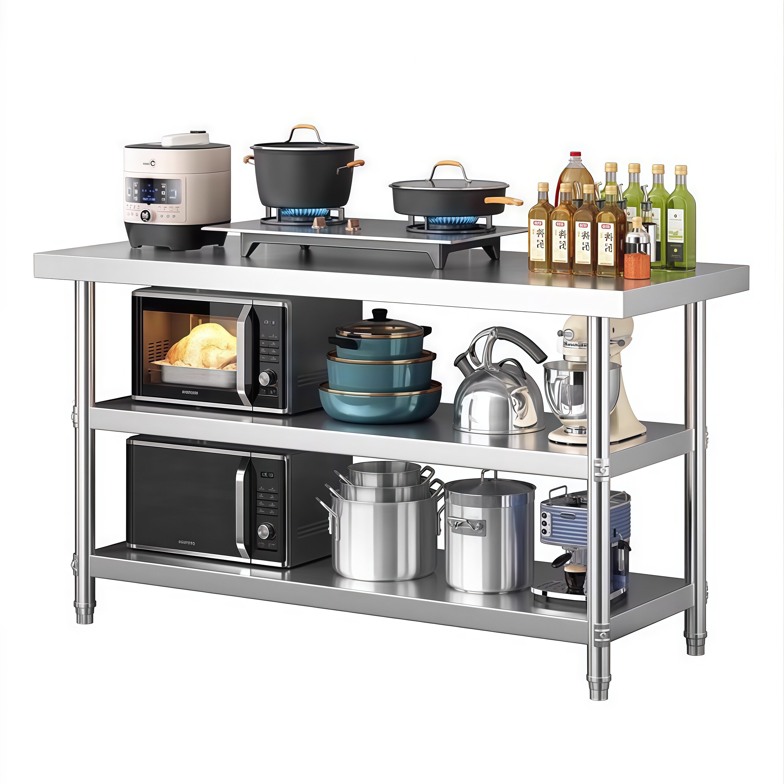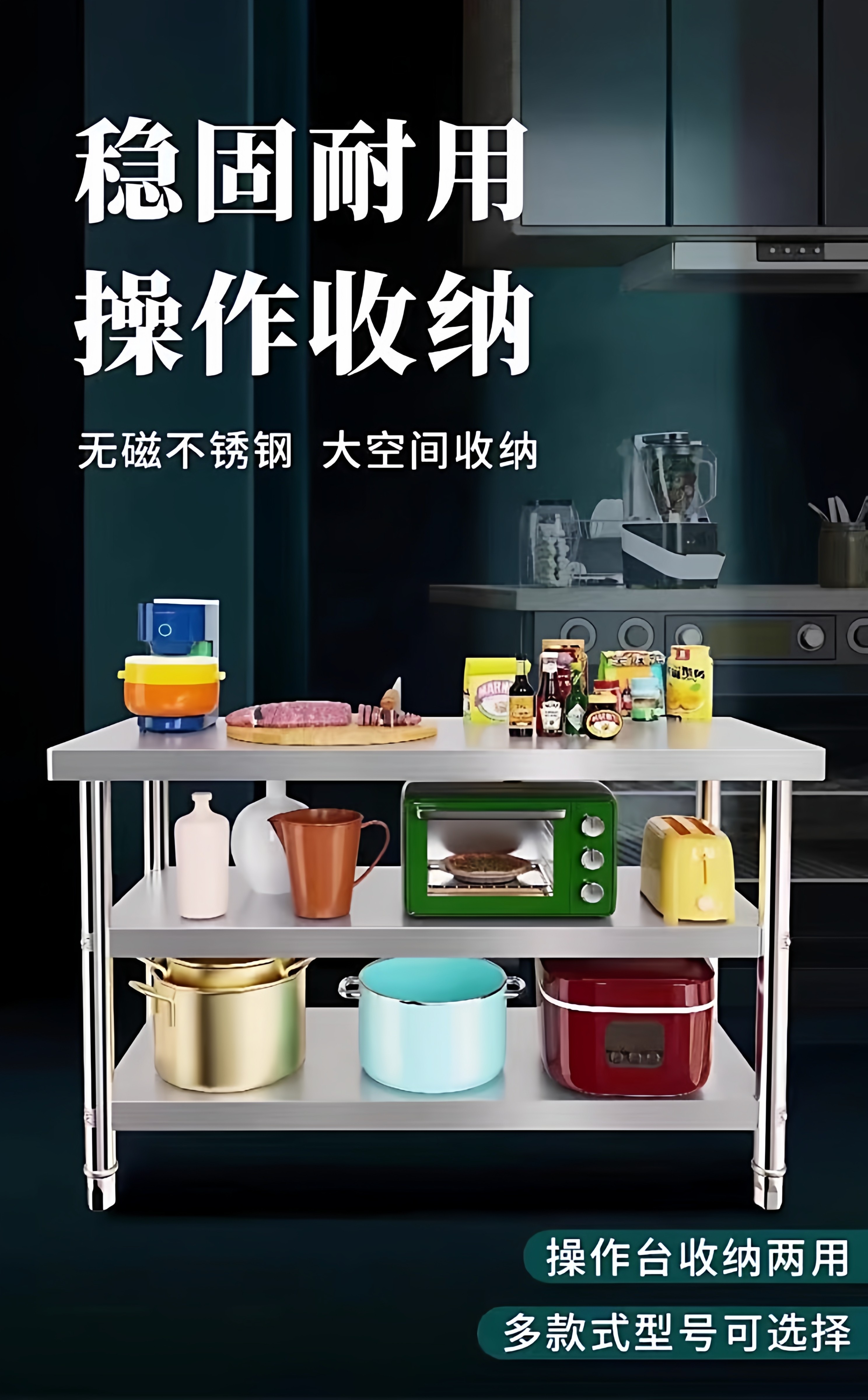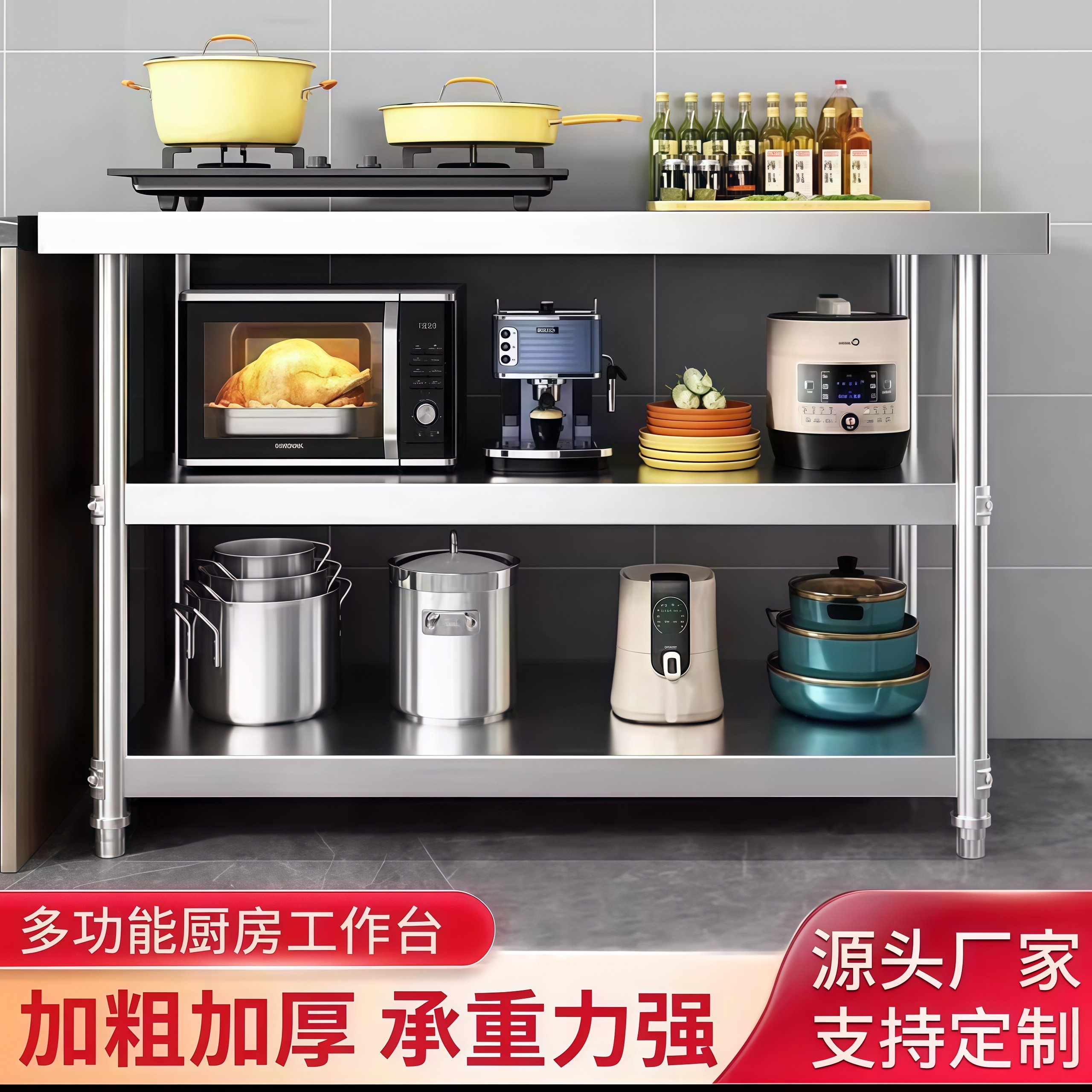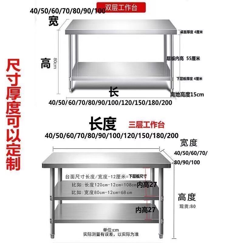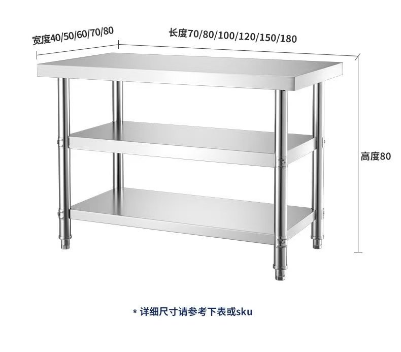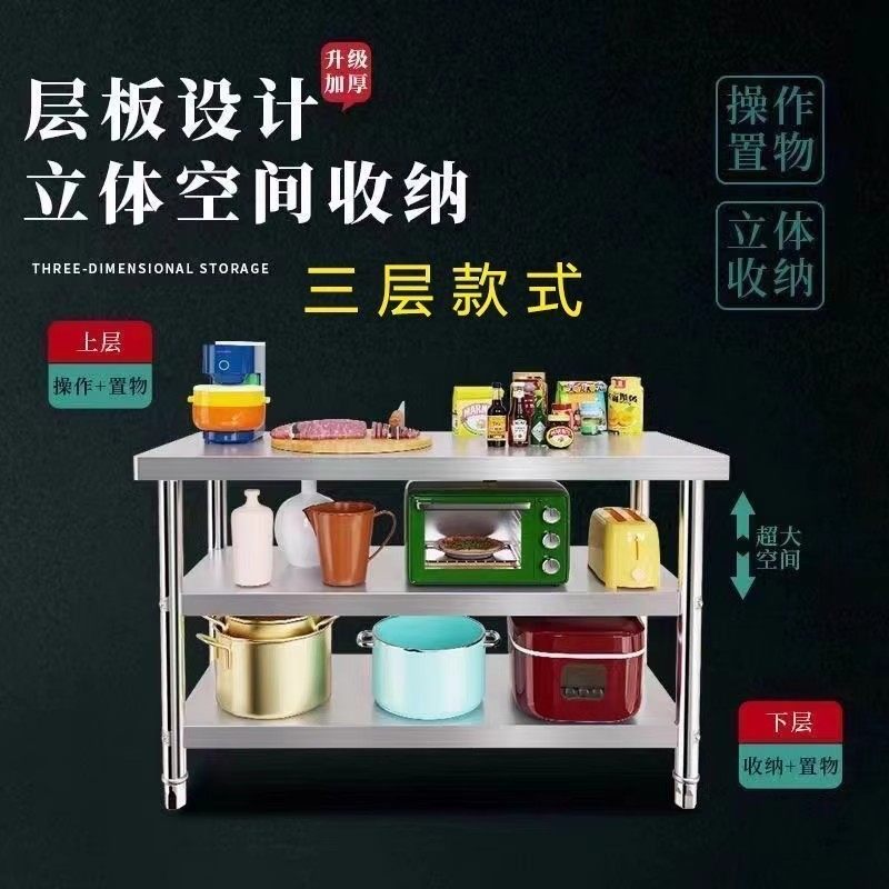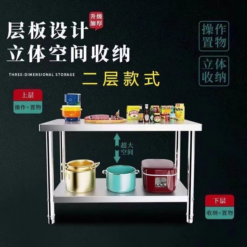 不锈钢工作台厨房置物架操作台双层置物架切菜桌子家用案板商用