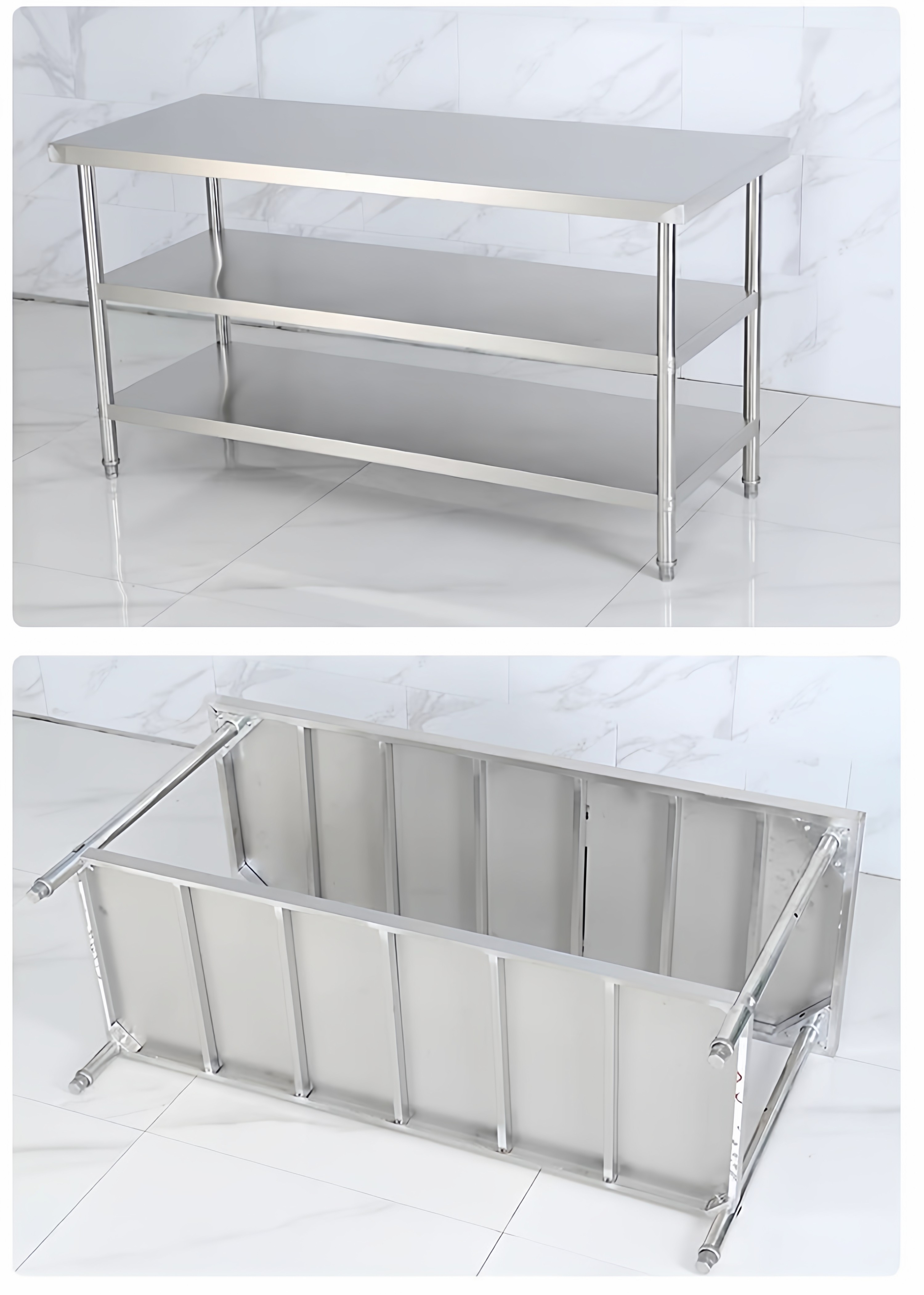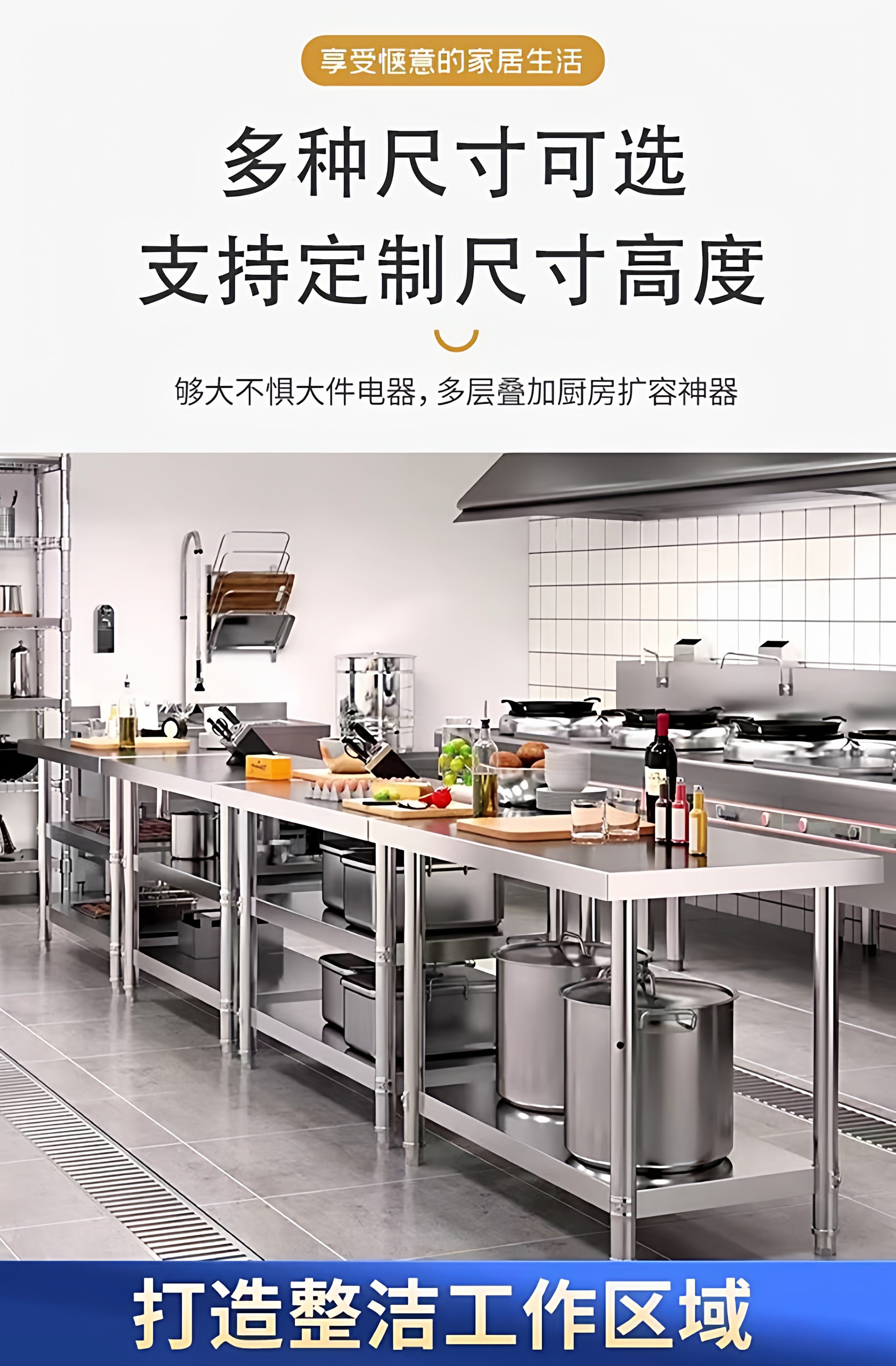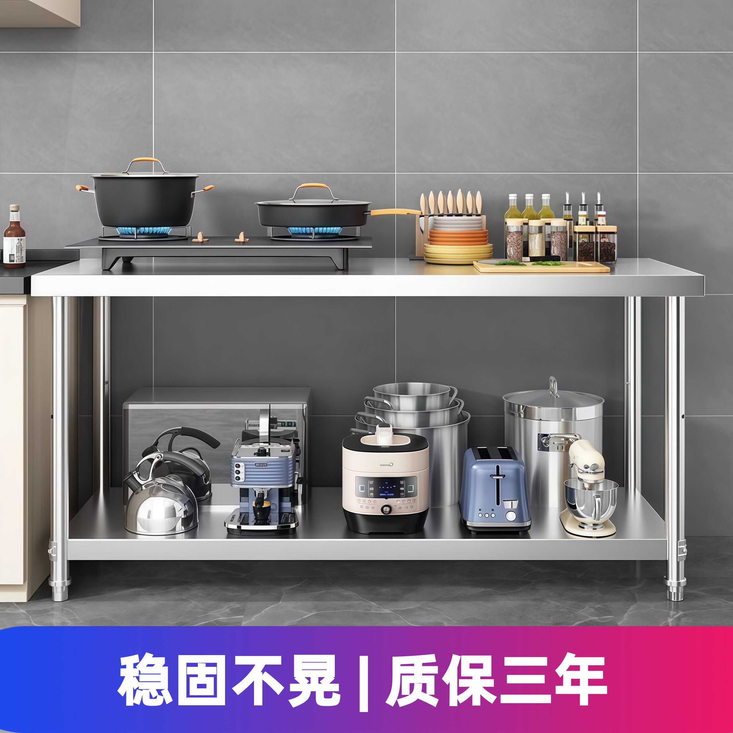HomeProducts不锈钢工作台厨房置物架操作台双层置物架切菜桌子家用案板商用