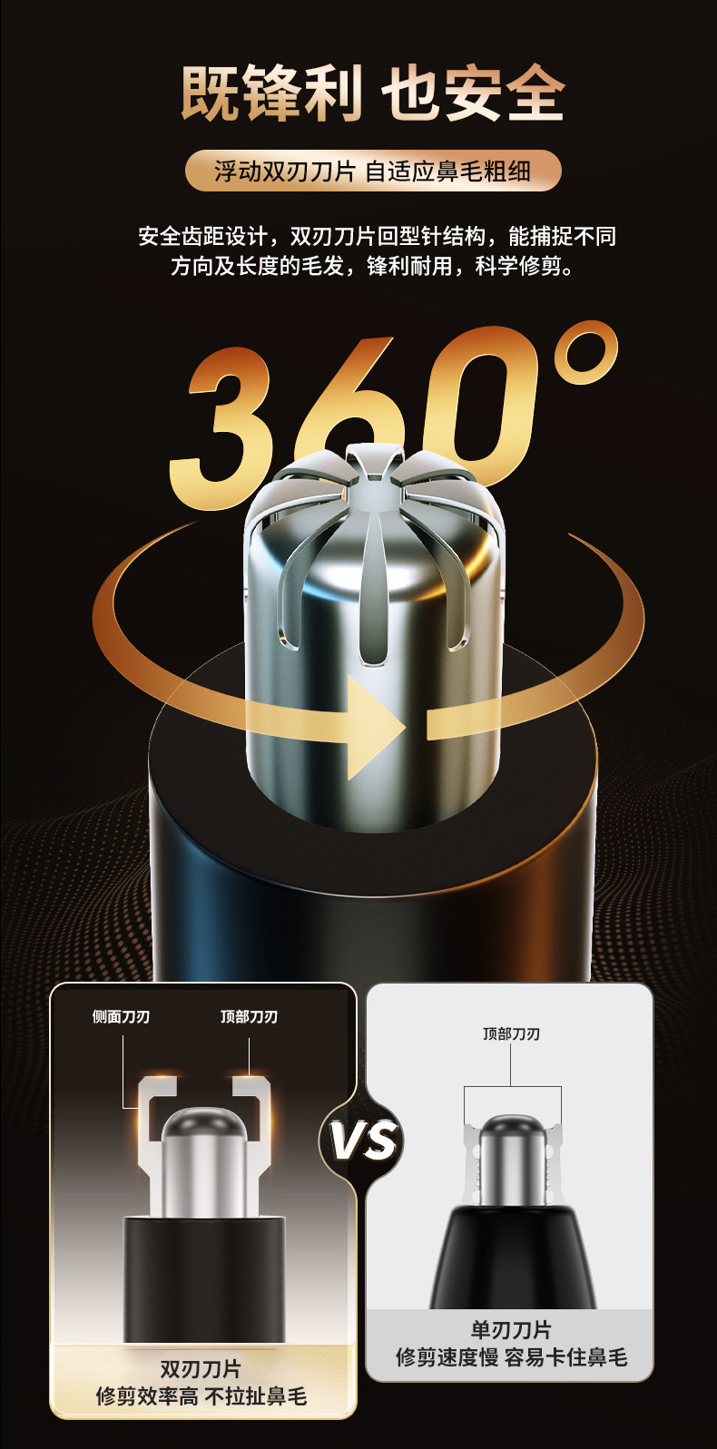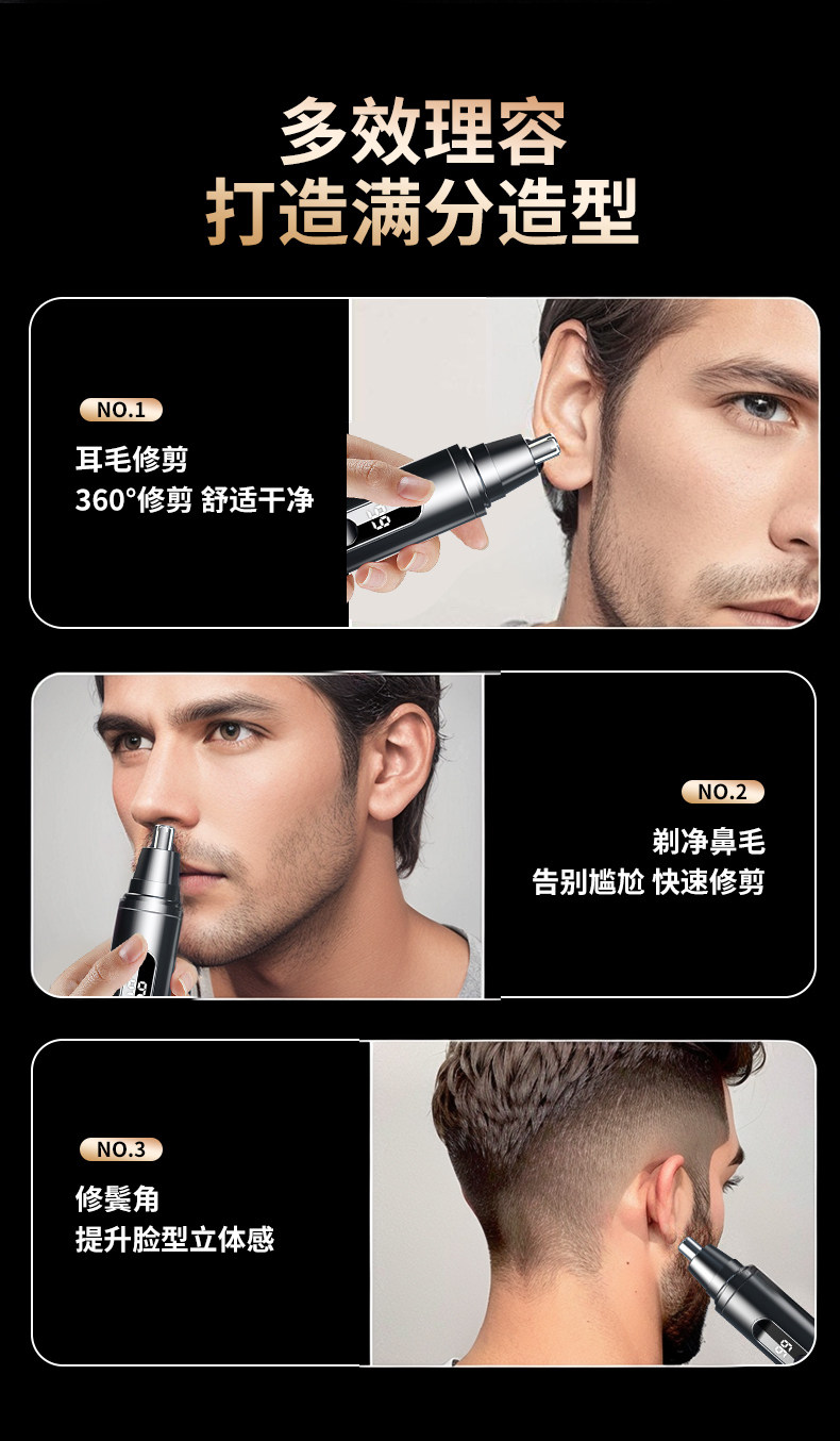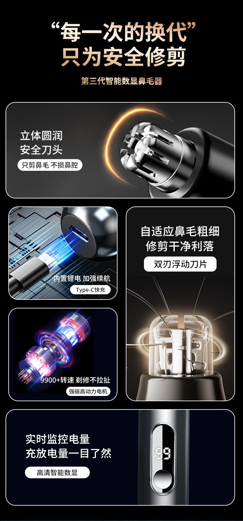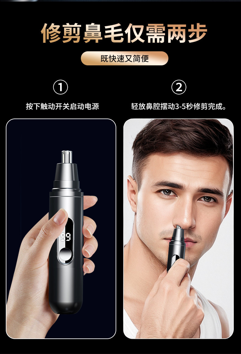 男士电动鼻毛修剪器智能数显不夹毛充电式静音剃鼻毛神器安全不疼