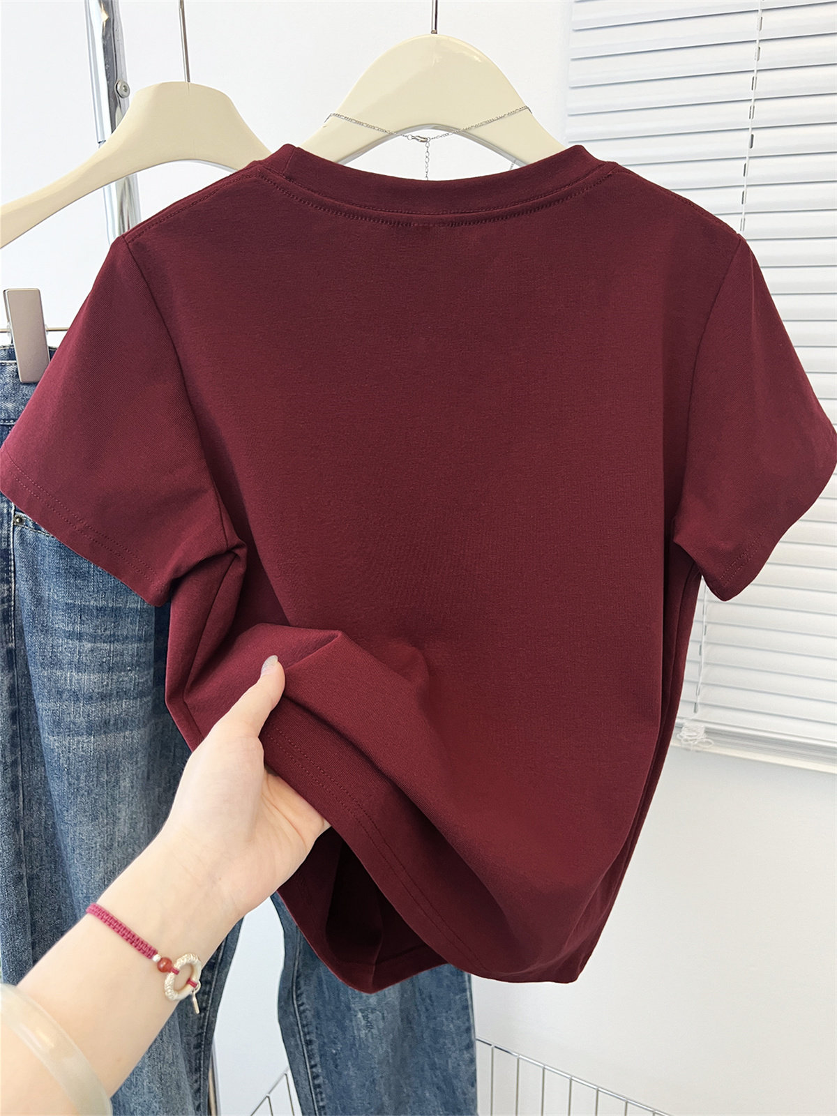 可爱卡通印花短袖t恤女2026新款夏季正肩设计感时尚酒红色上衣ins