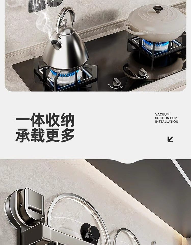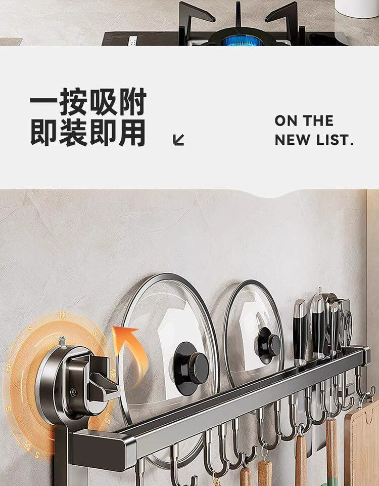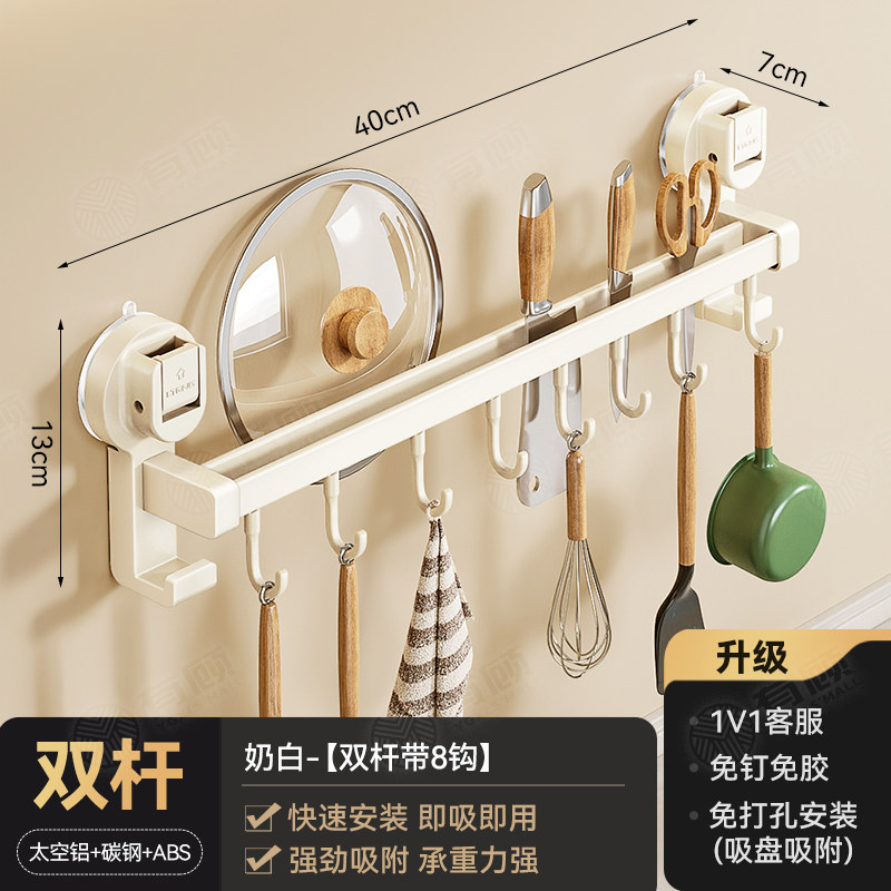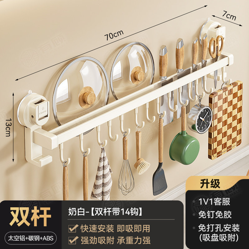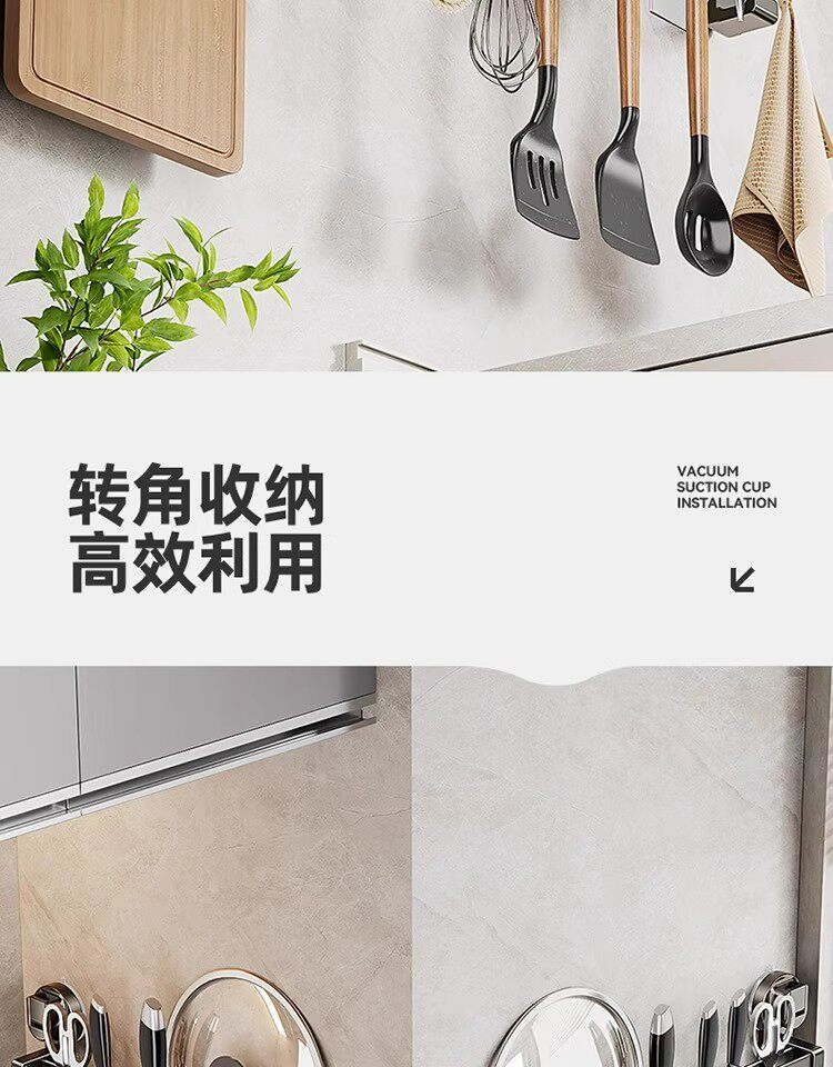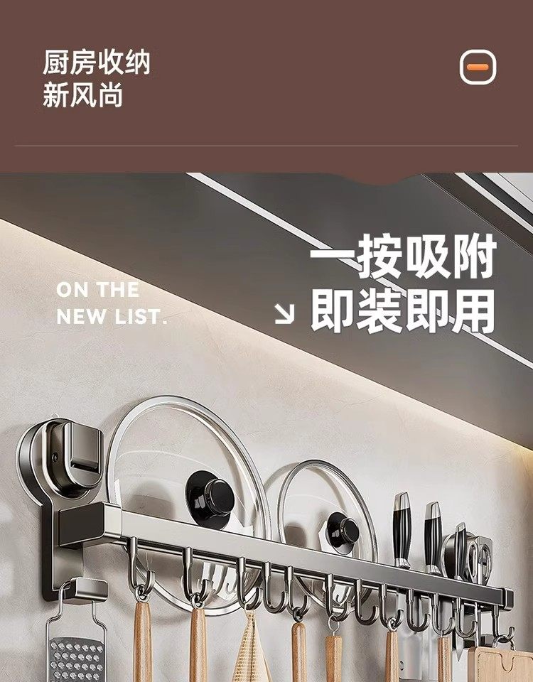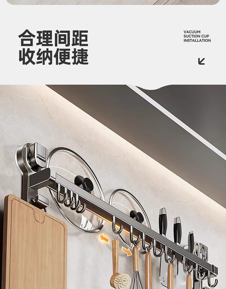 德国吸盘厨房挂钩免打孔多功能挂杆锅铲勺子刀具一体壁挂式收纳架