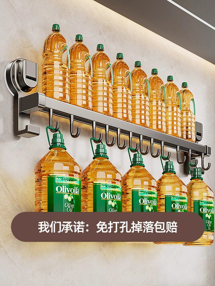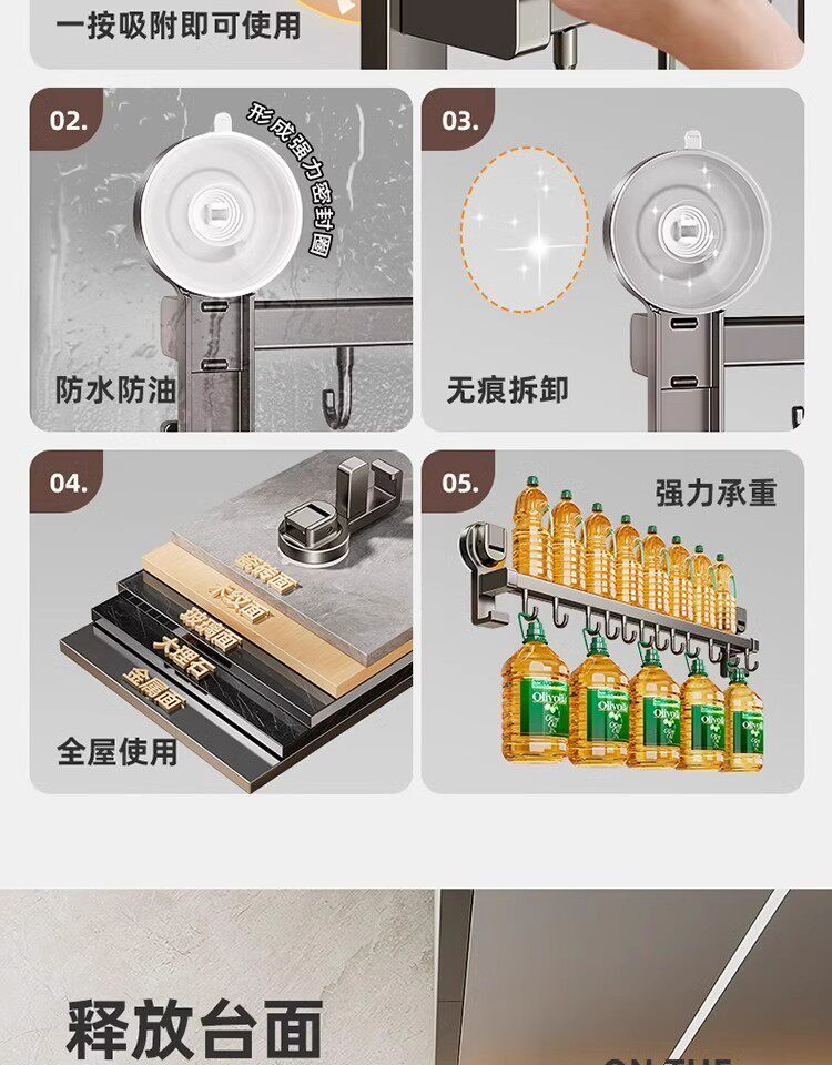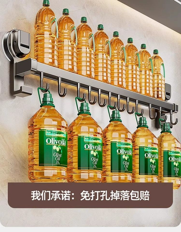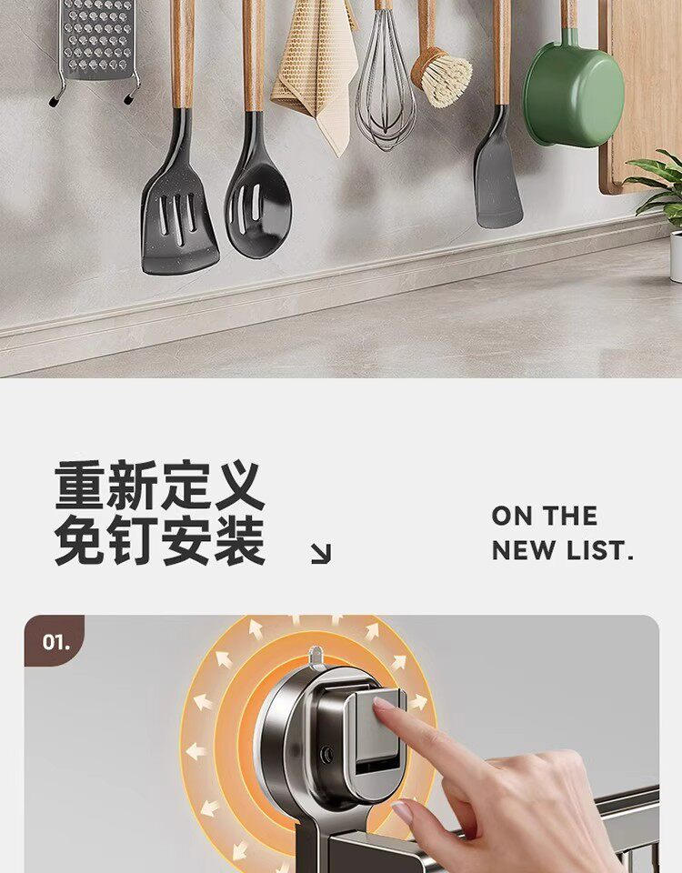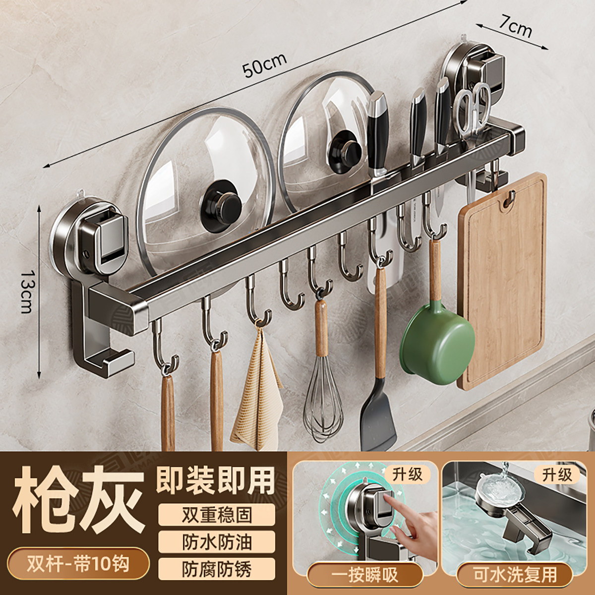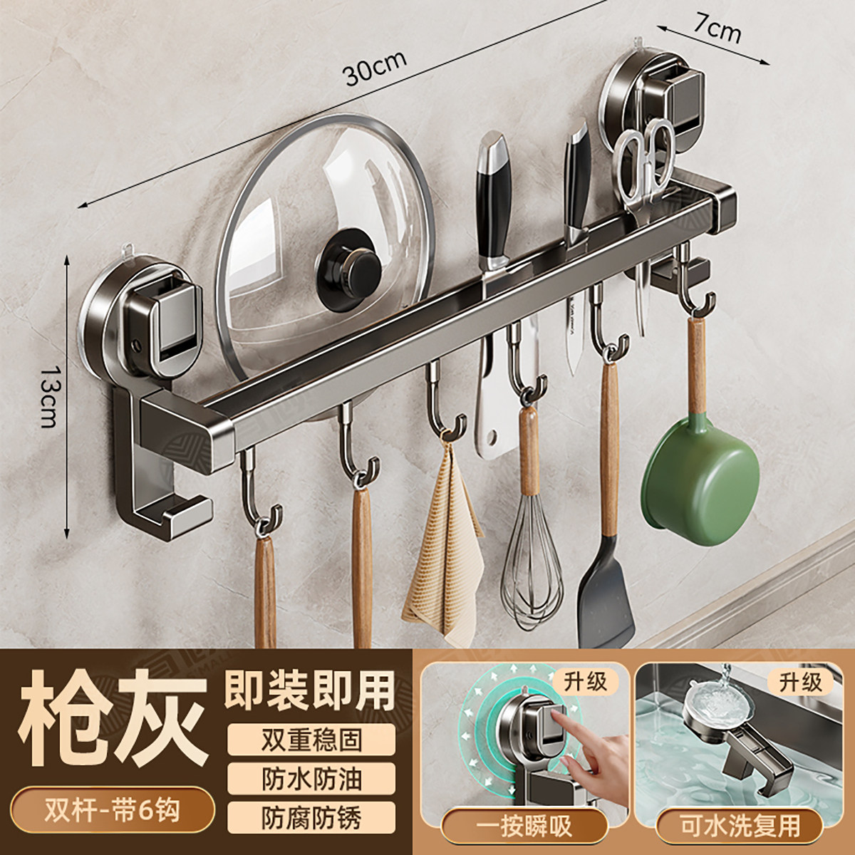 德国吸盘厨房挂钩免打孔多功能挂杆锅铲勺子刀具一体壁挂式收纳架