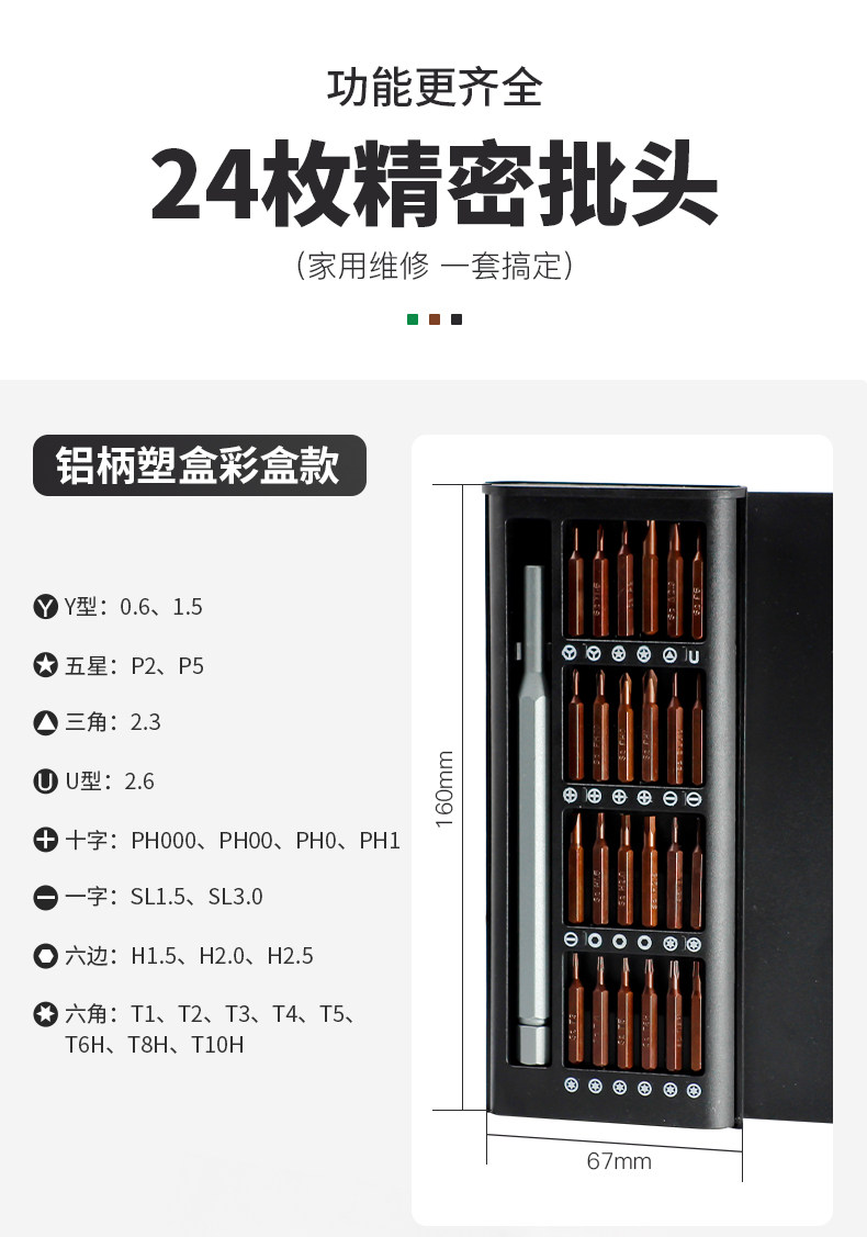 24合一螺丝刀套装电脑手机耳机维修精密工具十字一字六角小批头