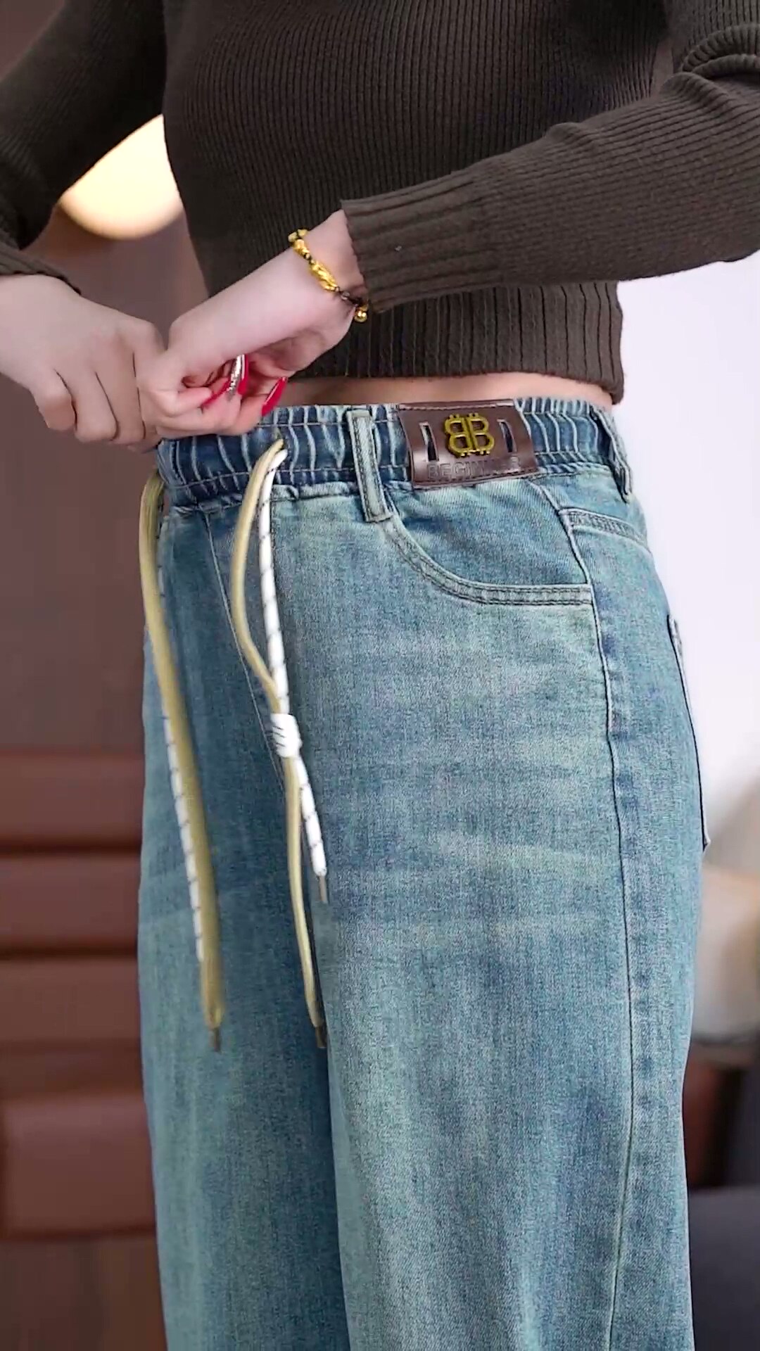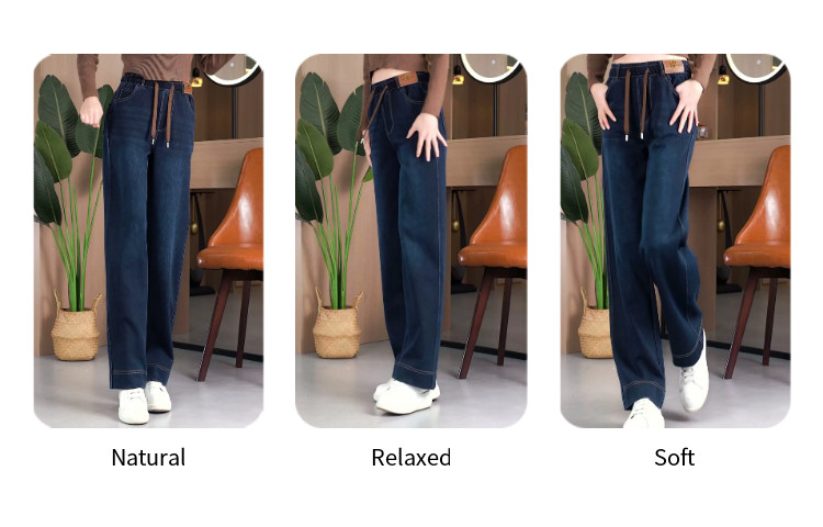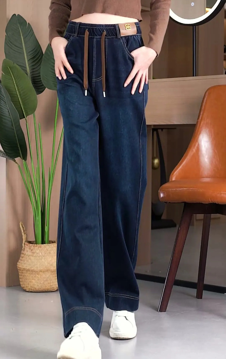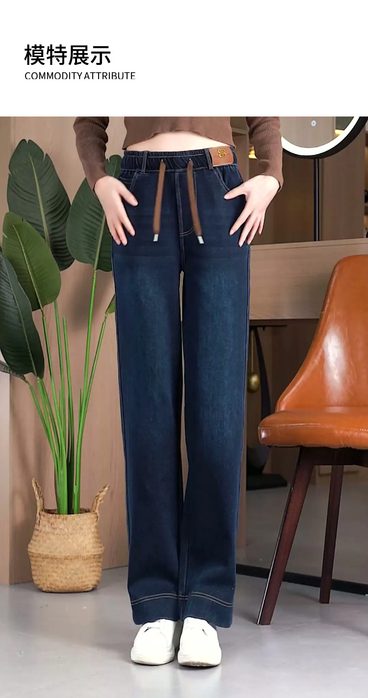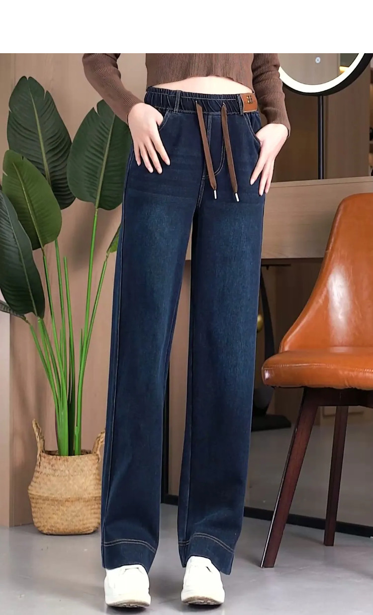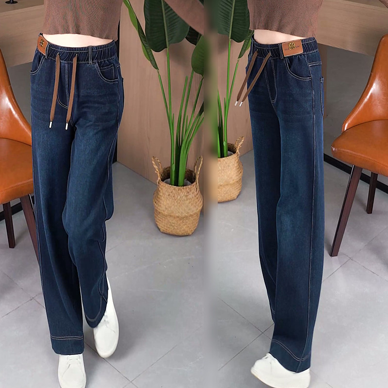 HomeProducts窄版复古蓝阔腿裤女春秋装高腰弹力牛仔裤2026新款宽松直筒妈妈裤