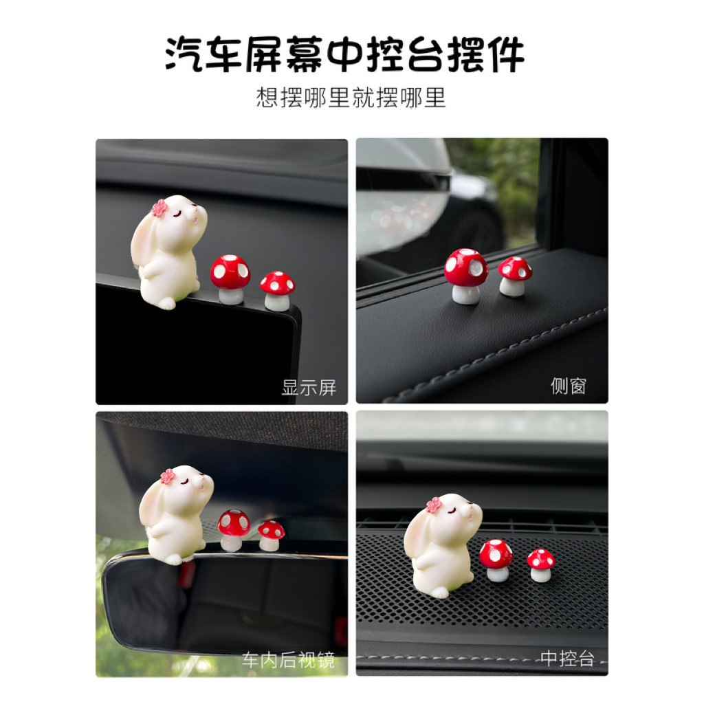 小兔子蘑菇汽车摆件中控台屏幕趴趴车载装饰用品可爱女电动车配饰