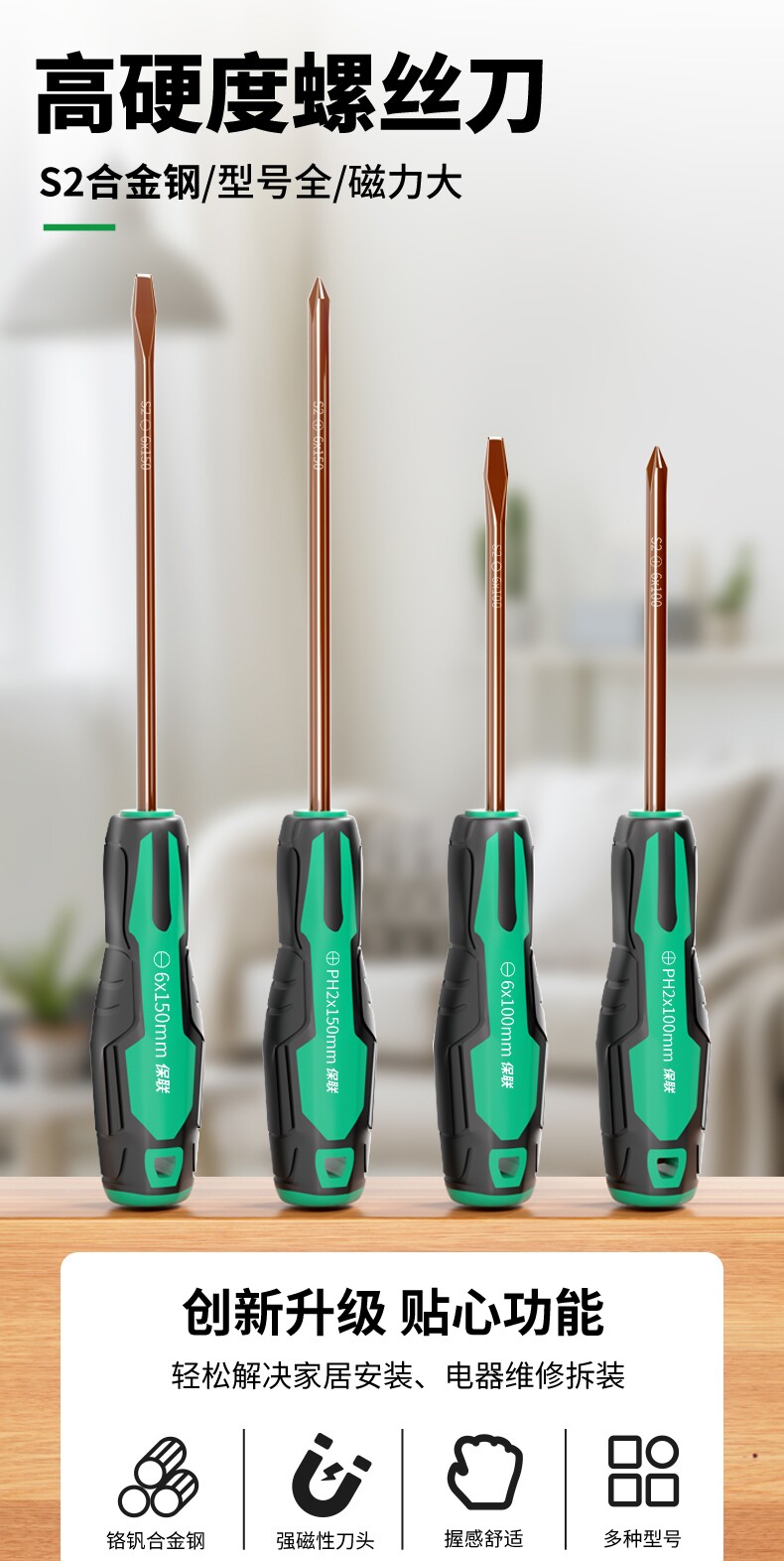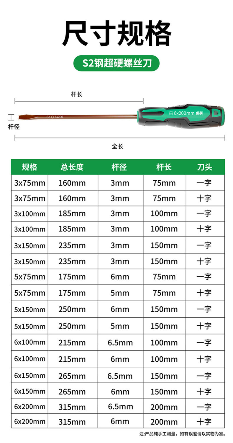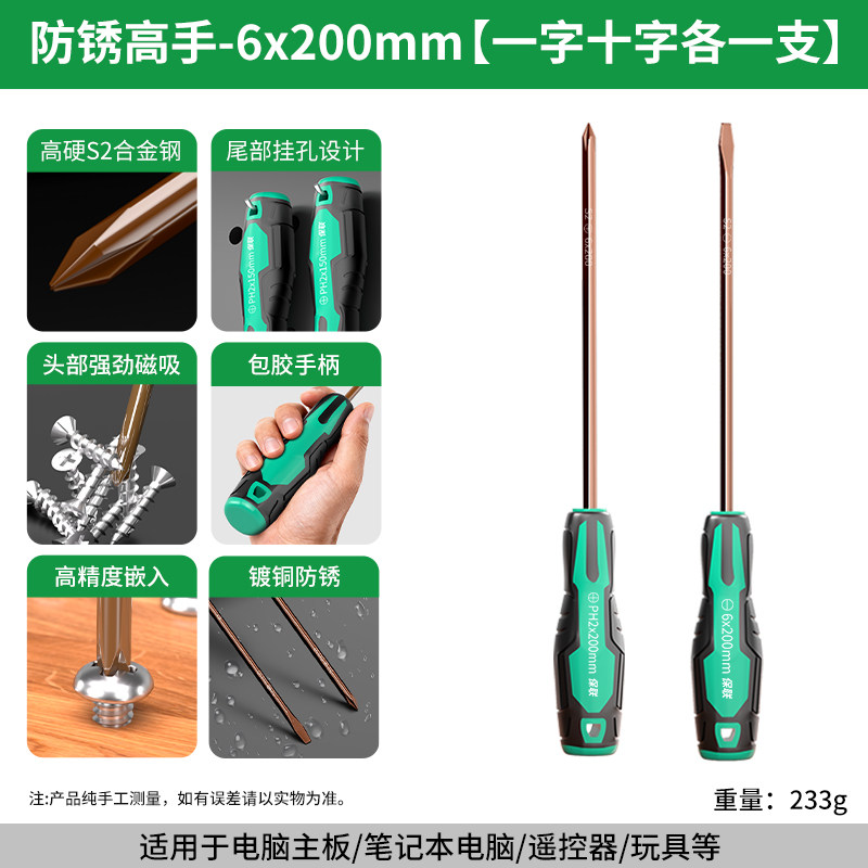 螺丝刀S2合金钢超硬高扭力强磁十字一字螺丝批多功能家电维修工具