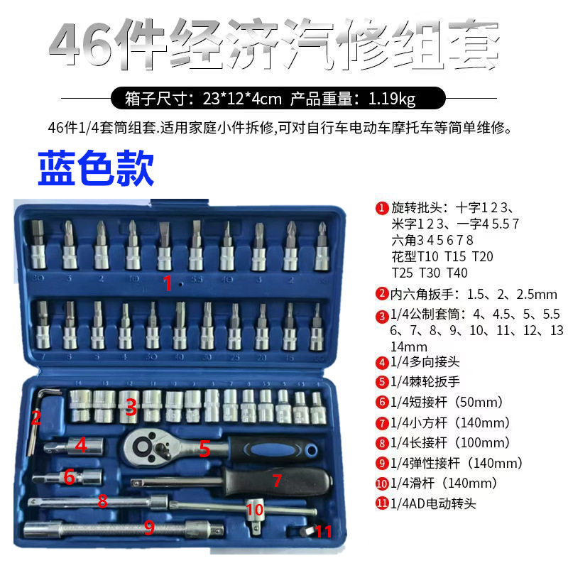 新款46件套筒扳手工具箱汽修组扳子小飞棘轮扳手套装家用维修工具