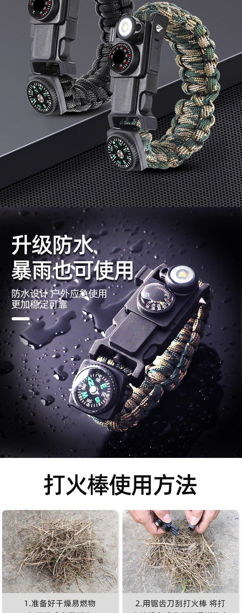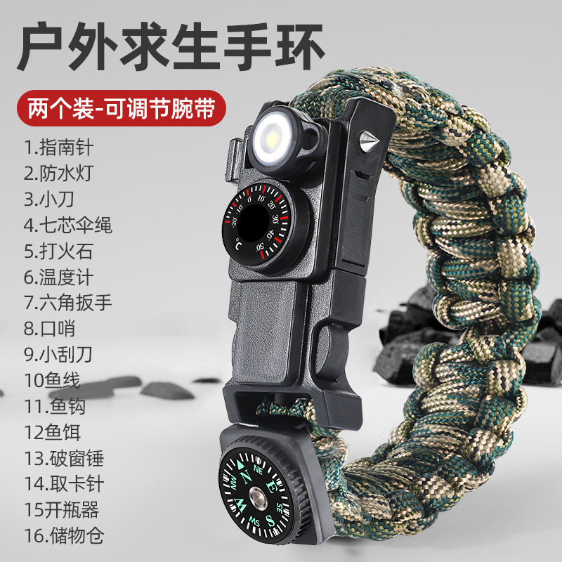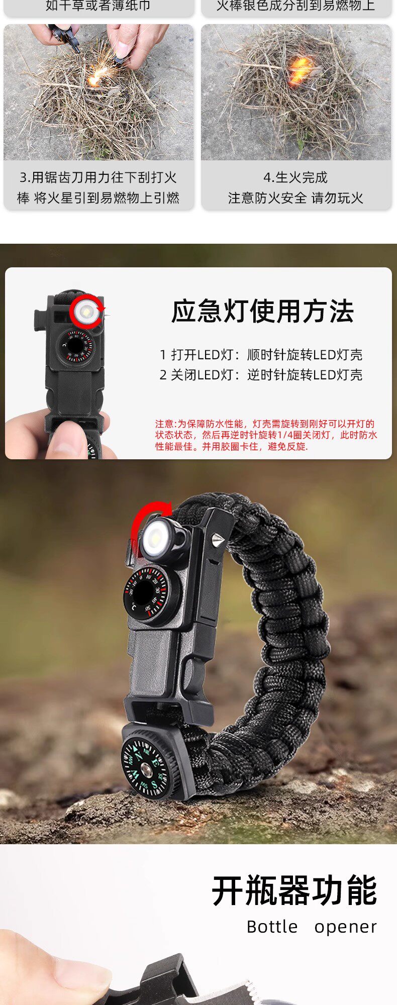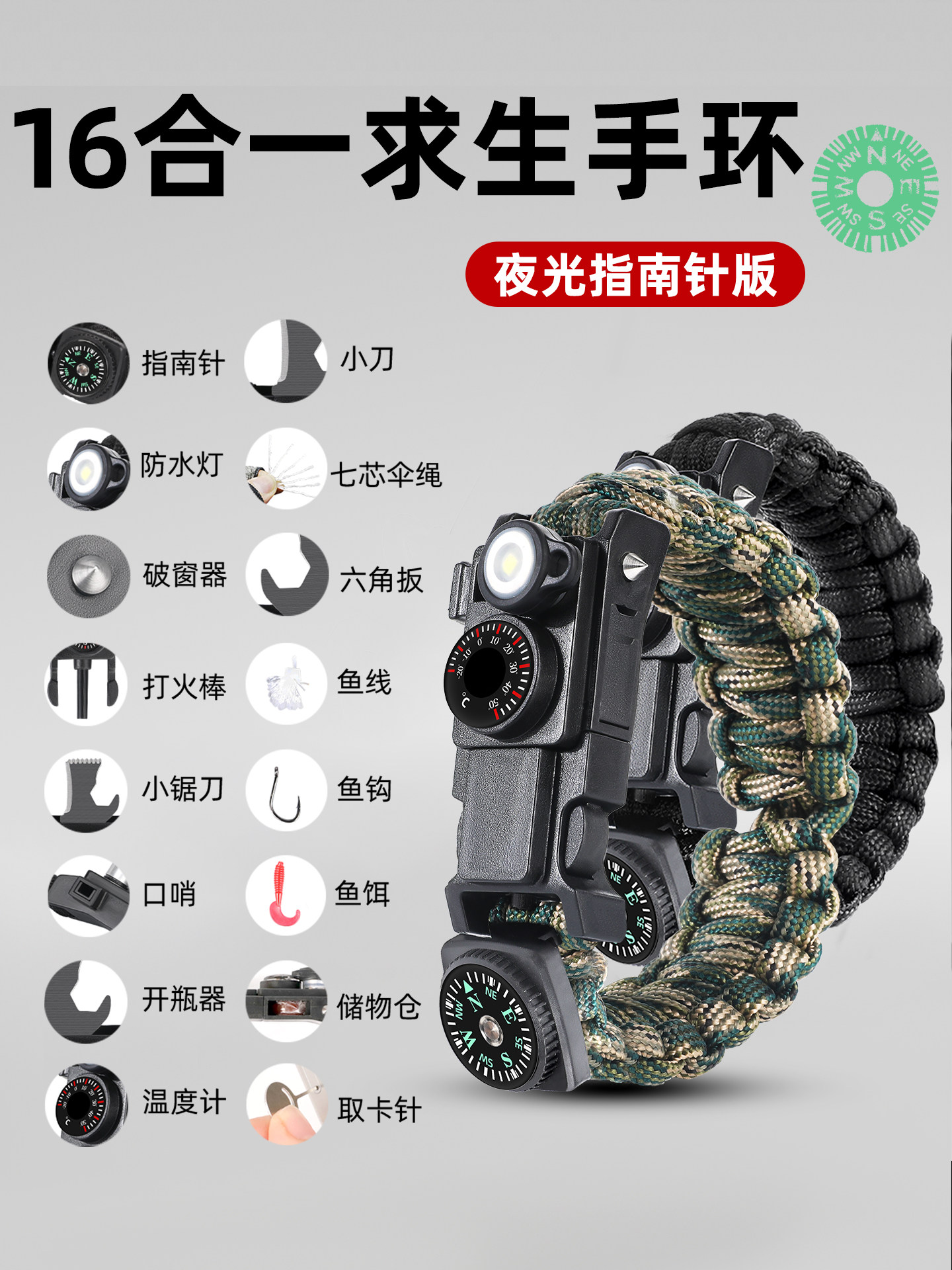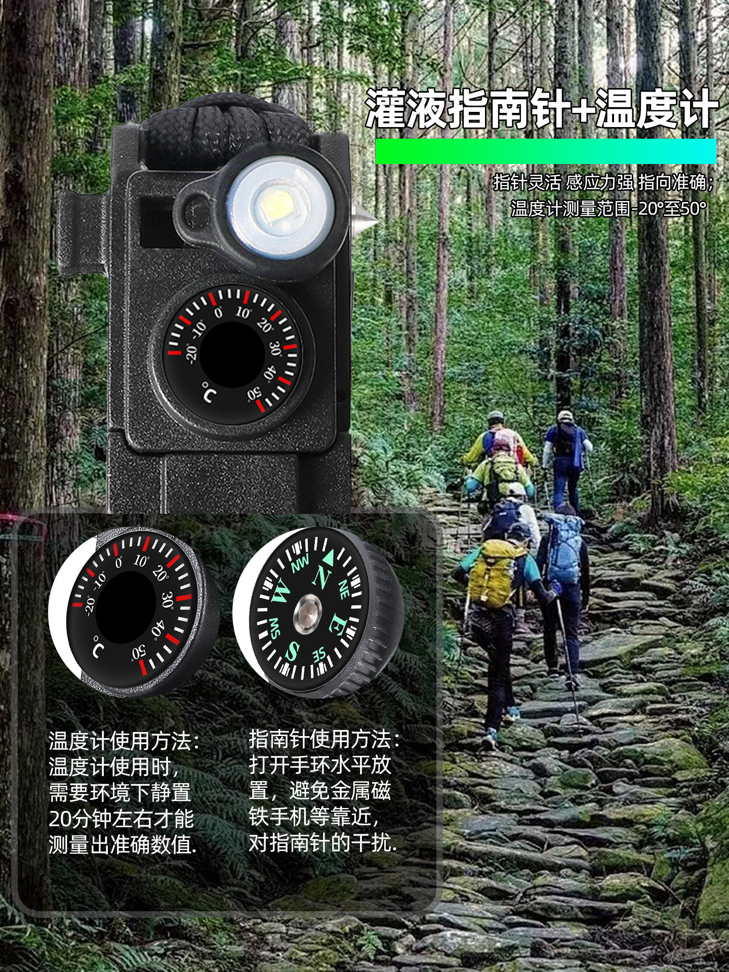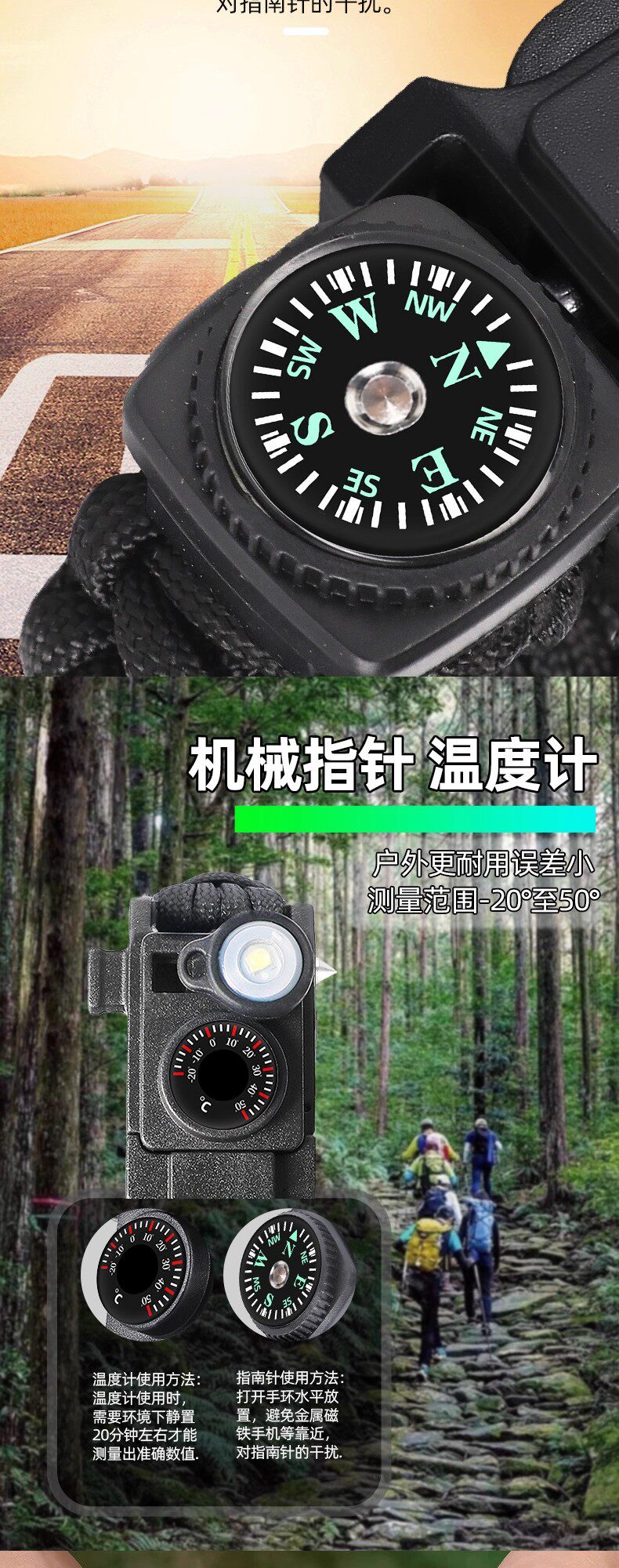 求生手环合一户外生存指南针装备多功能野外用徒步随身应急小工具