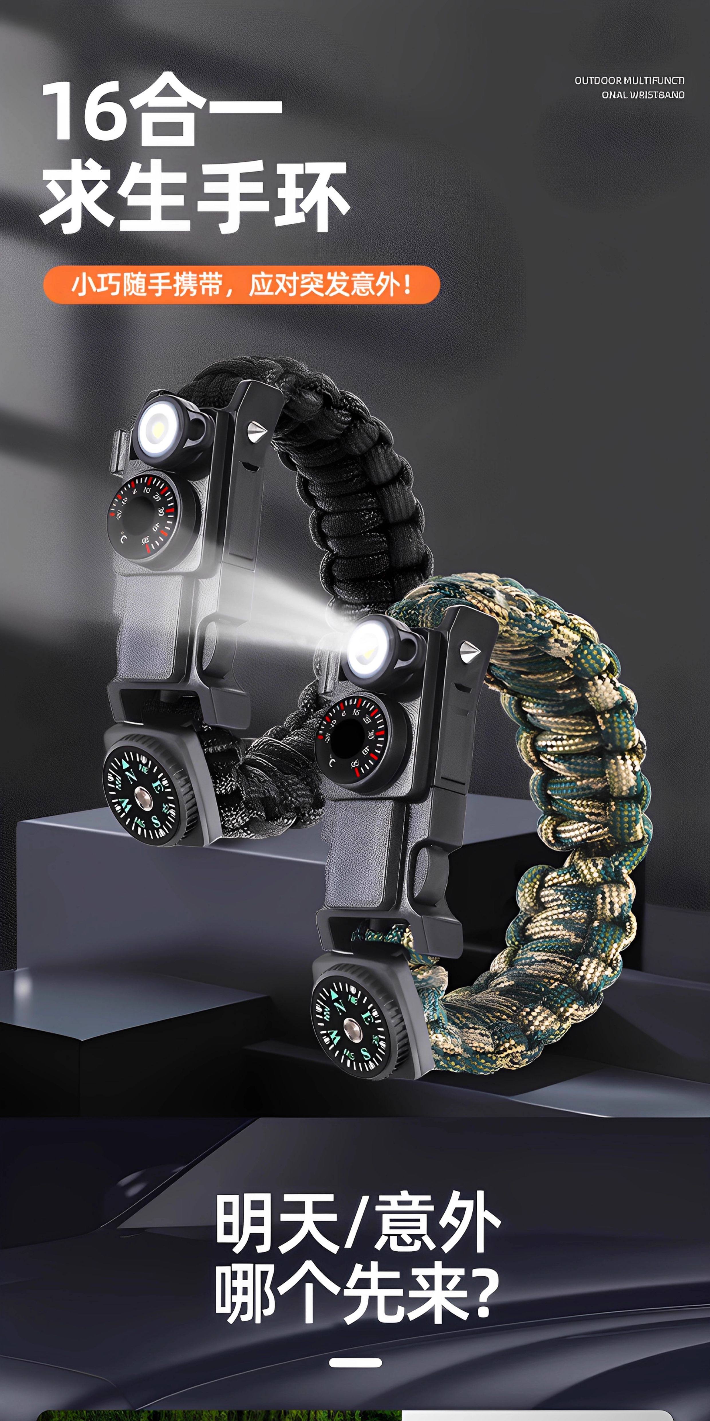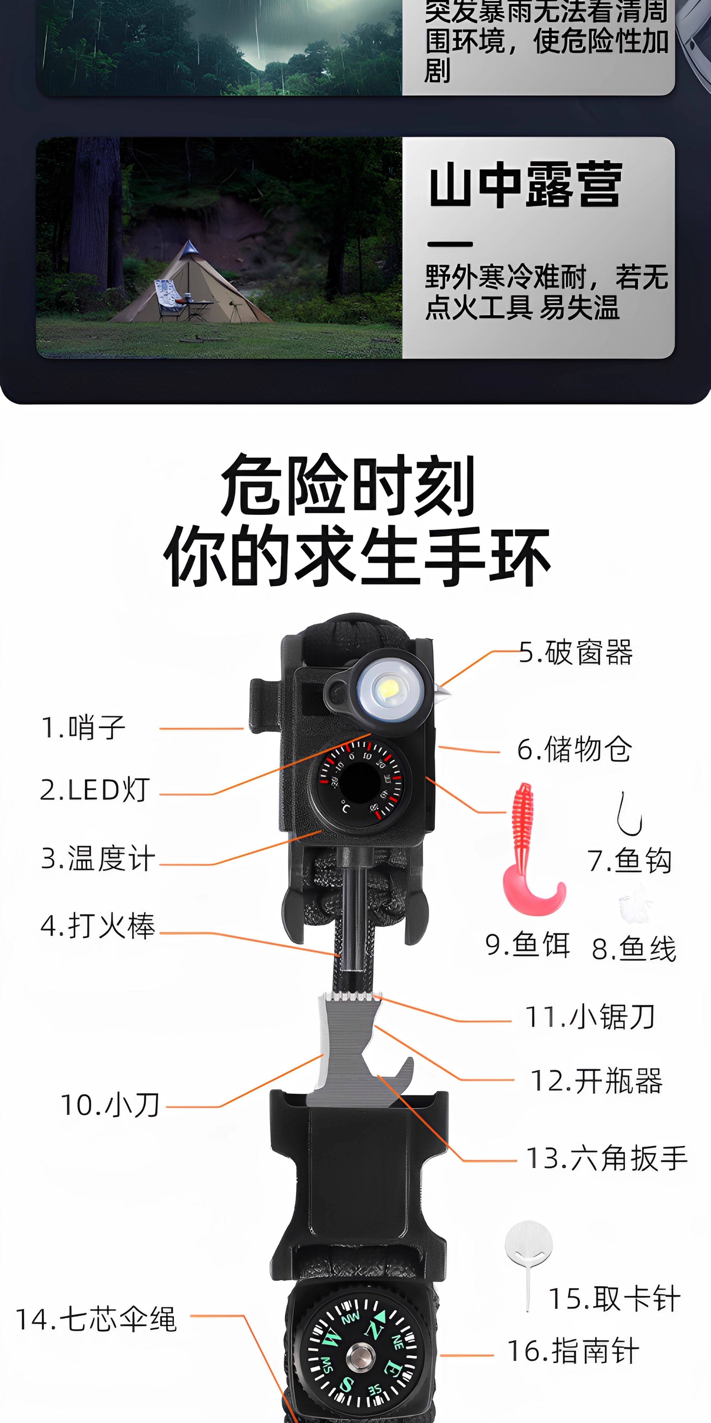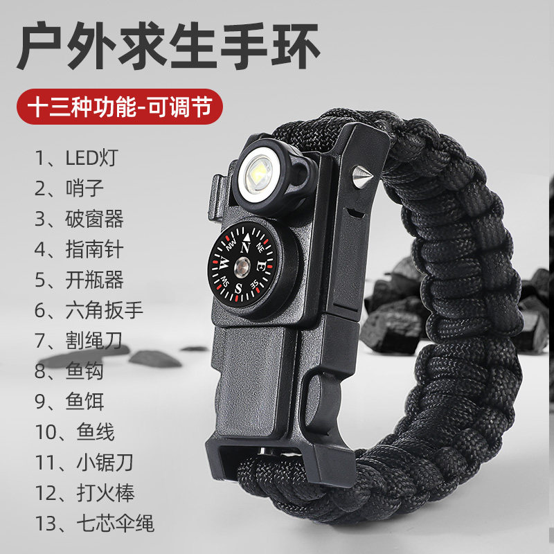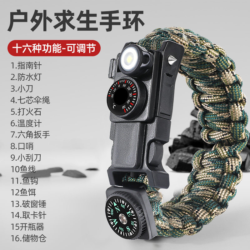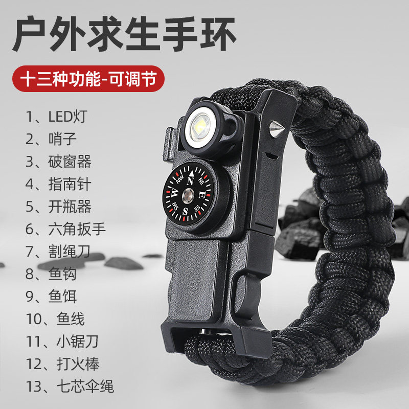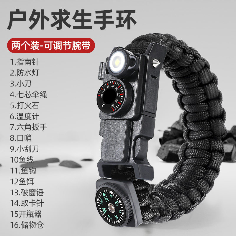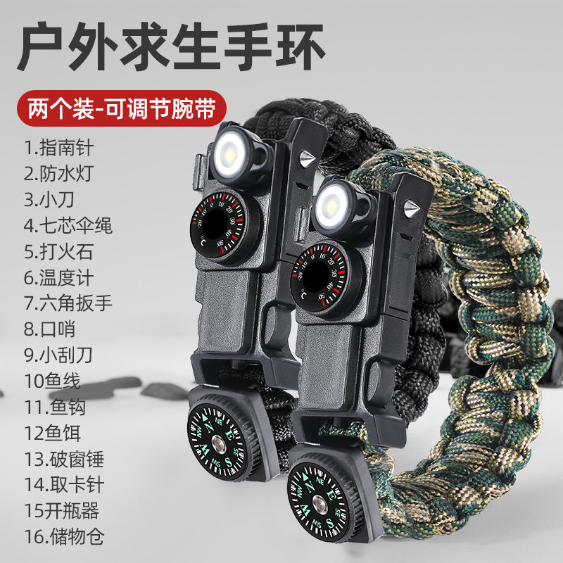 求生手环合一户外生存指南针装备多功能野外用徒步随身应急小工具
