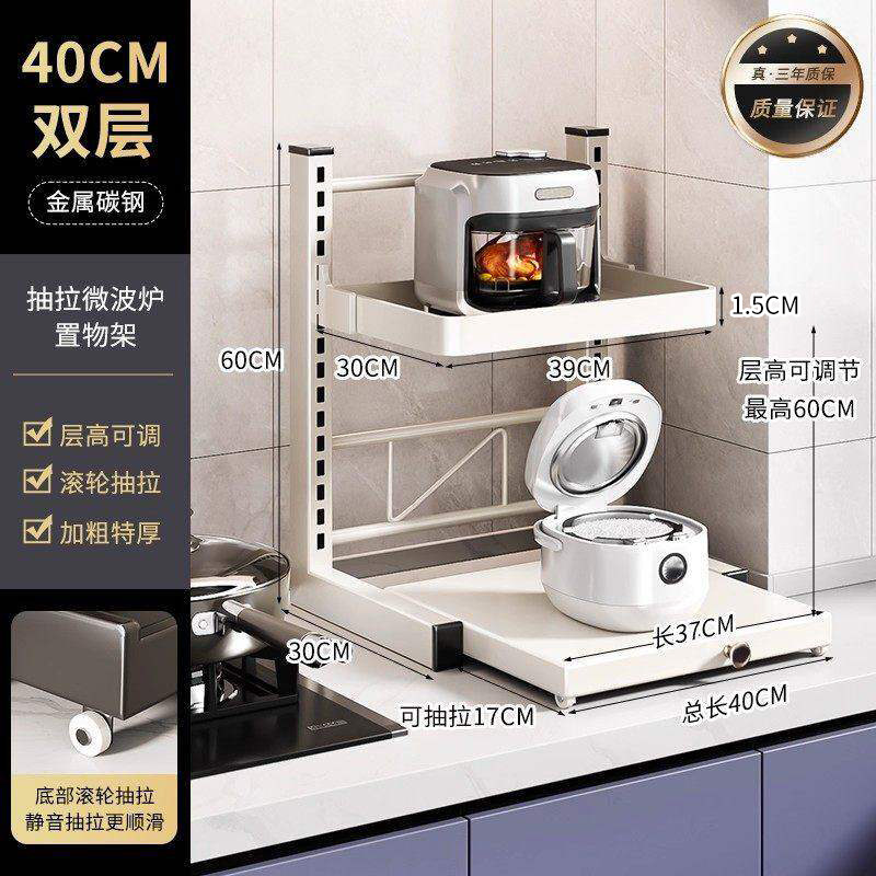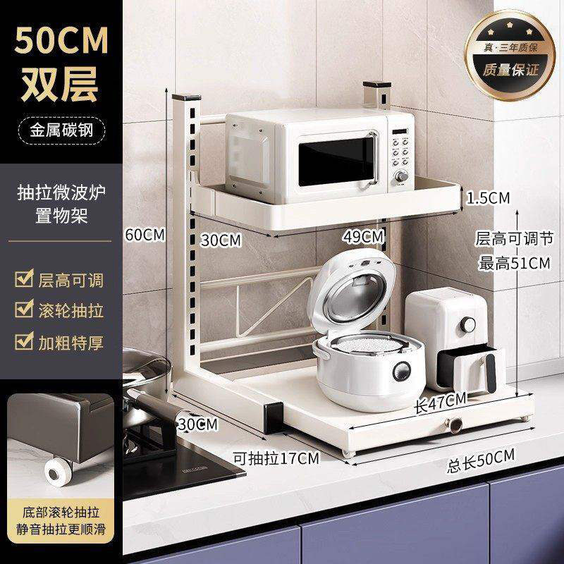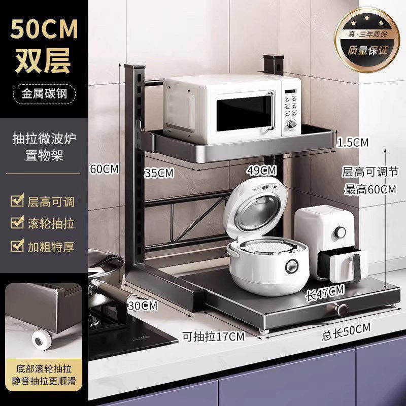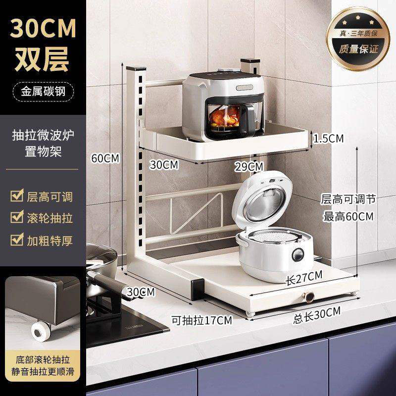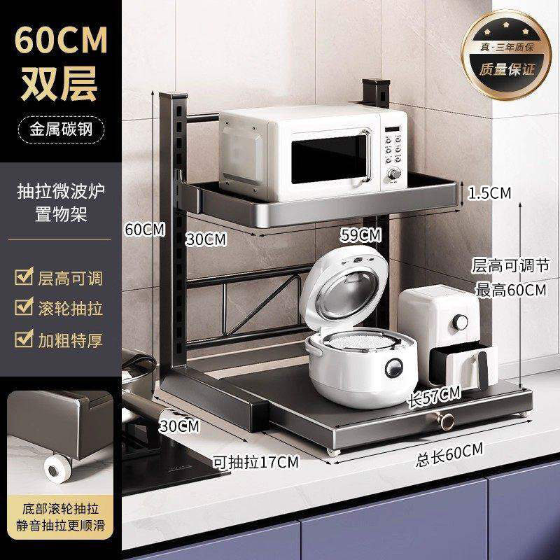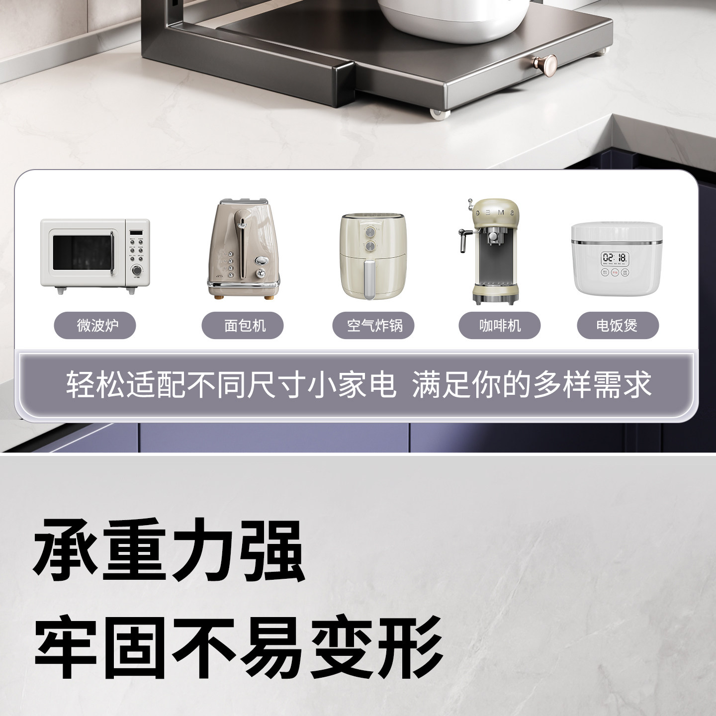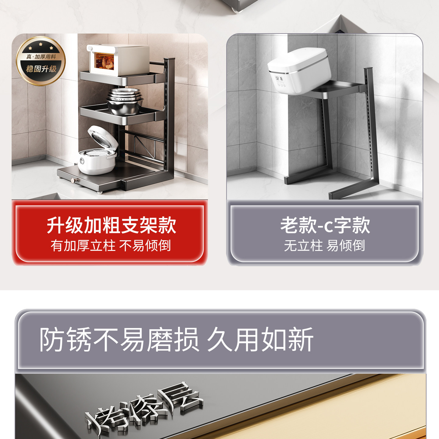 可抽拉厨房电饭煲置物架多功能家用微波炉收纳架多层台面烤箱架子