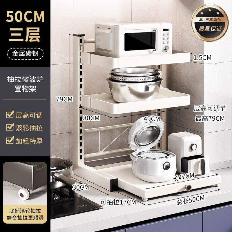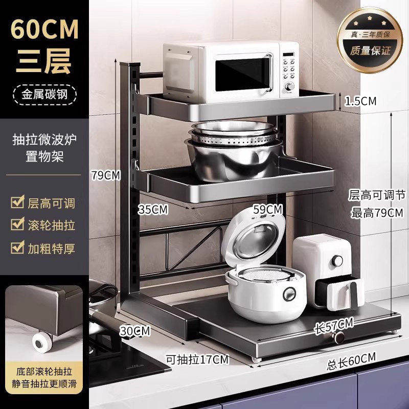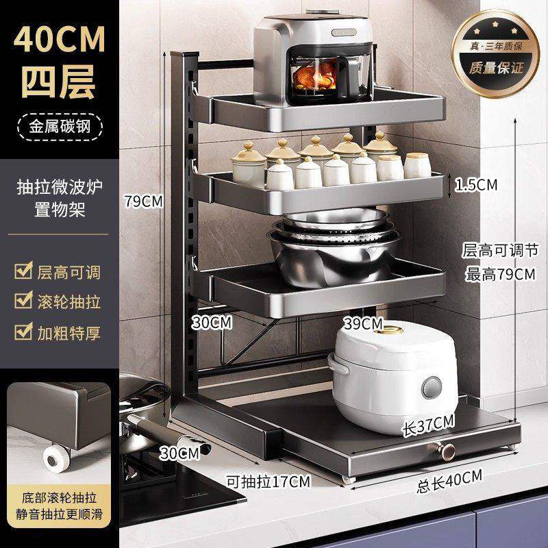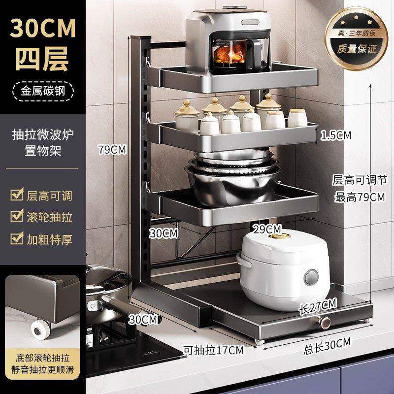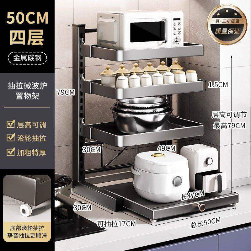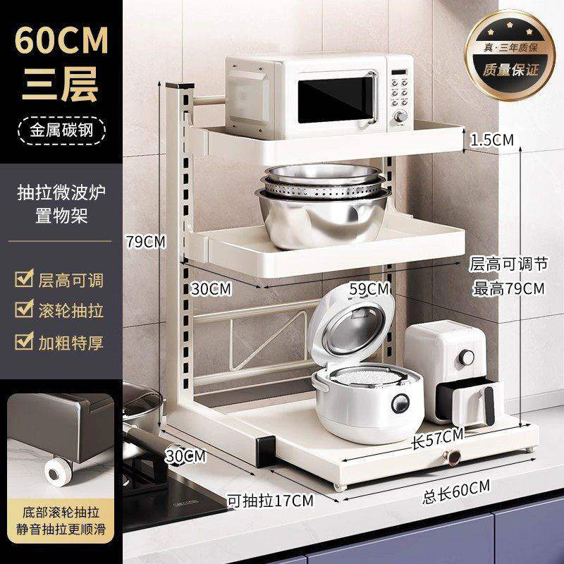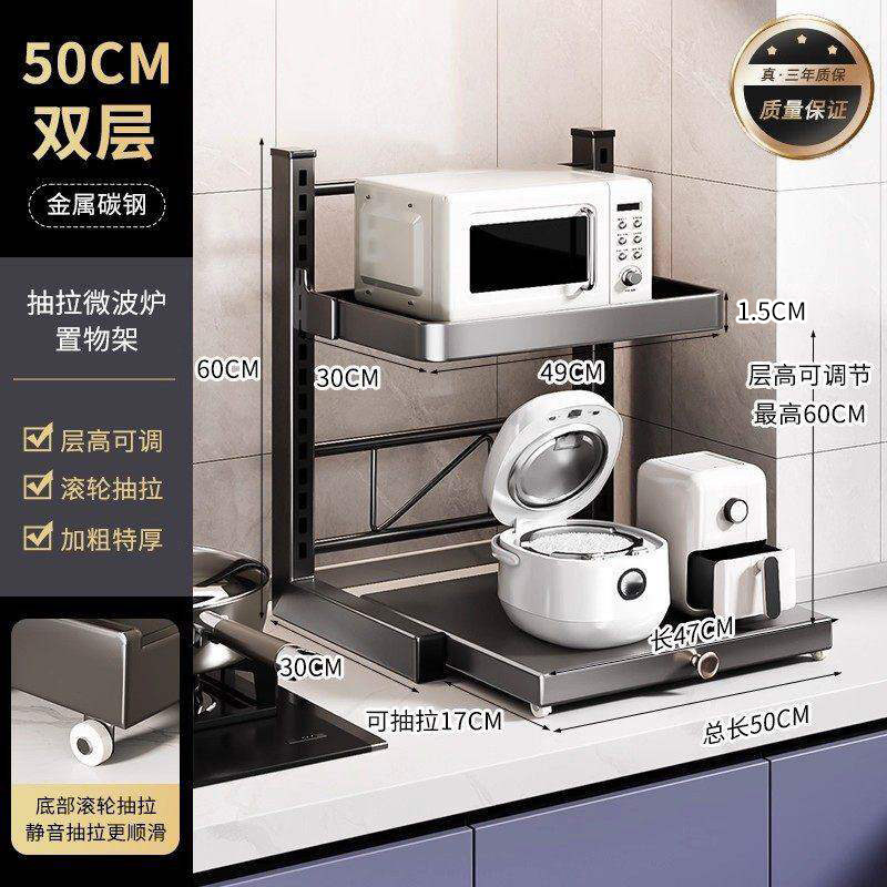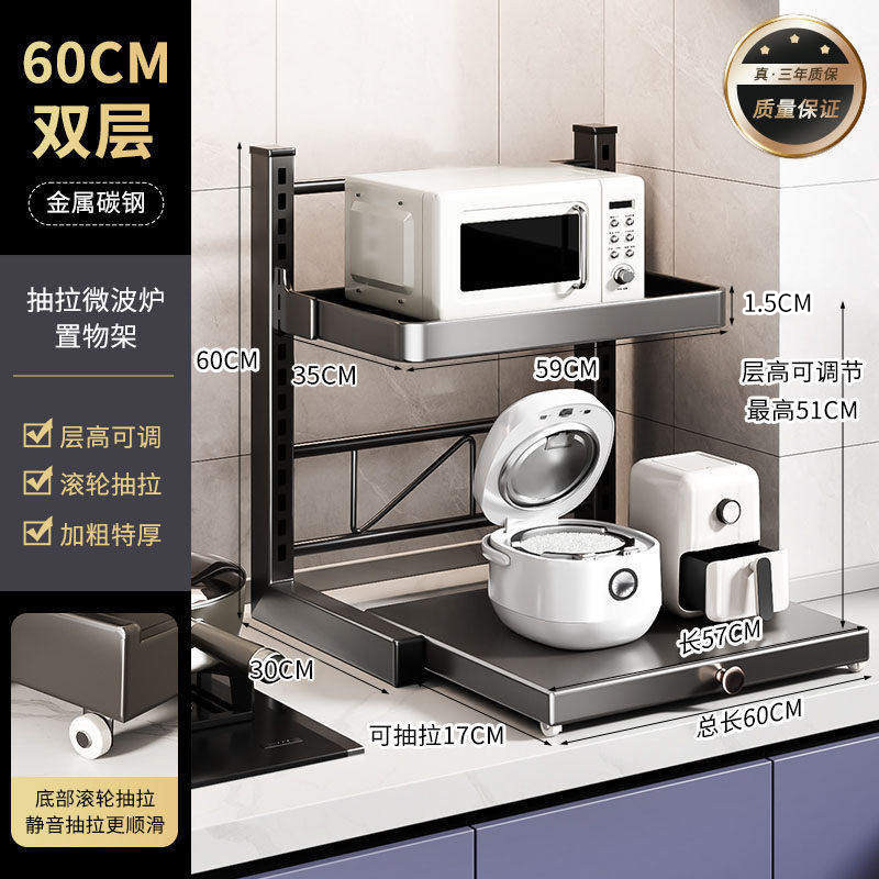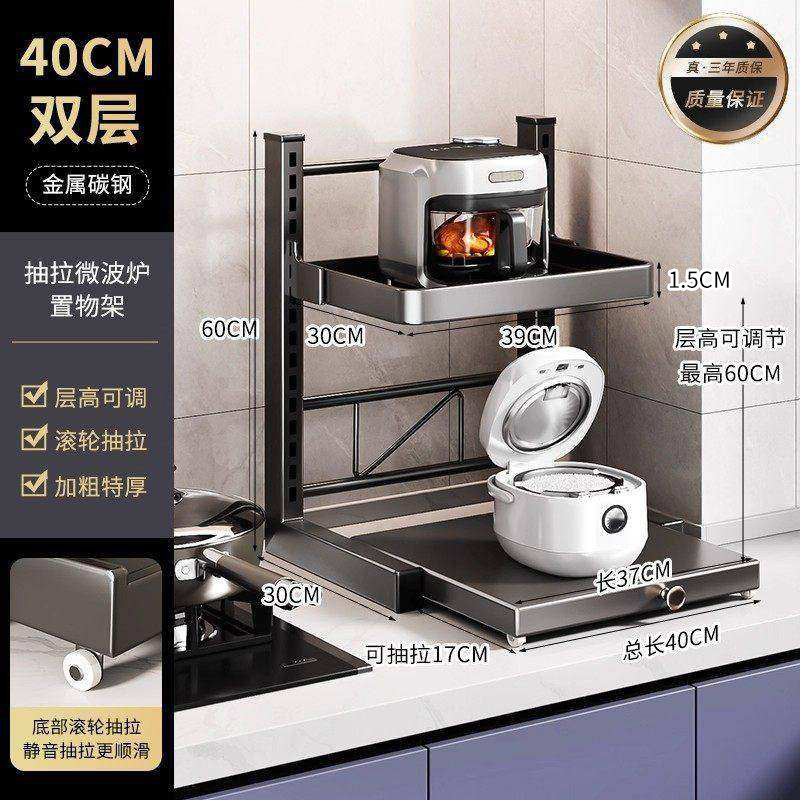 可抽拉厨房电饭煲置物架多功能家用微波炉收纳架多层台面烤箱架子