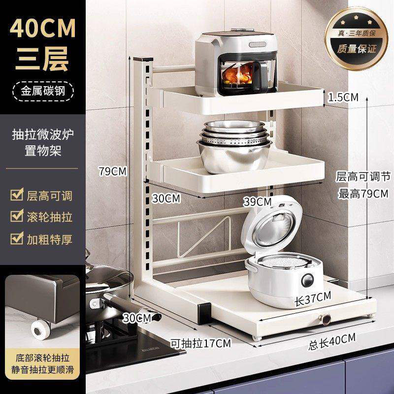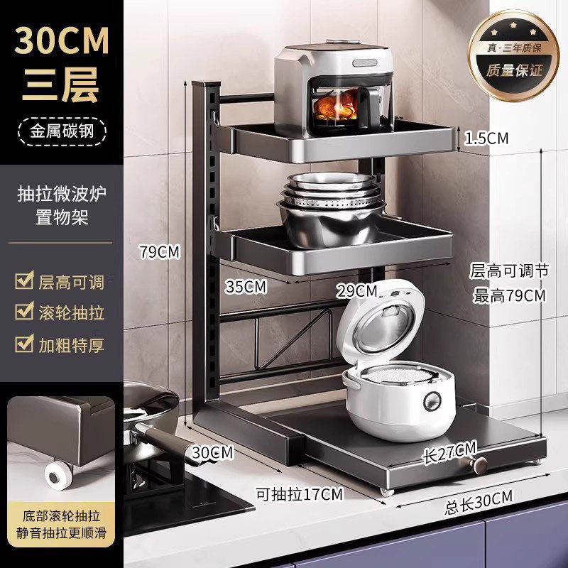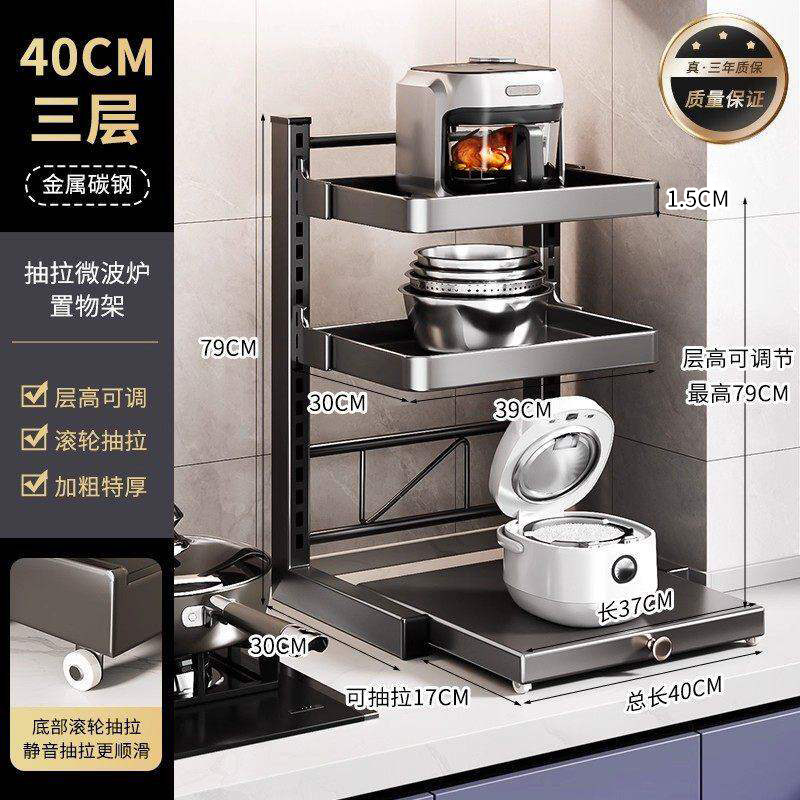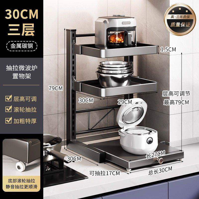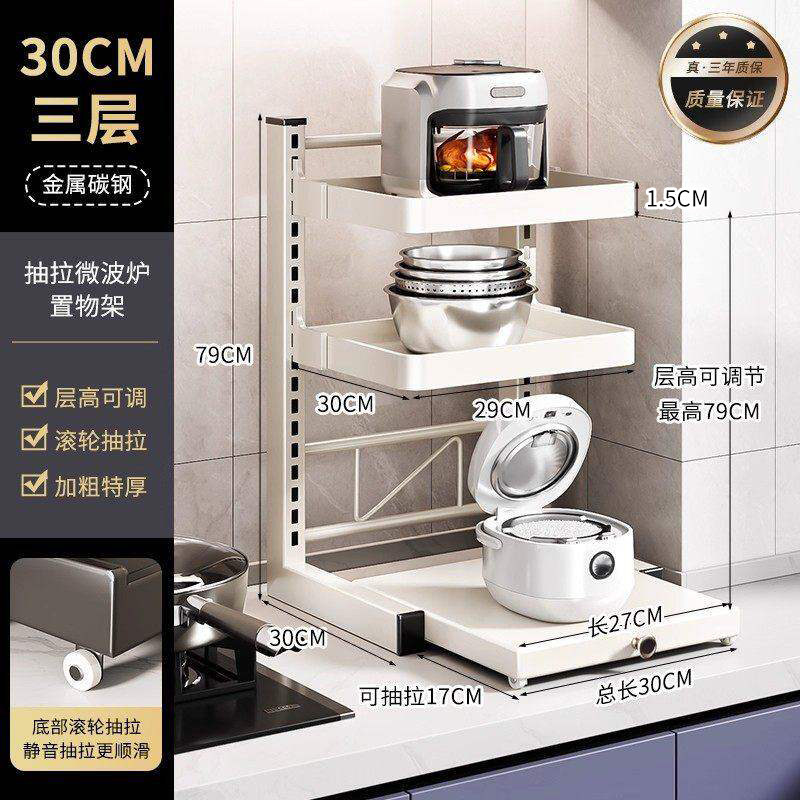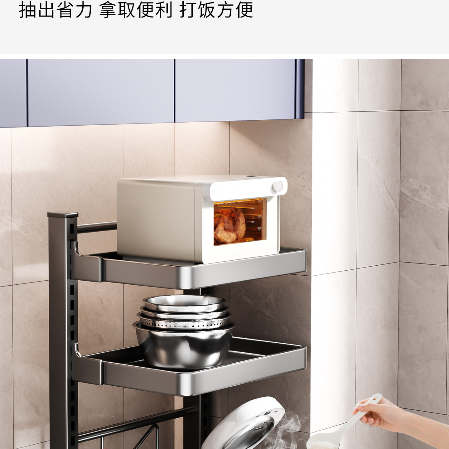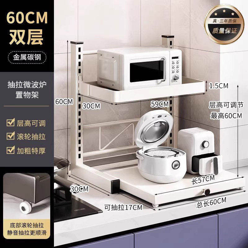 可抽拉厨房电饭煲置物架多功能家用微波炉收纳架多层台面烤箱架子