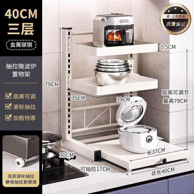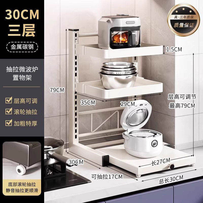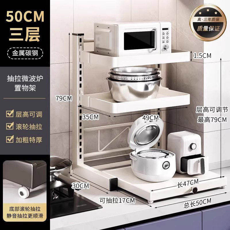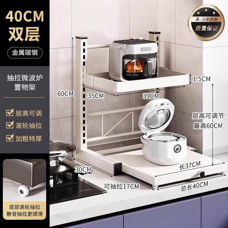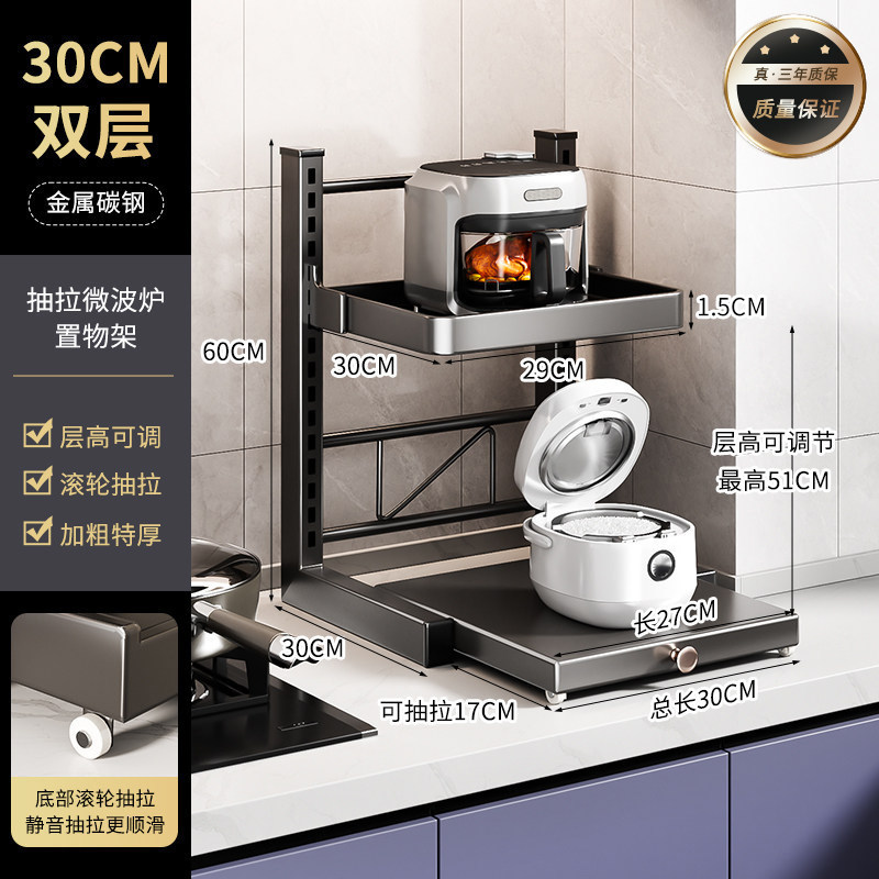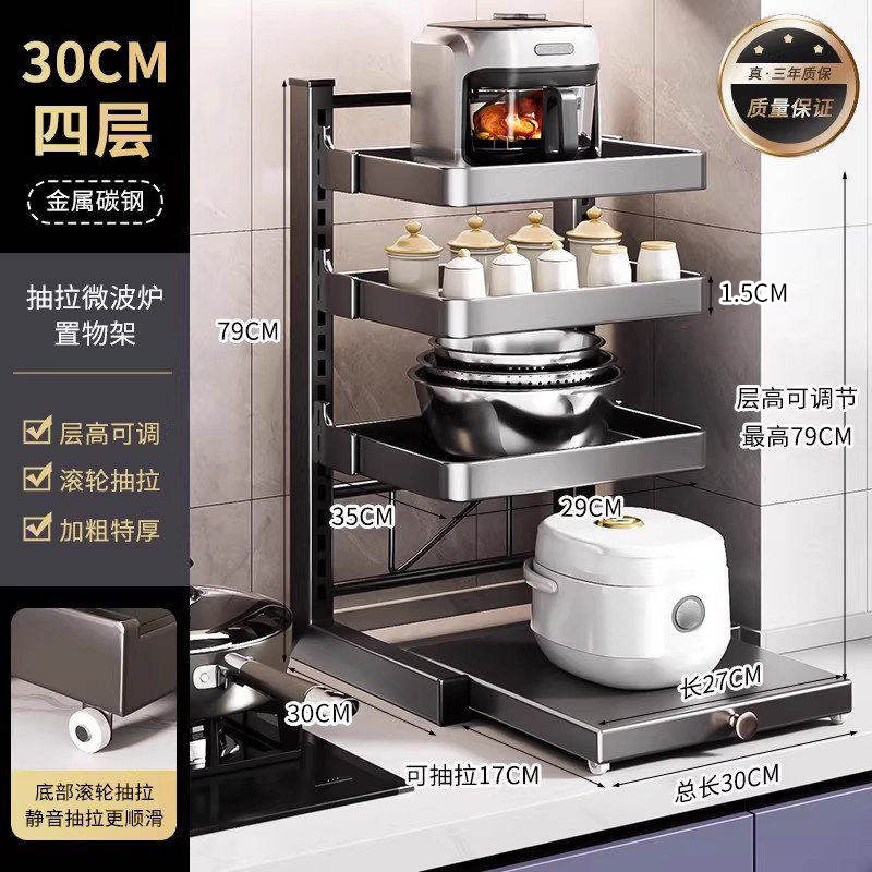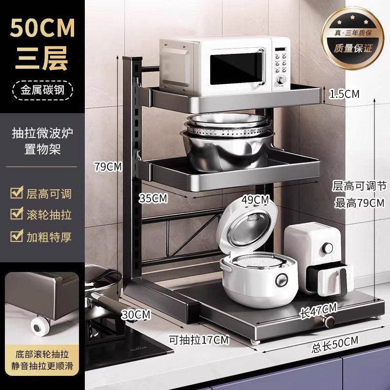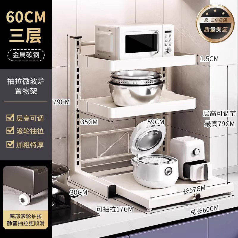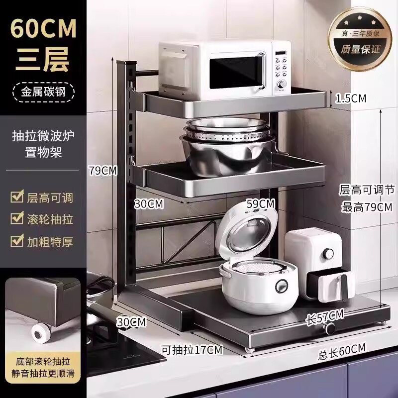可抽拉厨房电饭煲置物架多功能家用微波炉收纳架多层台面烤箱架子